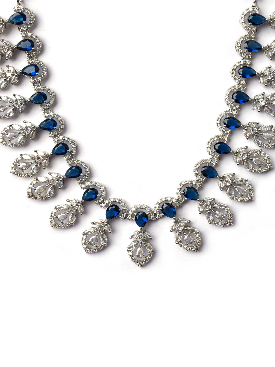 Enhance your elegance with StileAdda's exquisite Elegant Leaf Motif American Diamond Sleek Necklace Set. Crafted with intricate leaf motifs and adorned with sparkling American diamonds, this sophisticated jewelry piece exudes timeless charm. Elevate your style effortlessly. Shop now!