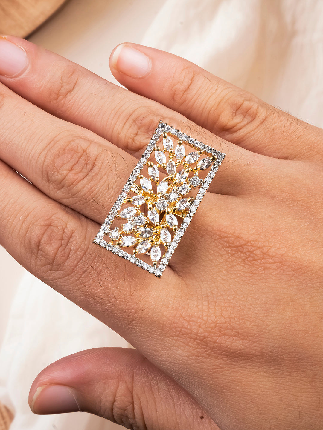 Turn heads with the Dazzling CZ Cocktail Ring, designed to add instant glamour to your look. Featuring brilliant cubic zirconia stones set in a bold design, this adjustable ring ensures both comfort and style. Perfect for parties, weddings, or evening outings, it’s a statement accessory every jewelry collection needs.