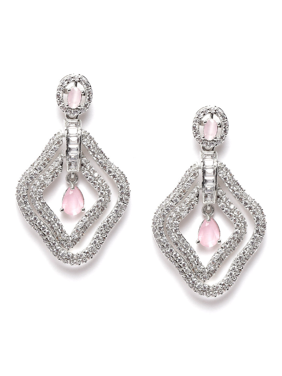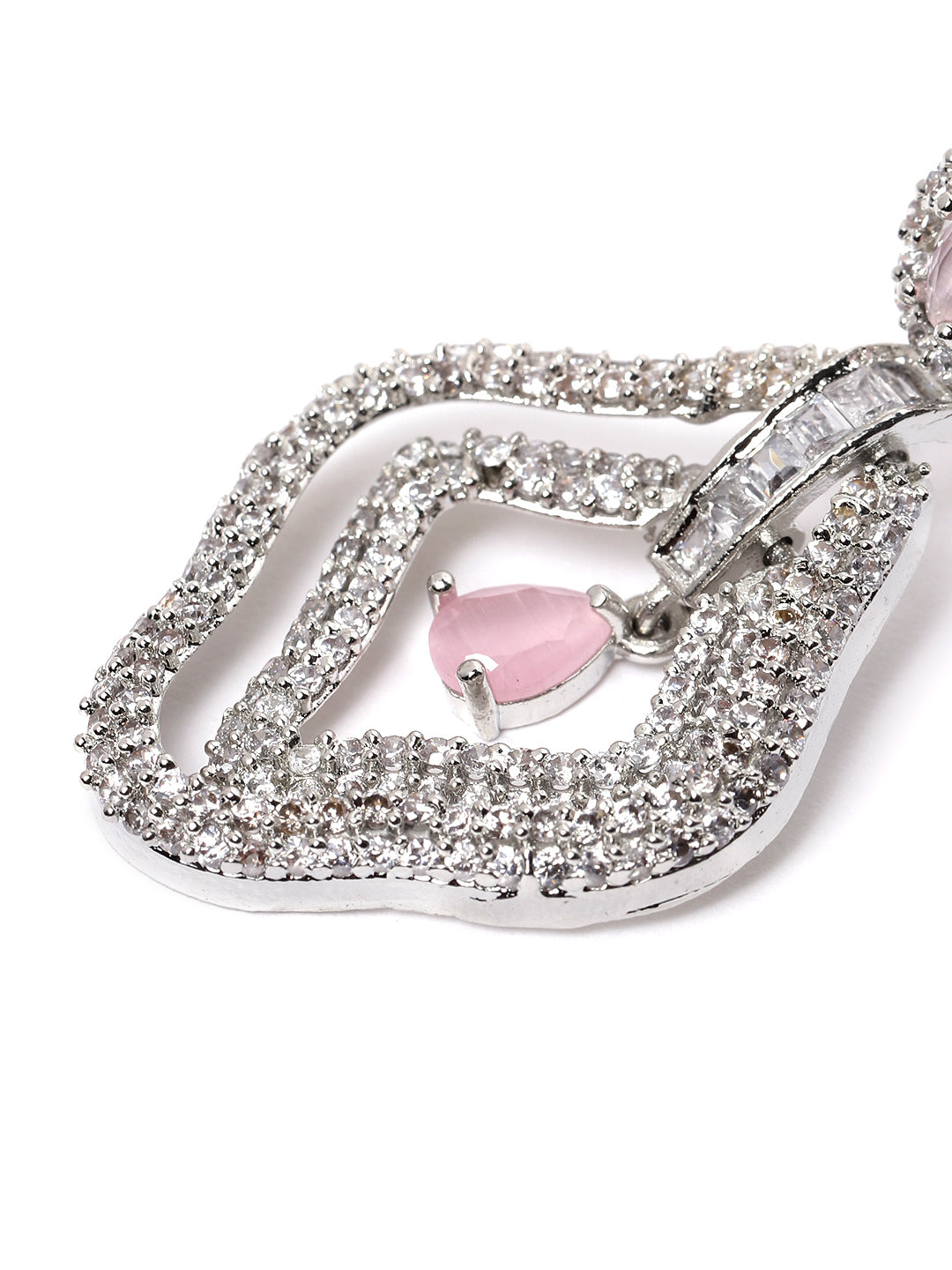 Designer Pink AD Leaf Earrings – Affordable Luxury with a Sparkling Finish