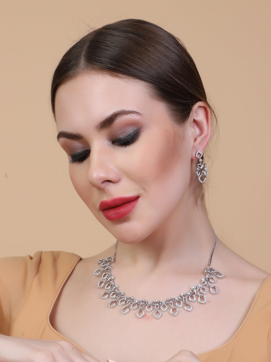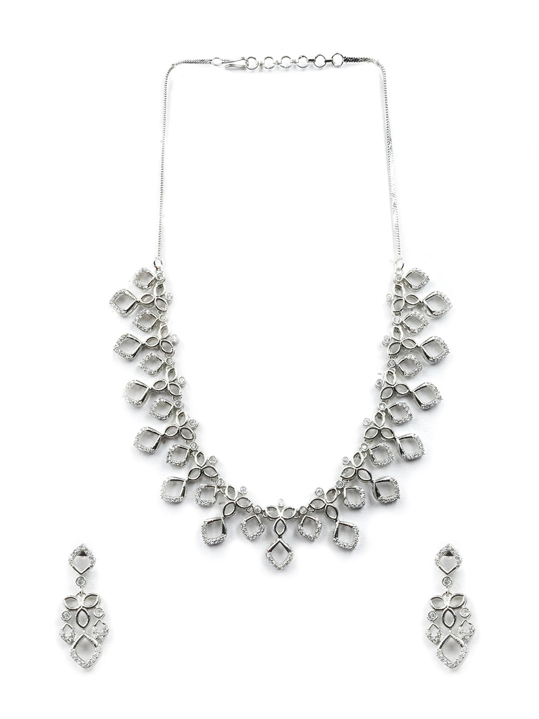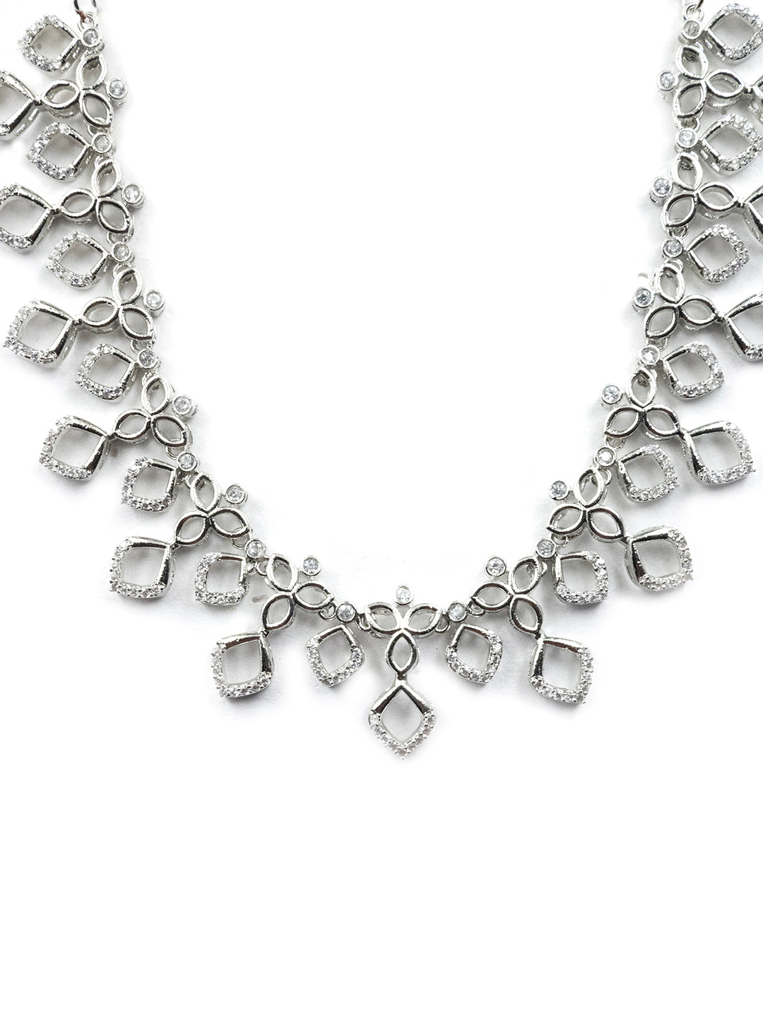 Elevate your style with StileAdda's Designer Trendy Diva AD CZ Diamond shape Necklace Set. Crafted for elegance, this sparkling piece adds timeless charm to any outfit. Shop now and shine bright with our luxury necklace collection.