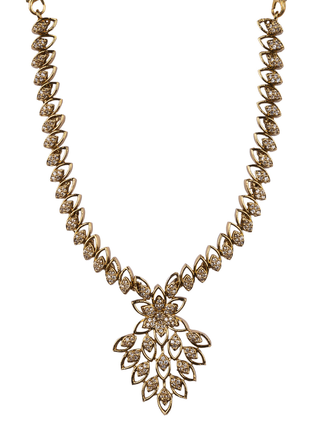 Gold Plated AD Studded Leaf Style Necklace Set