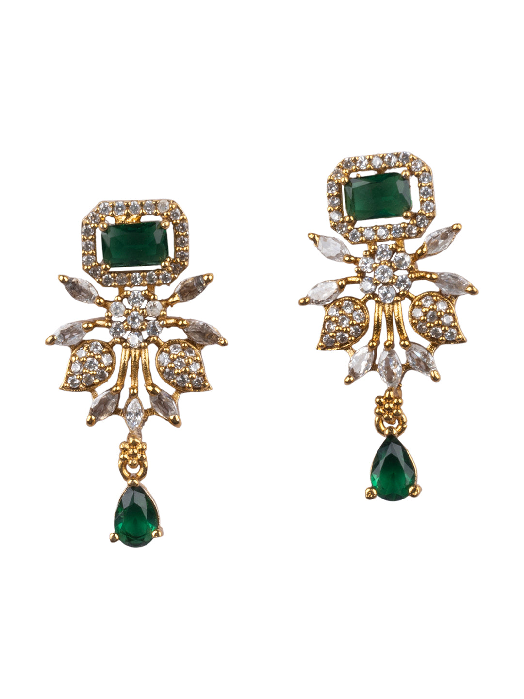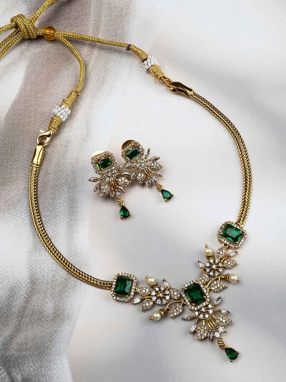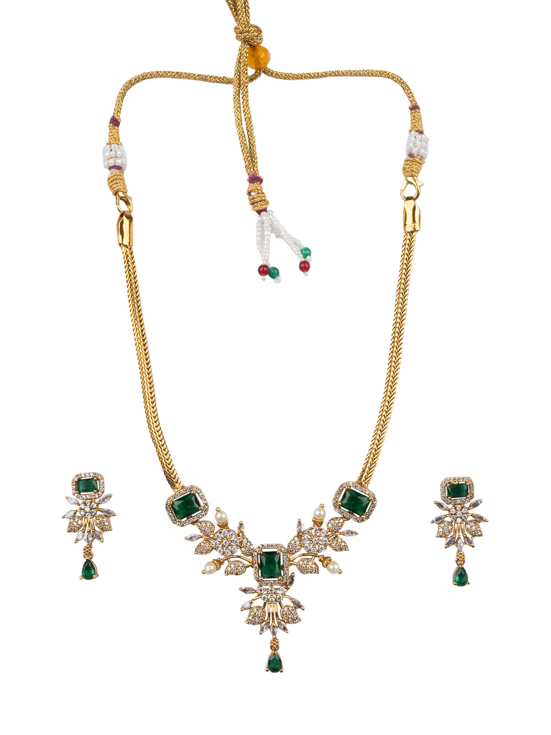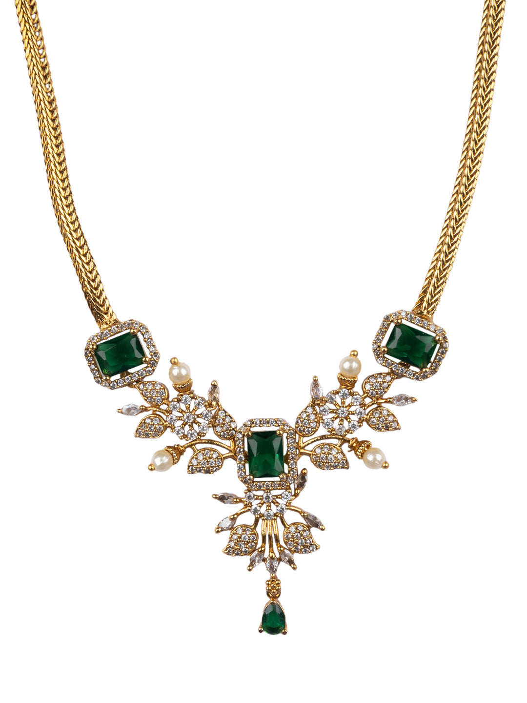 Gold Plated Green AD Flower Design Pendant Necklace Set