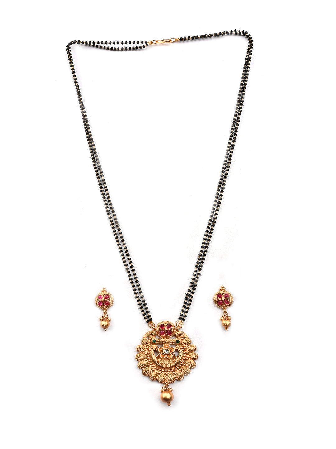 Adorn yourself with the exquisite Rajwadi Mangalsutra with double line long black beads chain by StileAdda. This timeless piece blends traditional elegance with modern sophistication, featuring intricate designs and a lustrous finish, perfect for celebrating the beauty and grace of Indian heritage.