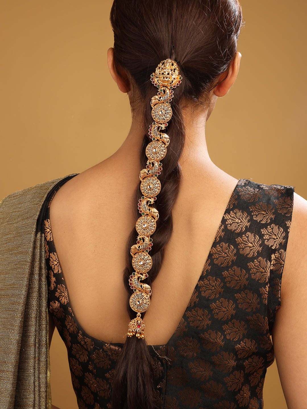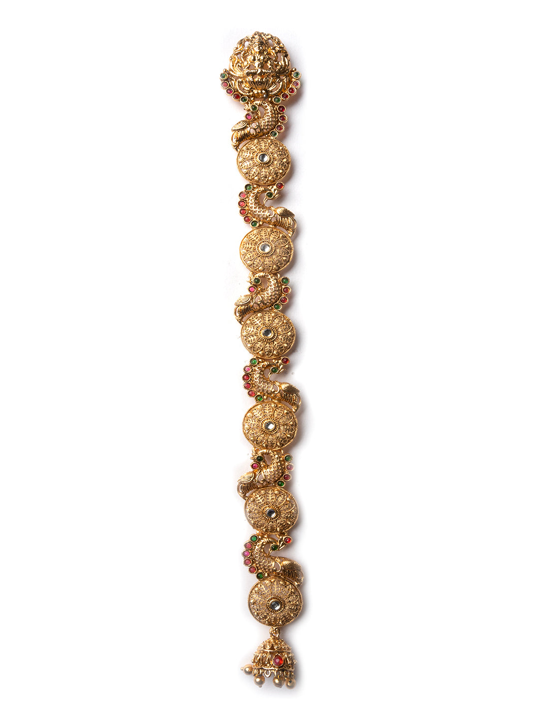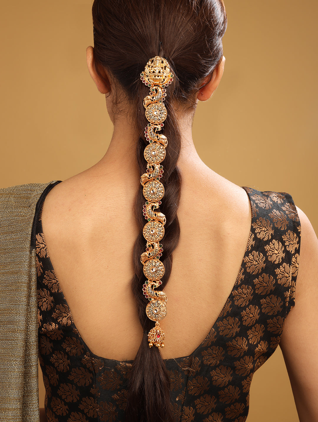 Discover the beauty and elegance of Golden Temple Mayuraksh Jada Billai. Crafted with precision and care, this stunning piece will add a touch of sophistication to any outfit. Embrace the regal charm and make a statement with this unique accessory. Elevate your style to new heights with Golden Temple Mayuraksh Jada Billai.