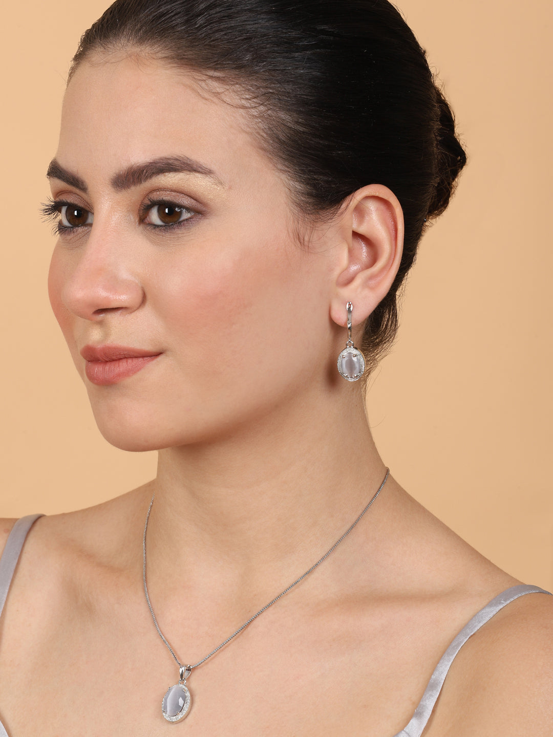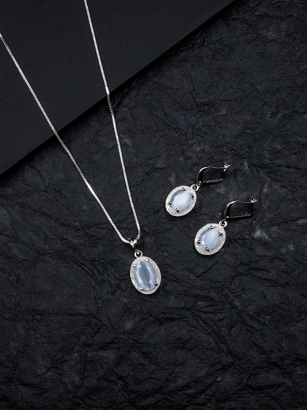 Elevate your daily work routine with StileAdda's classic silver plated pendant set. Featuring an oval shape design, this set is perfect for adding a hint of sophistication to your professional look. Effortlessly stylish, this set is a must-have for your work wardrobe!