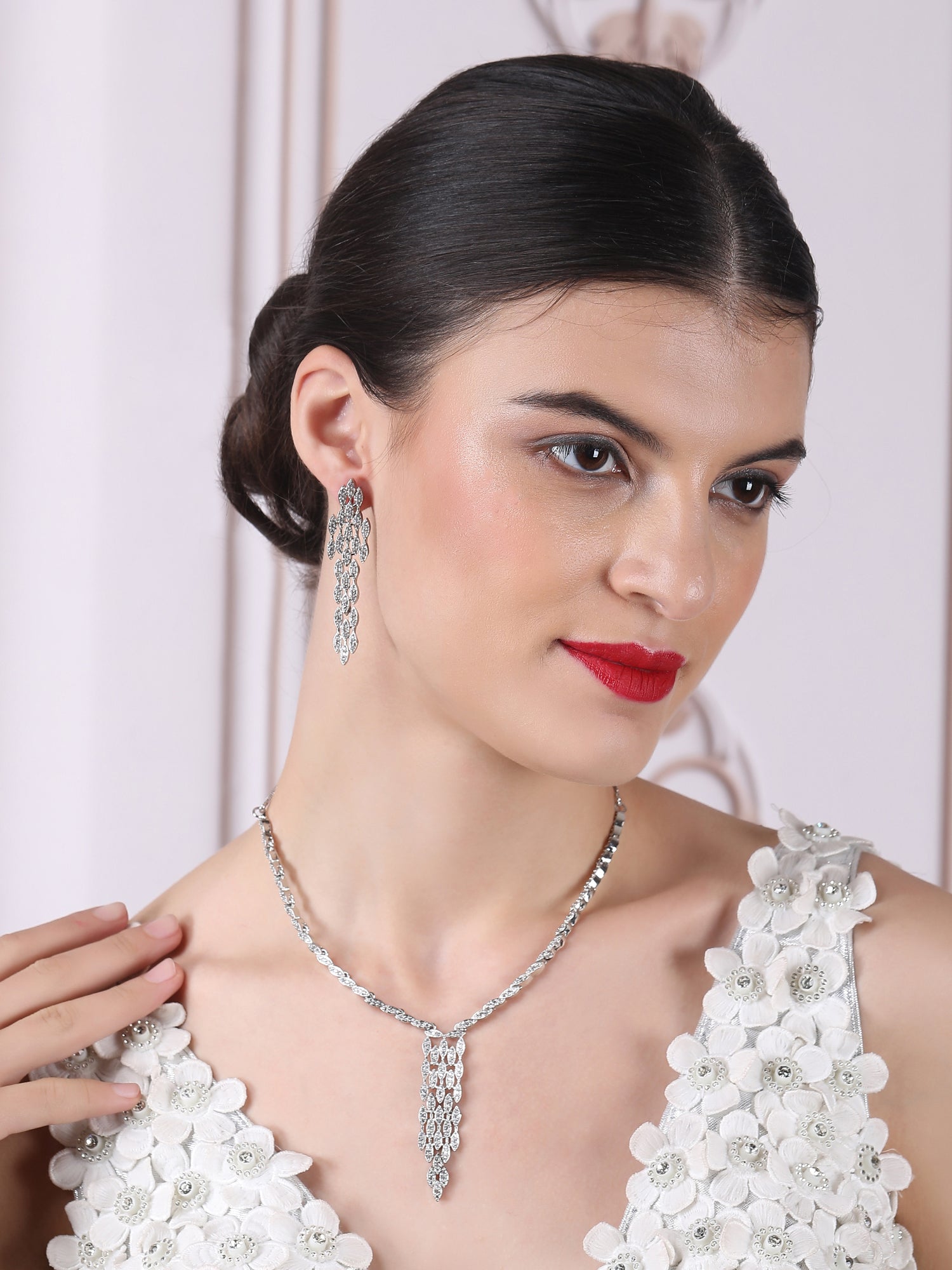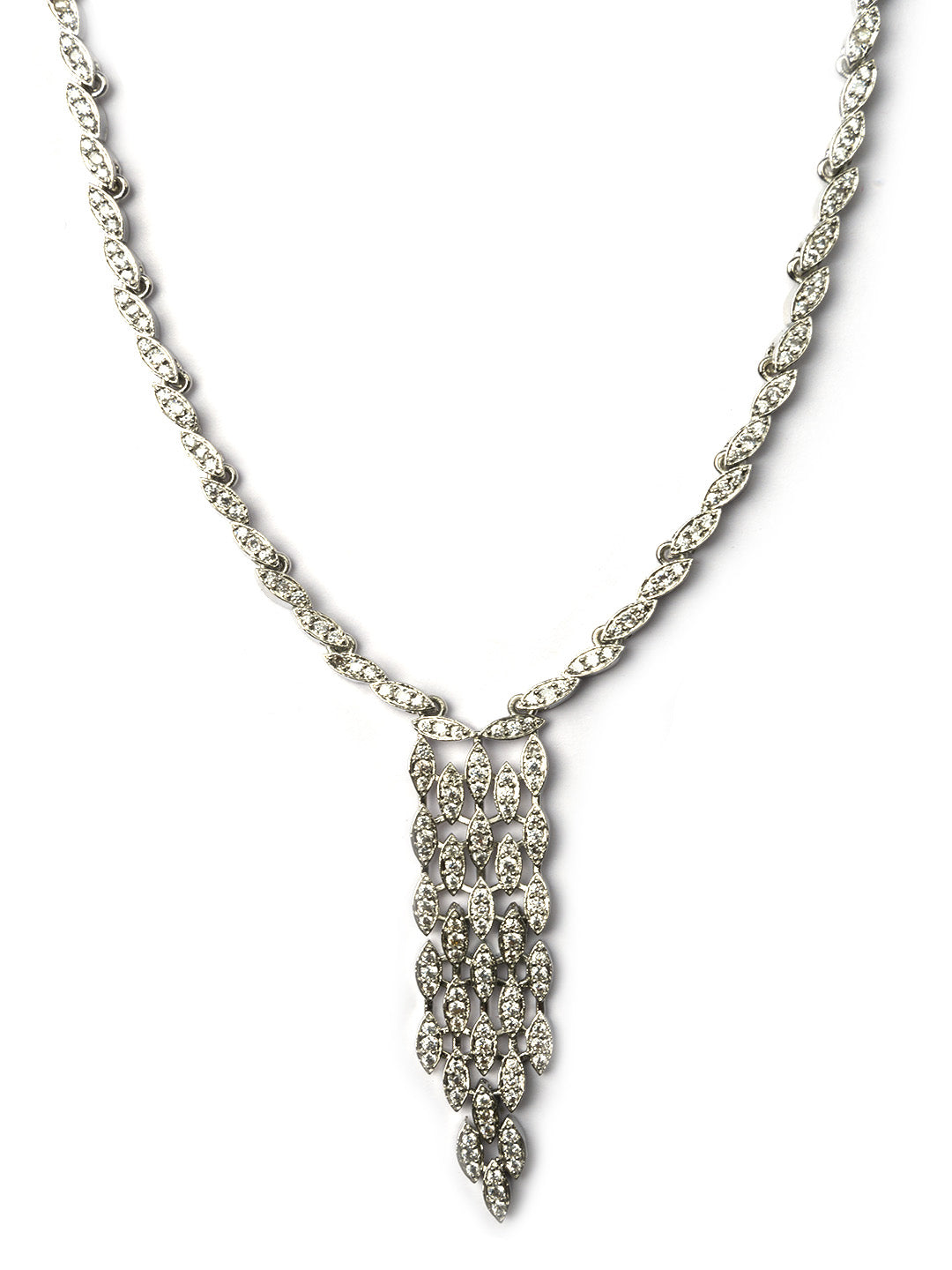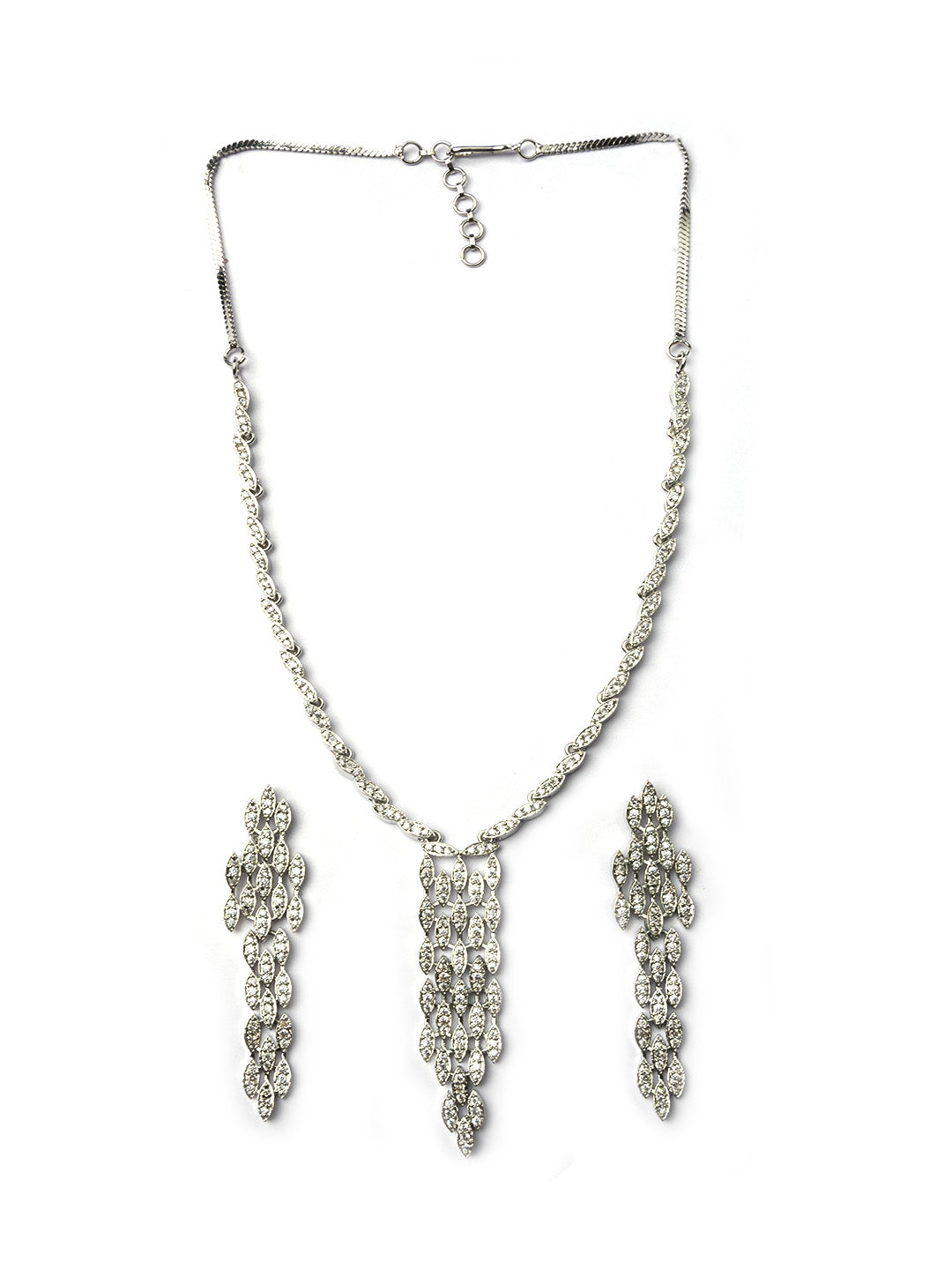 Elevate your elegance with this handcrafted silver-plated CZ necklace set by StileAdda, featuring dazzling Cubic Zirconia stones for a luxurious sparkle. Perfect for weddings or parties, this ethnic jewelry set blends timeless charm with modern glamour.