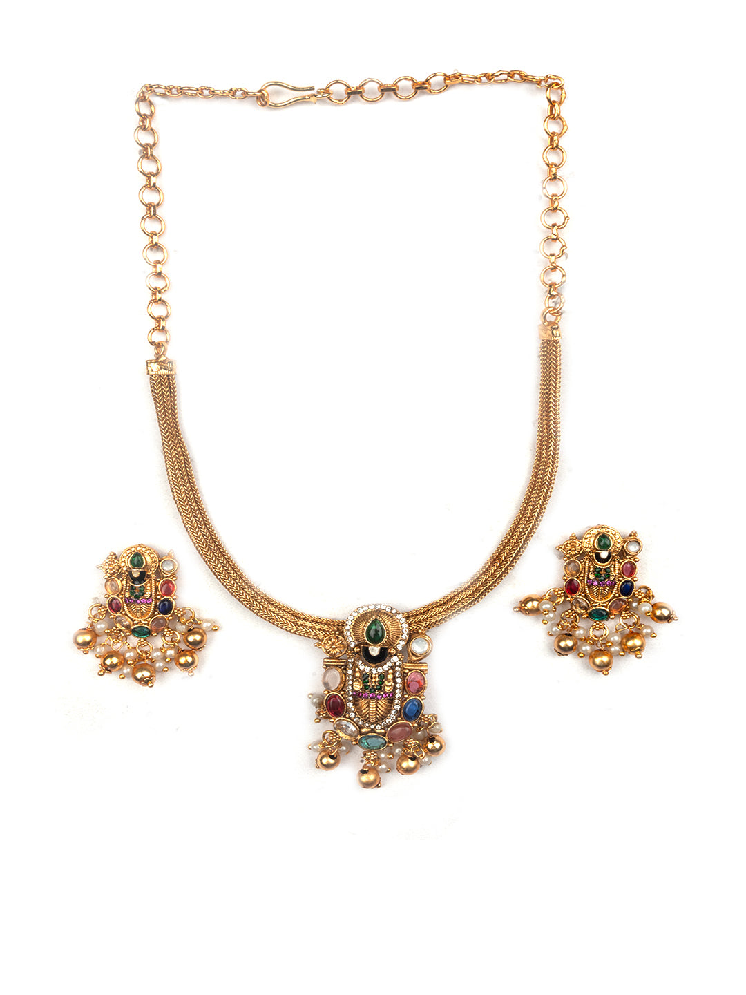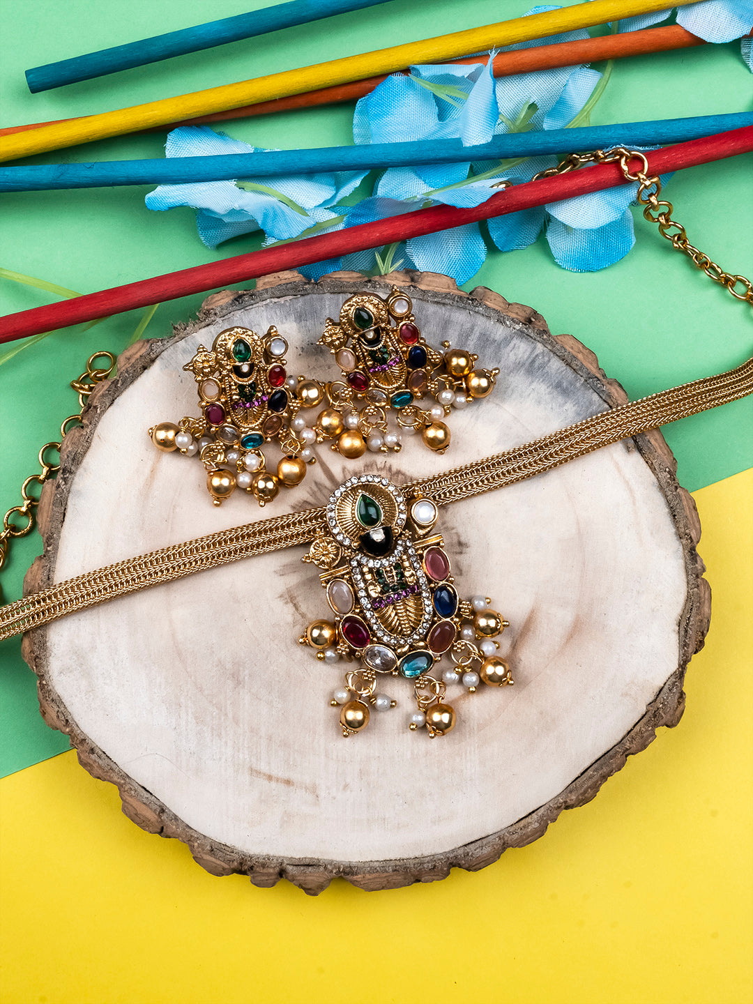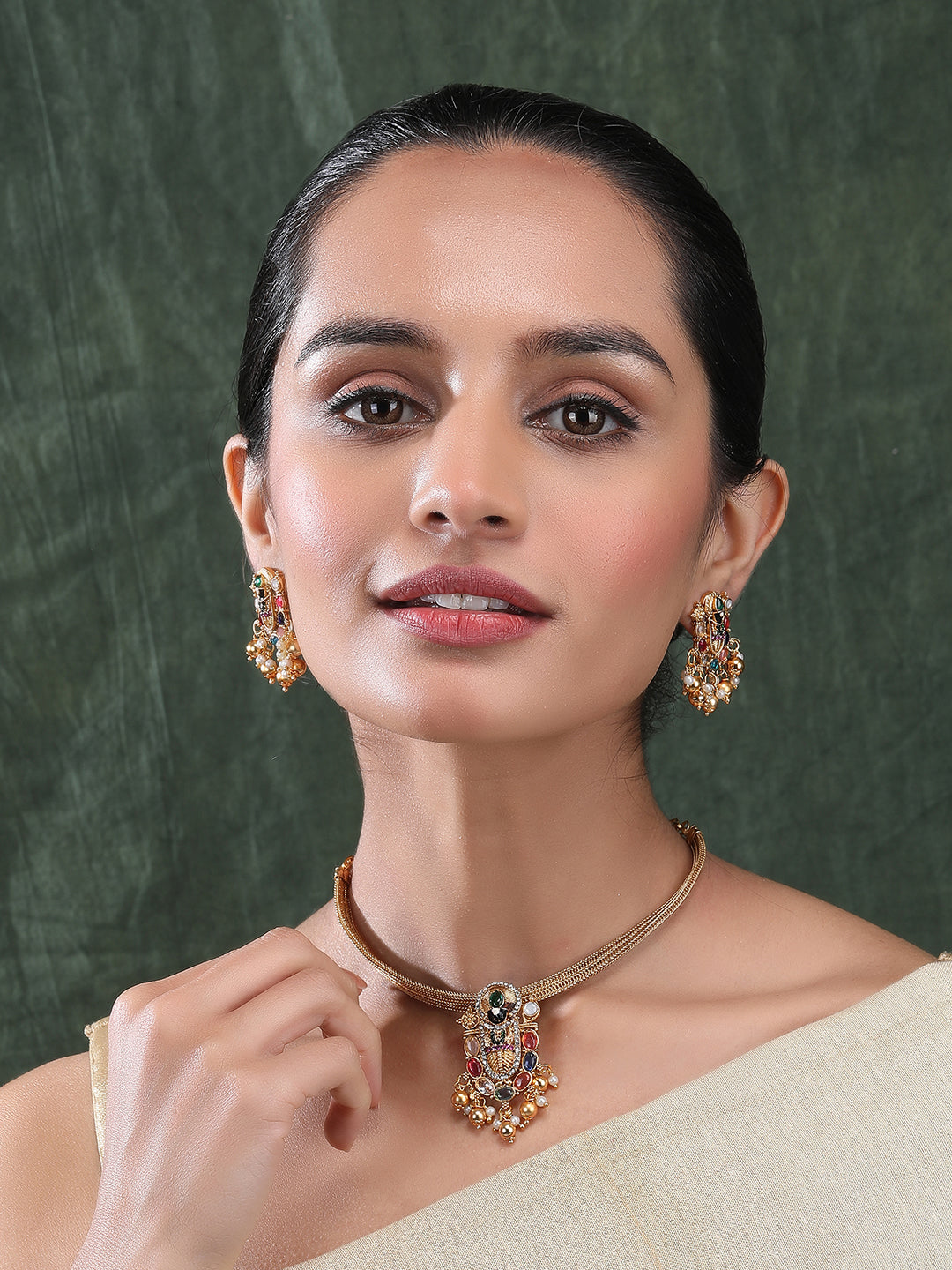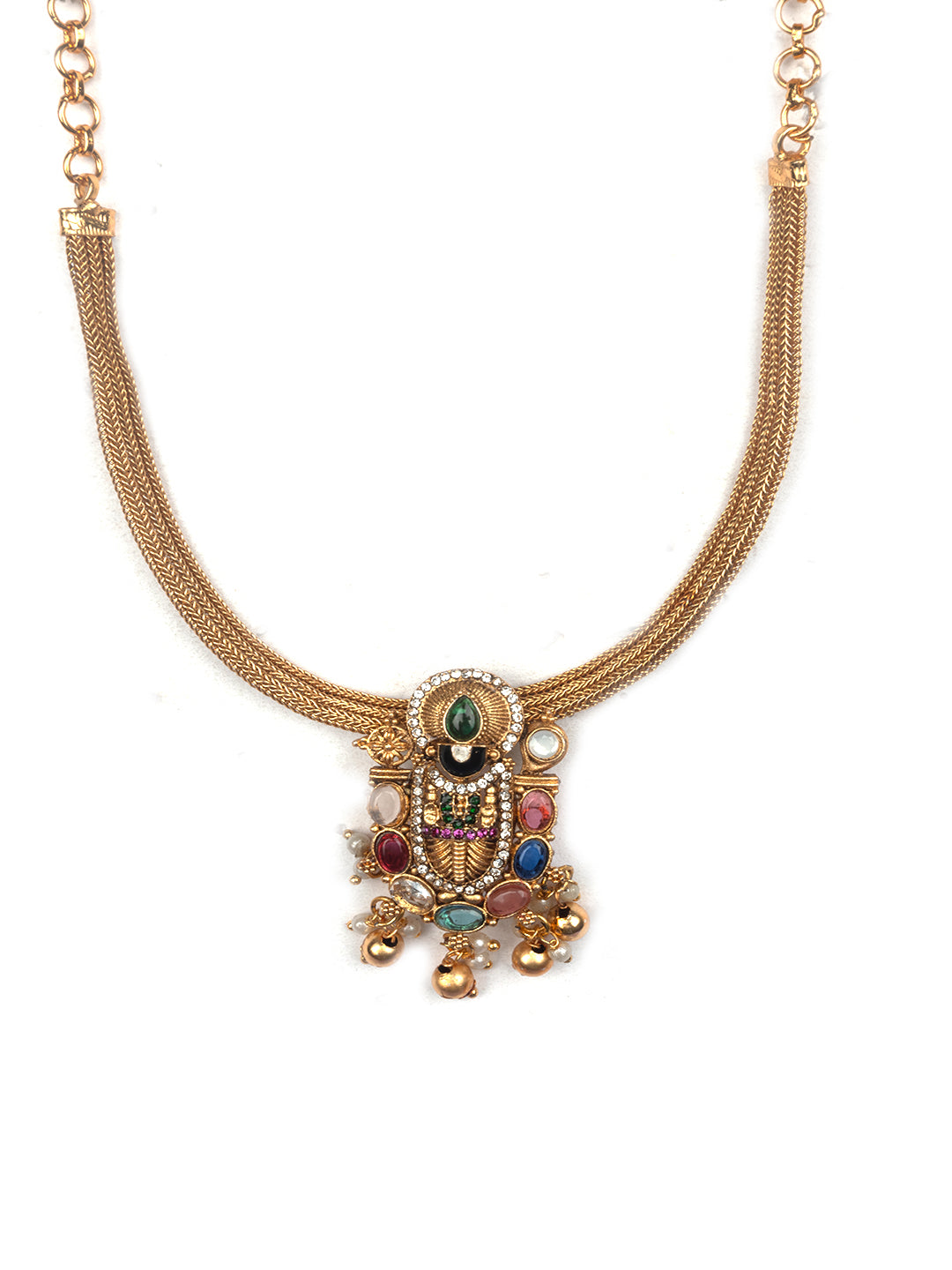 Immerse yourself in the divine elegance of the Lord Tirupati Sleek Choker Set. This stunning piece is inspired by the rich cultural heritage and intricate designs associated with Lord Tirupati. The choker set captures the essence of traditional beauty while incorporating sleek, modern elements. Perfect for any special occasion, this set is designed to make you feel like royalty and radiate an aura of sophistication and grace.