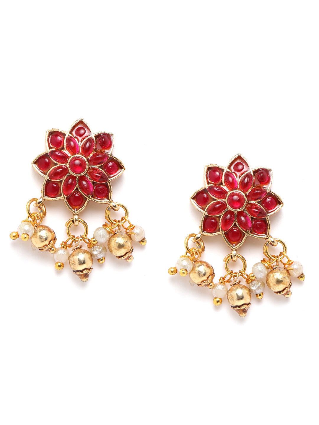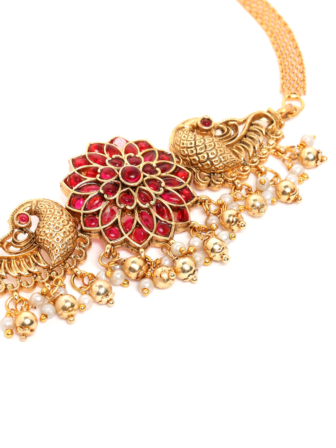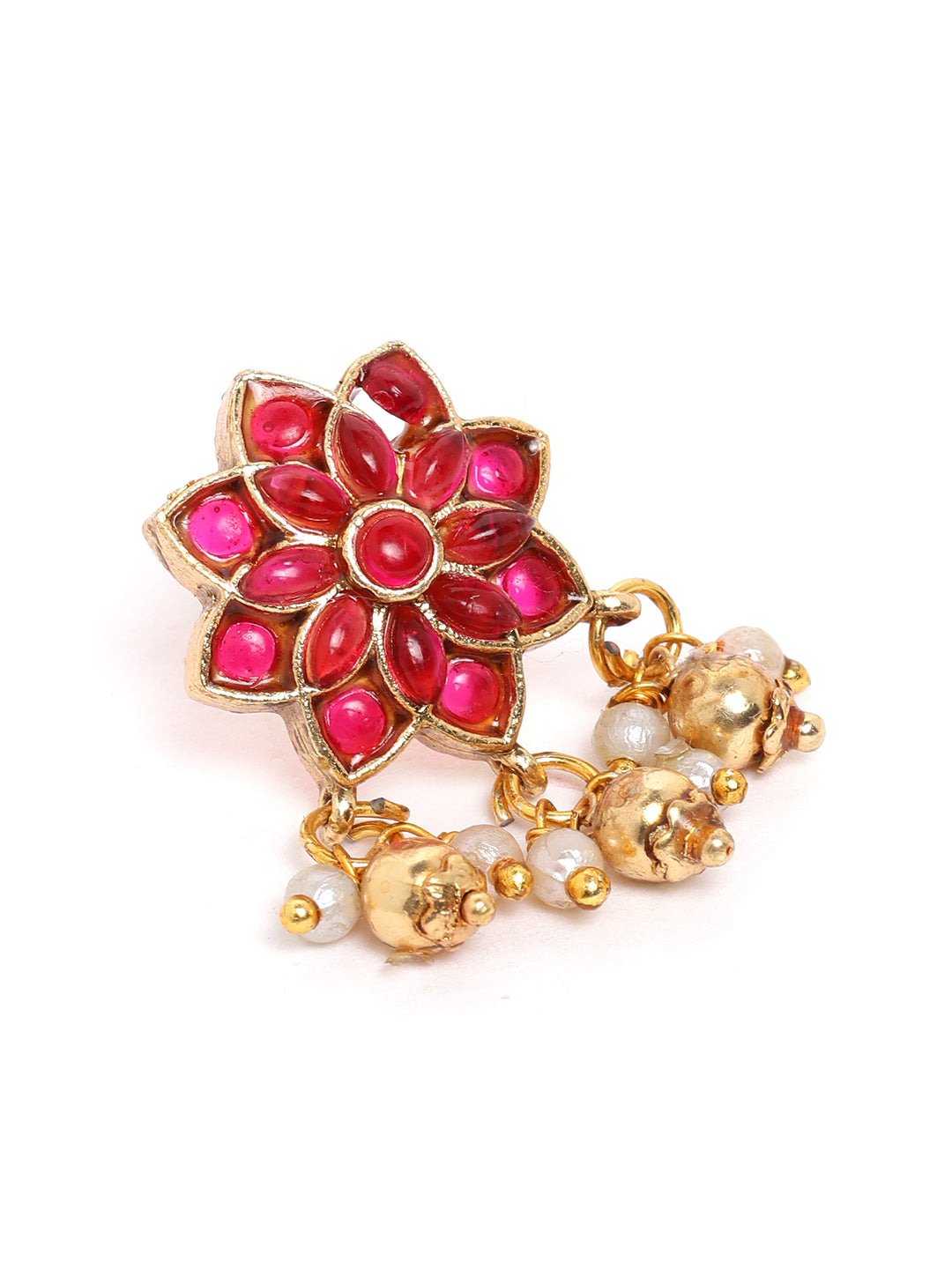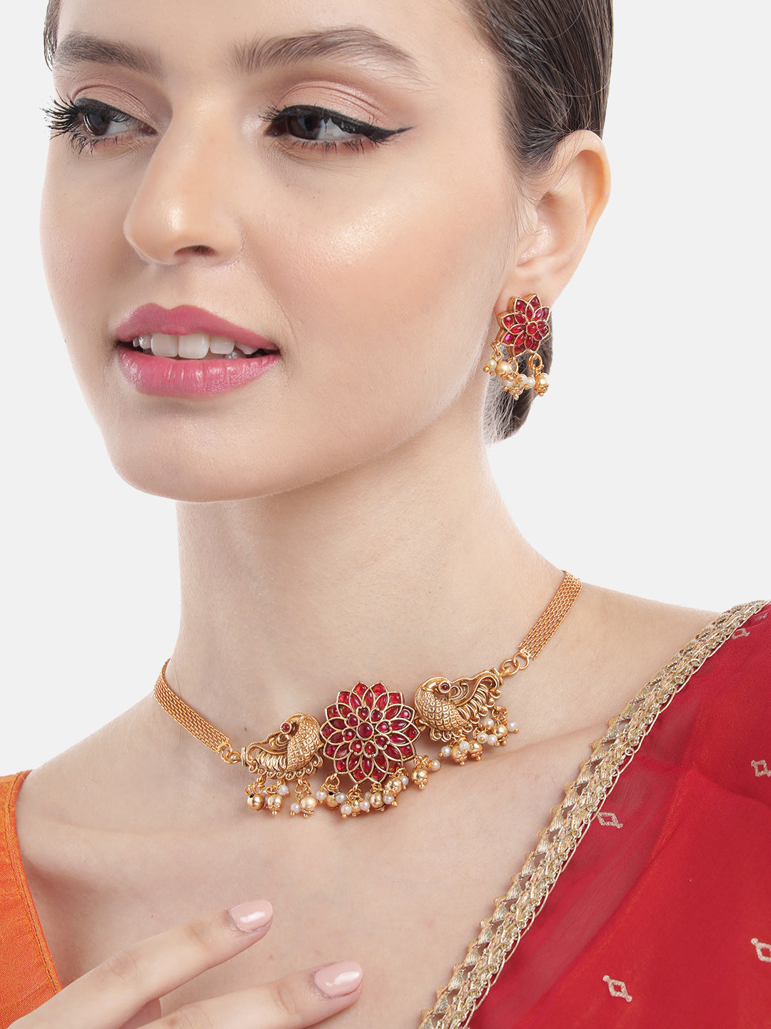 This elegant red Kemp choker set features a dainty floral design that beautifully complements both ethnic and Indo-western looks. Lightweight and comfortable, it's perfect for festive occasions or intimate gatherings where subtle charm matters.