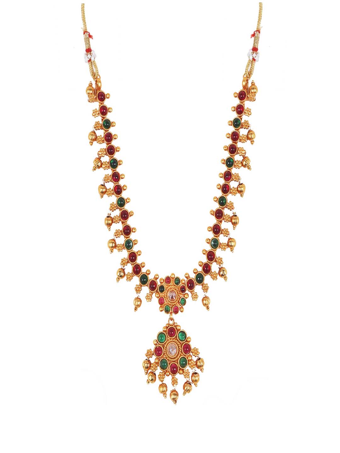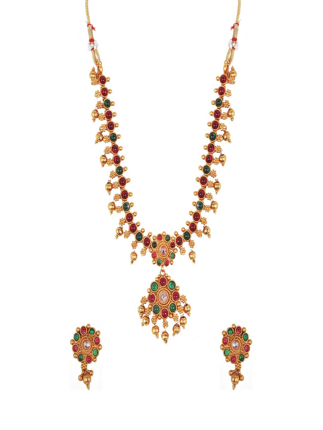 Elevate your traditional ensemble with this Multicolor Kemp Sleek Flower Necklace Set, featuring intricate floral designs crafted with vibrant Kemp stones. The set includes matching studs that complement the necklace’s elegant silhouette, offering a refined yet striking look. Perfect for festive occasions and weddings, this lightweight set combines classic craftsmanship with contemporary style for lasting appeal.