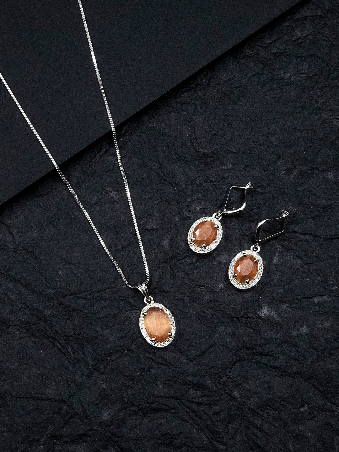 Indulge in elegance with StileAdda's exquisite silver plated oval pendant set, crafted for daily chic attire. Designed to complement your style effortlessly, this set is versatile for any occasion. Elevate your look with sophistication and grace