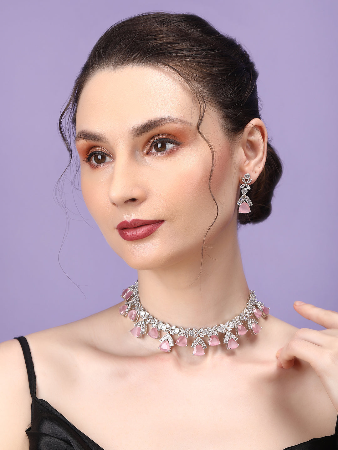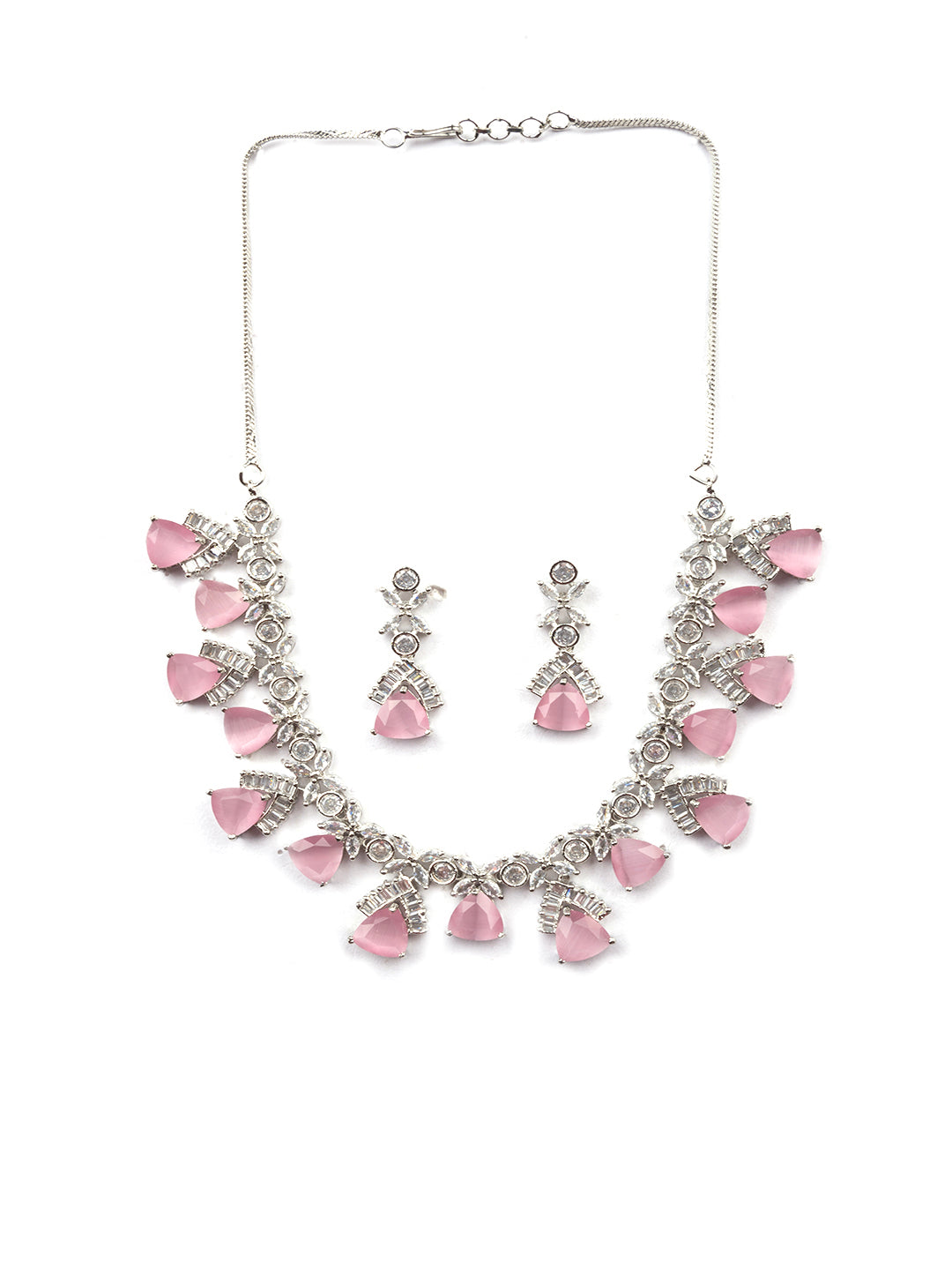 Elevate your party look to a whole new level of glamour with StileAdda's exquisite Designer Sparkling AD Necklace Set. This showstopper ensemble features magnificent tear-shaped AD stones paired with sparkling round CZ stones that are sure to steal the spotlight wherever you go.