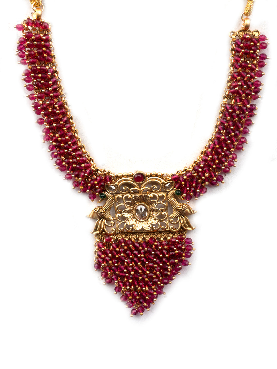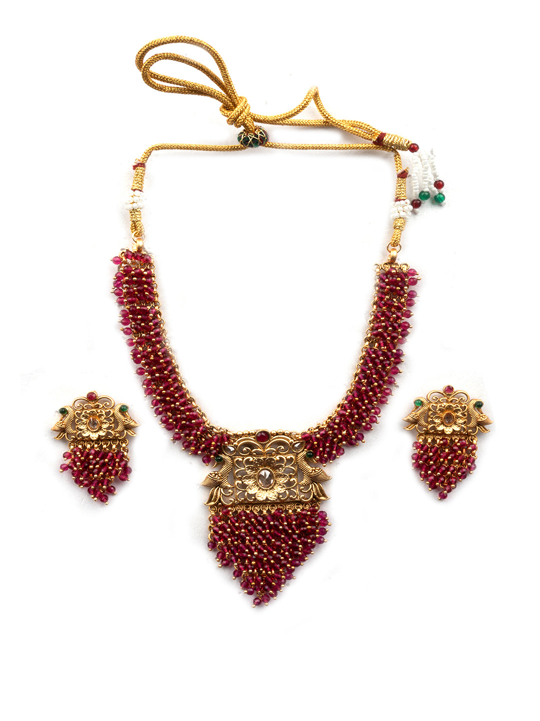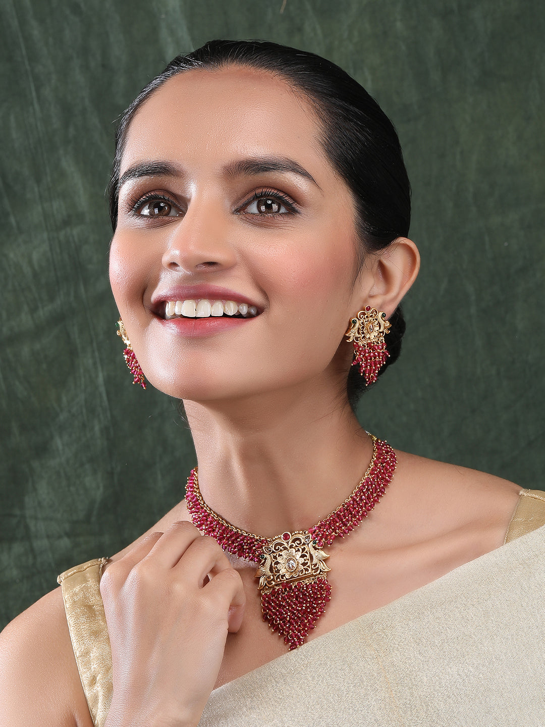 Crafted from high-quality materials, the necklace and earrings feature a lavish gold plating and hydra beads that exudes opulence and sophistication, perfect for special occasions.