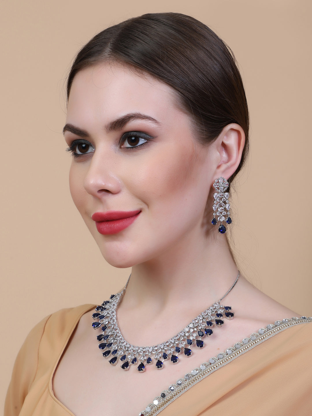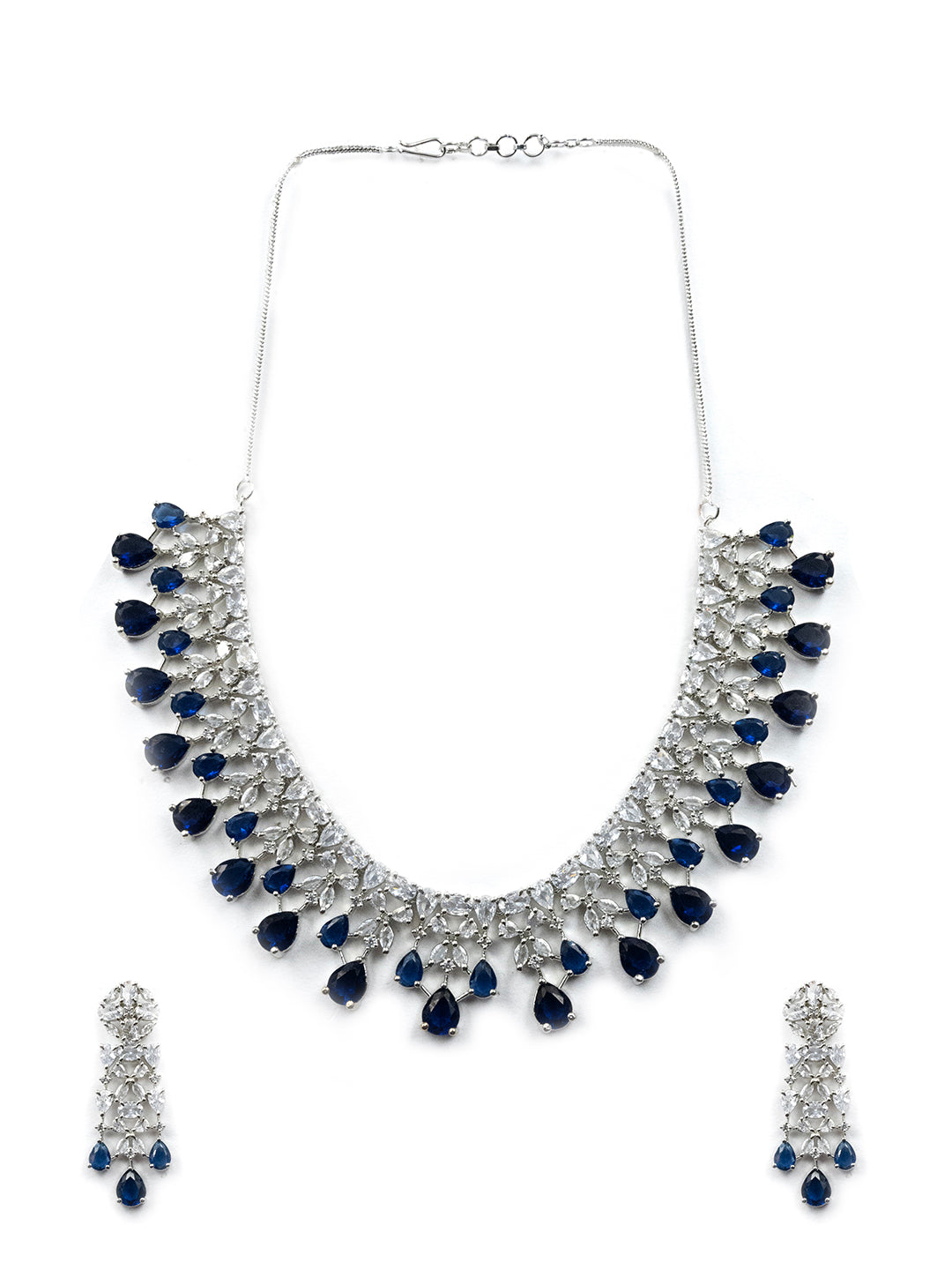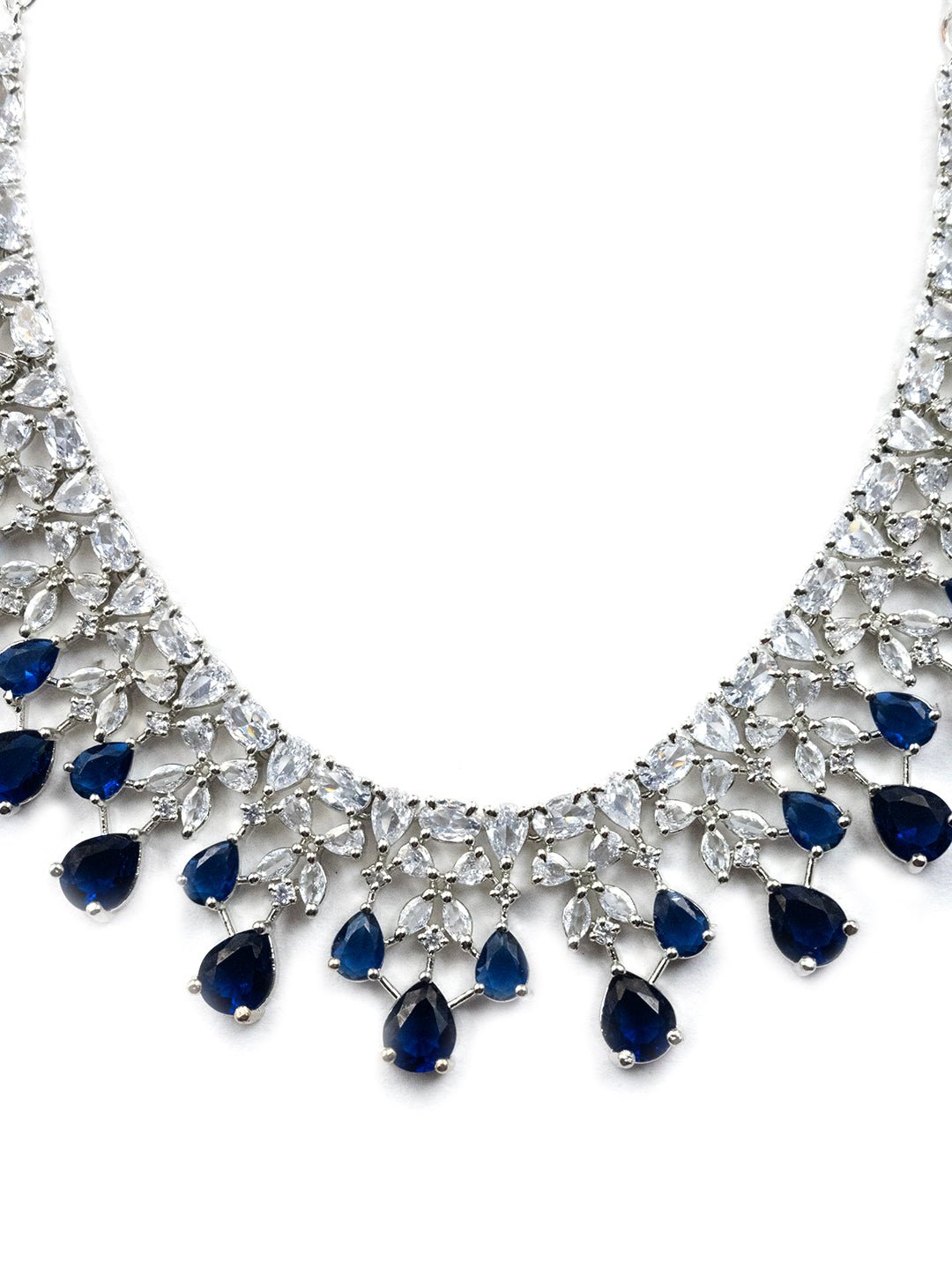 This Silver Plated Blue AD-CZ Flower Necklace Set by StileAdda is the epitome of elegance. Featuring a stunning blue cubic zirconia flower, the necklace exudes sophistication and charm. Its silver plating adds a touch of luxury, making it the perfect accessory for any special occasion. Elevate your style with this exquisite necklace set.