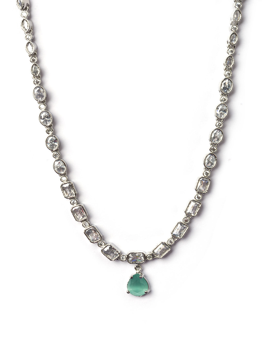 Elevate your style with this stunning Silver Plated Turquoise American Diamond Necklace Set. Perfect for the modern minimalist, this exquisite piece combines the serene beauty of turquoise with the brilliant sparkle of American diamonds. The sleek silver plating creates a contemporary look that effortlessly transitions from day to night. Don't miss the chance to add this versatile statement piece to your jewelry collection β it's the perfect finishing touch for any outfit.