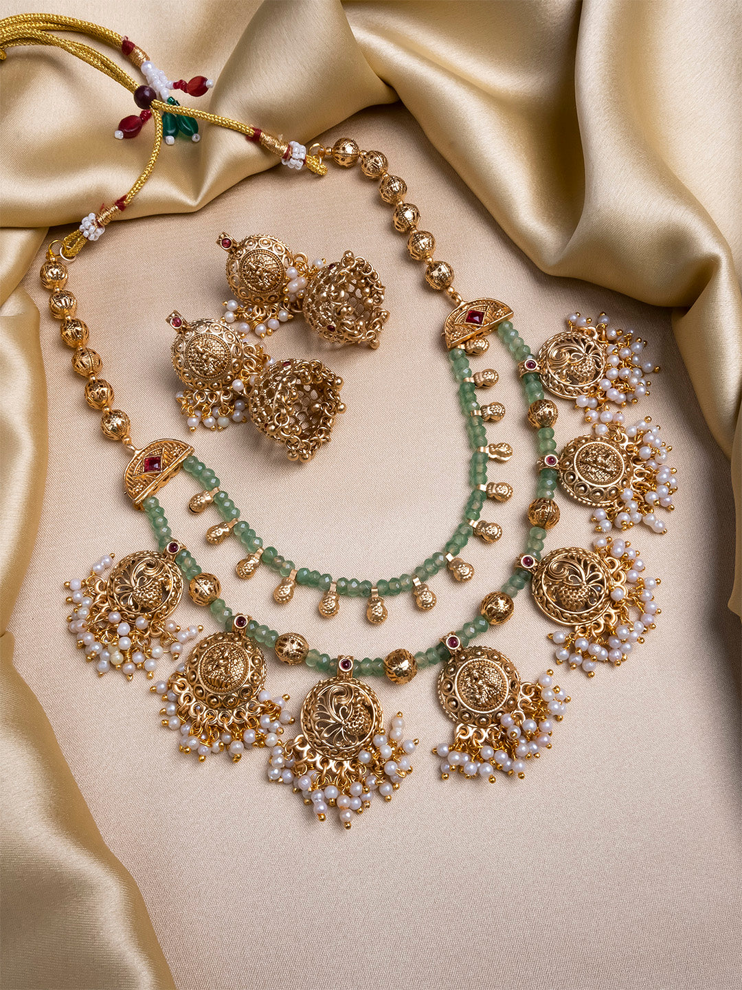 Closure:: Necklace: Adjustable Cotton Drawstring; Earrings: Push and Back