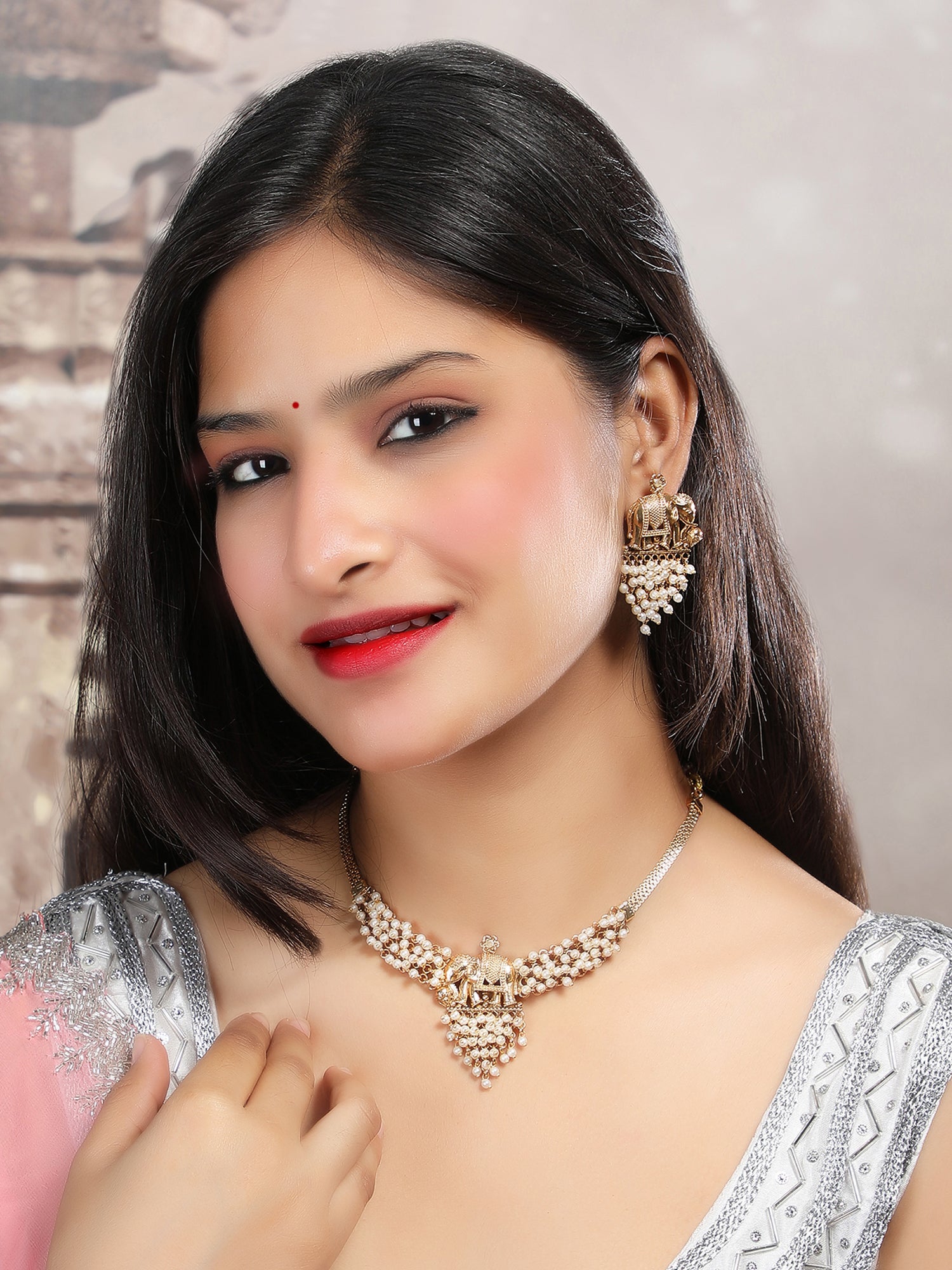 Elevate your elegance with the Unique White Hydra Beads Gaj Necklace Set. Featuring vibrant White hydra beads intricately arranged for a striking look, this set adds a refreshing splash of color to any outfit. Perfect for special occasions, it combines traditional charm with contemporary style, ensuring you stand out with grace and confidence.