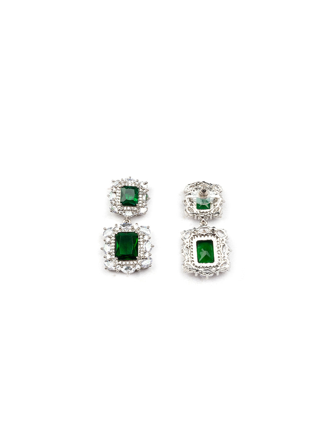 Unleash your inner elegance with our Silver Plated Square CZ Big Pendant Set, complete with matching earrings and maangtika. Crafted with precision and adorned with sparkling cubic zirconia, this set is sure to turn heads and make a statement wherever you go. Elevate your style effortlessly with this stunning jewelry ensemble.