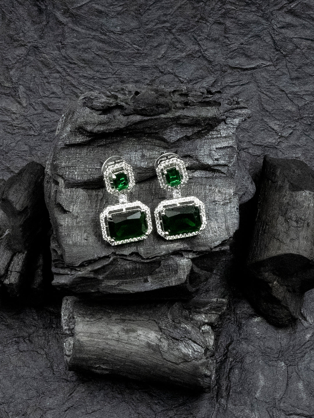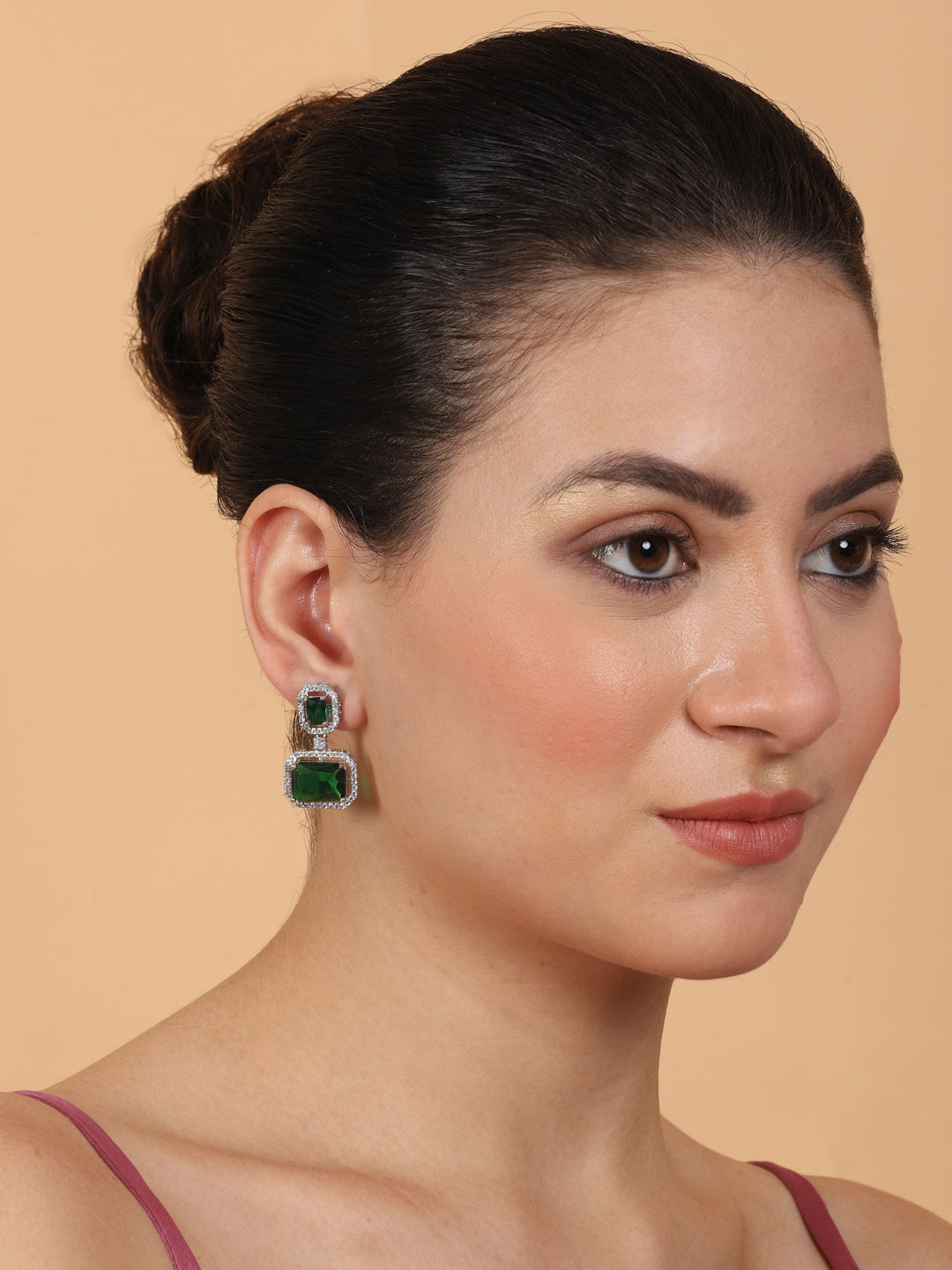 Exquisite Minimalist Look Green CZ AD Statement Earrings