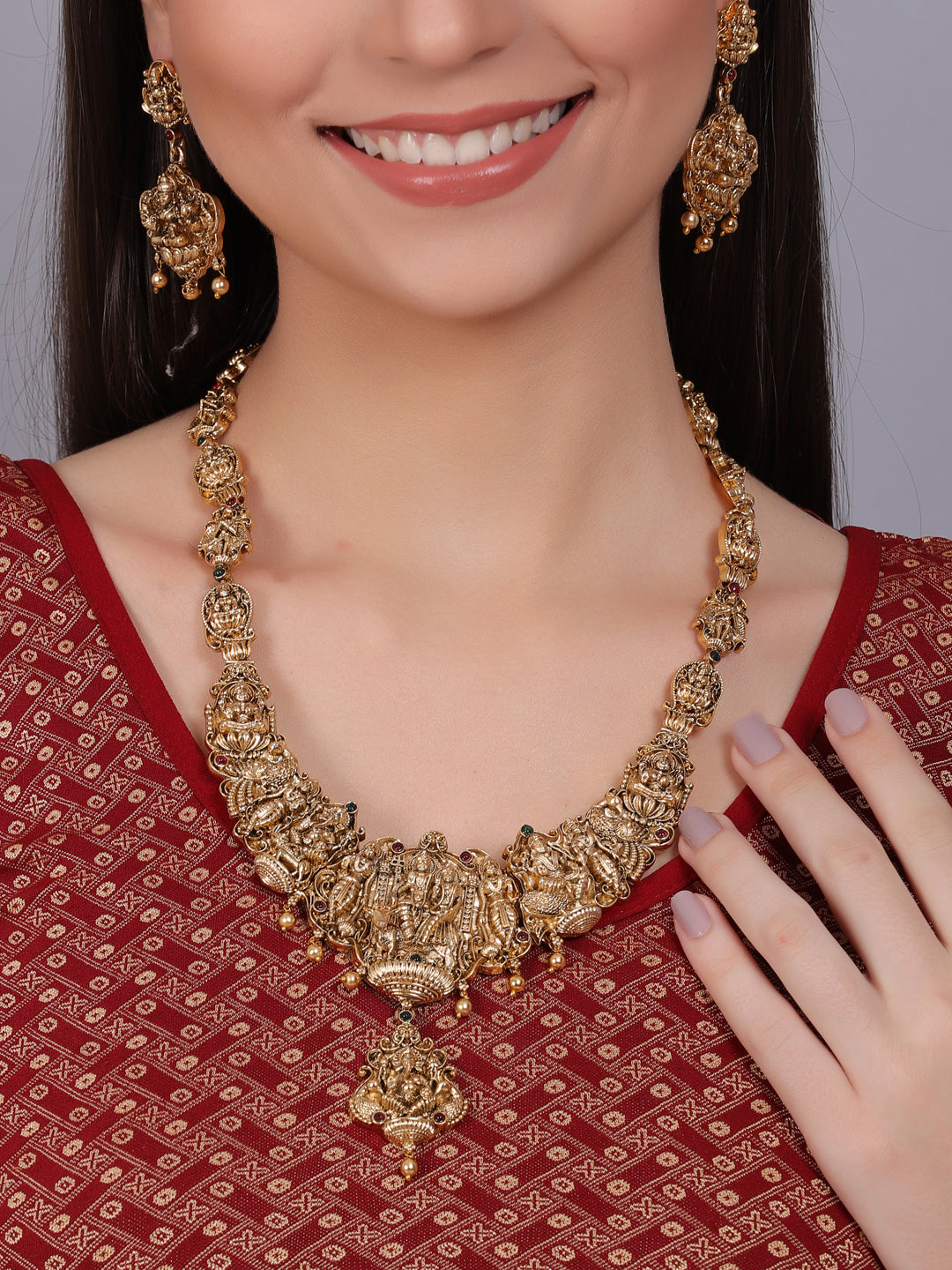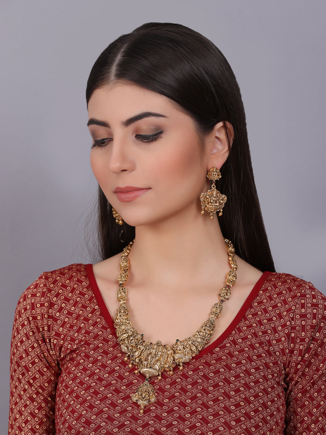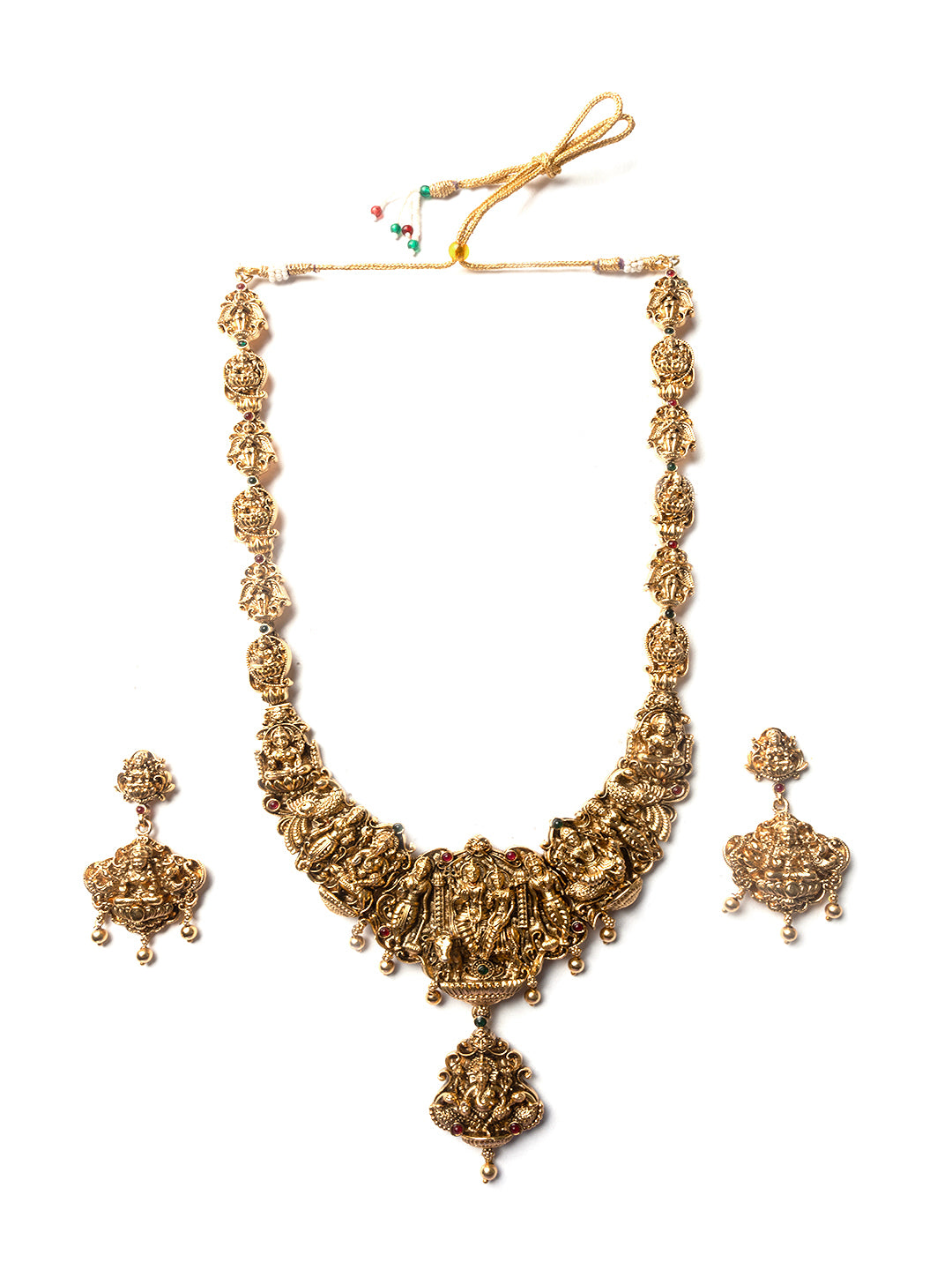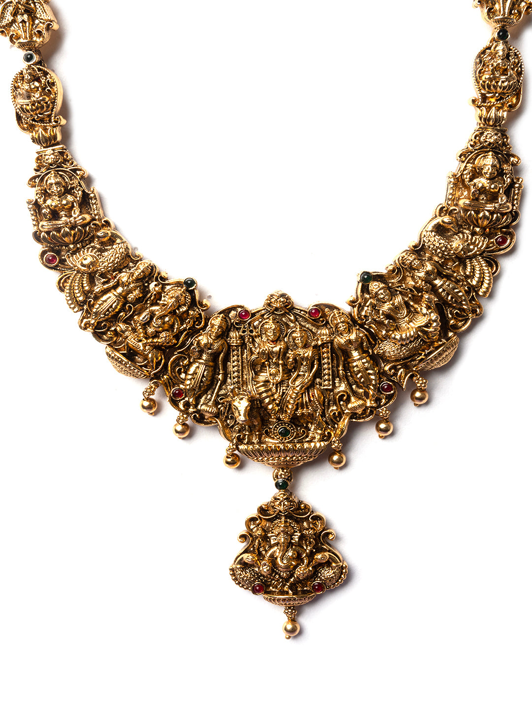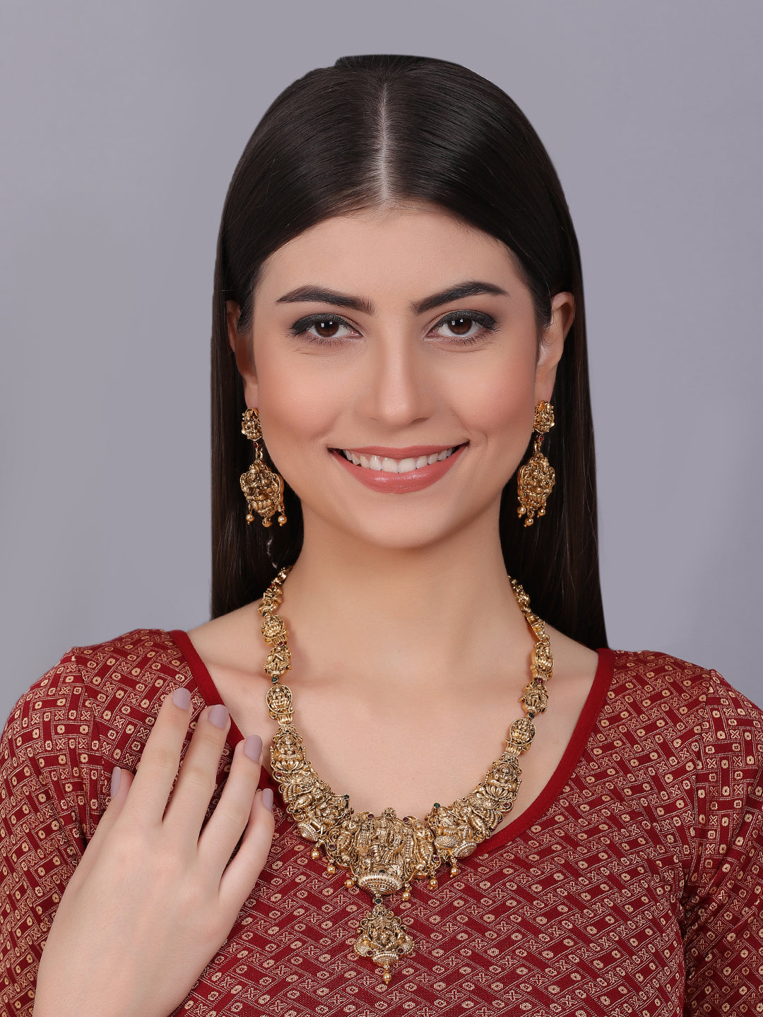StileAdda's Classic Shiv Parivar Necklace Set embodies the timeless essence of Lord Shiva and his divine family, featuring beautifully crafted pendants depicting Lord Shiva, Goddess Parvati, Lord Ganesha, and Lord Kartikeya. With its intricate detailing and traditional design, this necklace set is perfect for expressing your devotion and adding a touch of spiritual elegance to any occasion.