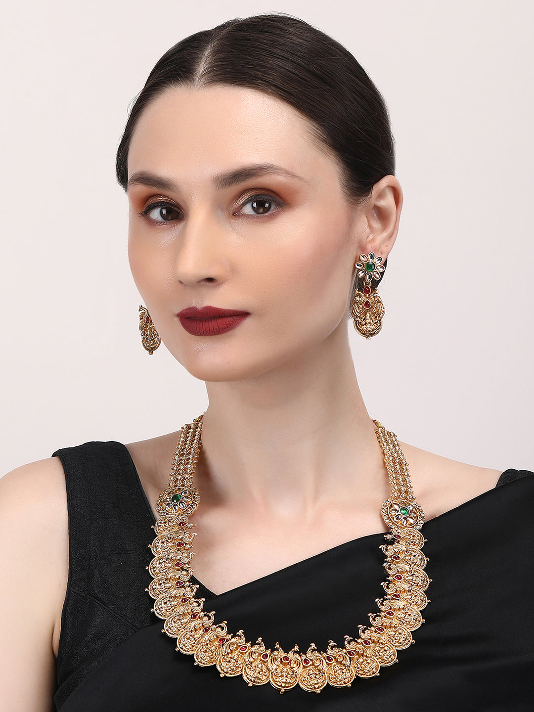 Indulge in the opulence of StileAdda's exquisite temple jewelry collection, meticulously handcrafted to radiate divine allure. Each bead whispers tales of tradition and reverence, capturing the essence of Indian heritage. Adorn yourself with the embodiment of timeless elegance, meticulously designed to grace any occasion with its celestial charm.