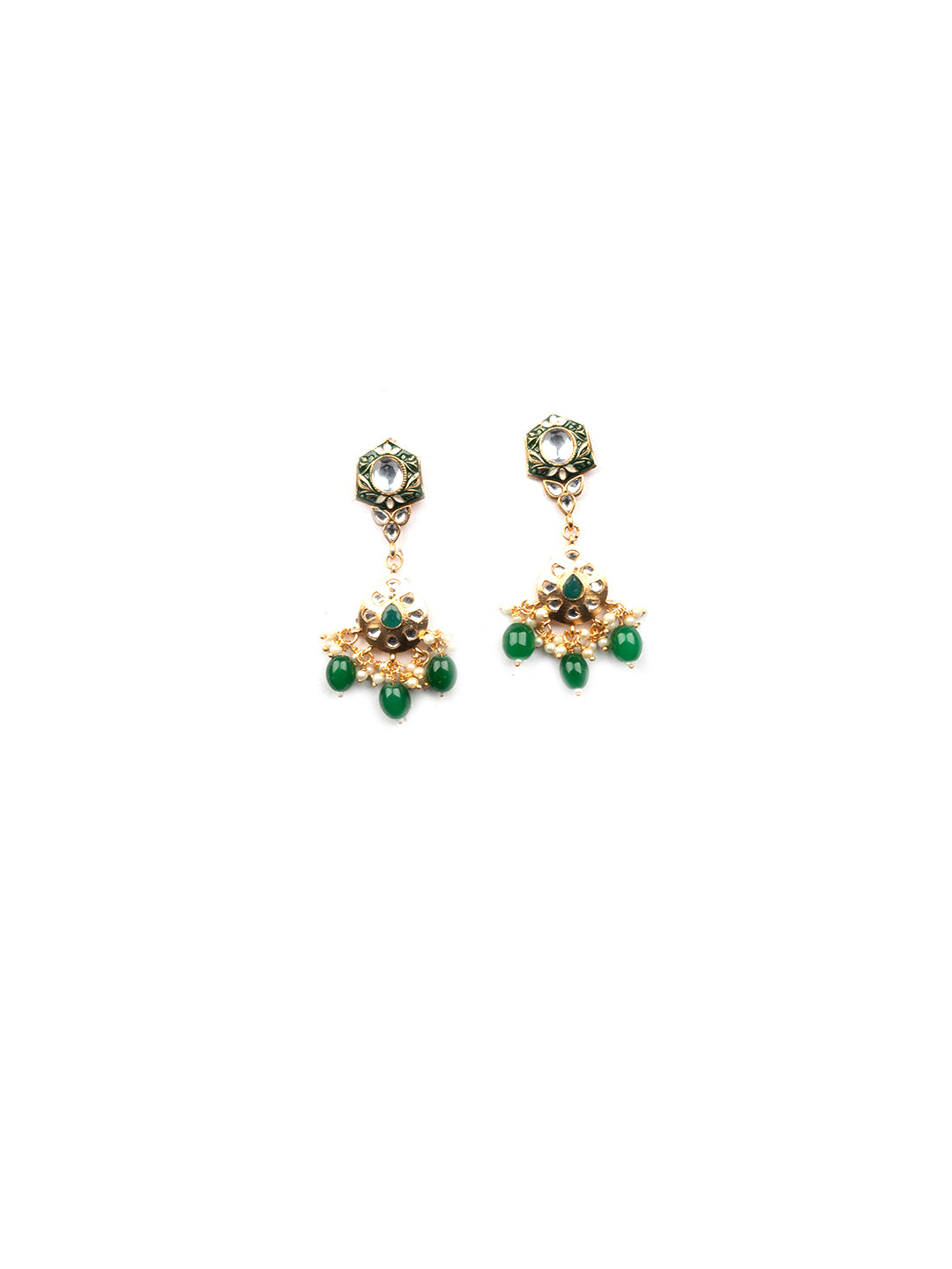 Enhance your ensemble with StileAdda's elegant Enamel Coated Kundan Droplet Choker Set. Crafted with finesse, this choker set features exquisite Kundan embellishments coated with enamel for a luxurious finish. The delicate droplets add a touch of sophistication to your neckline.