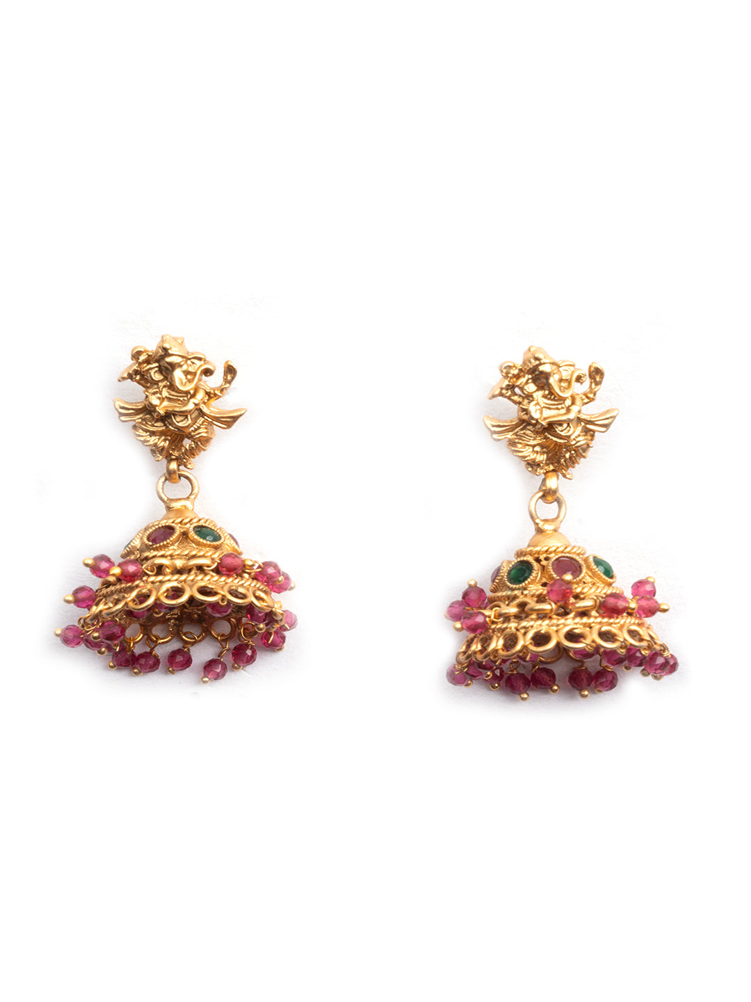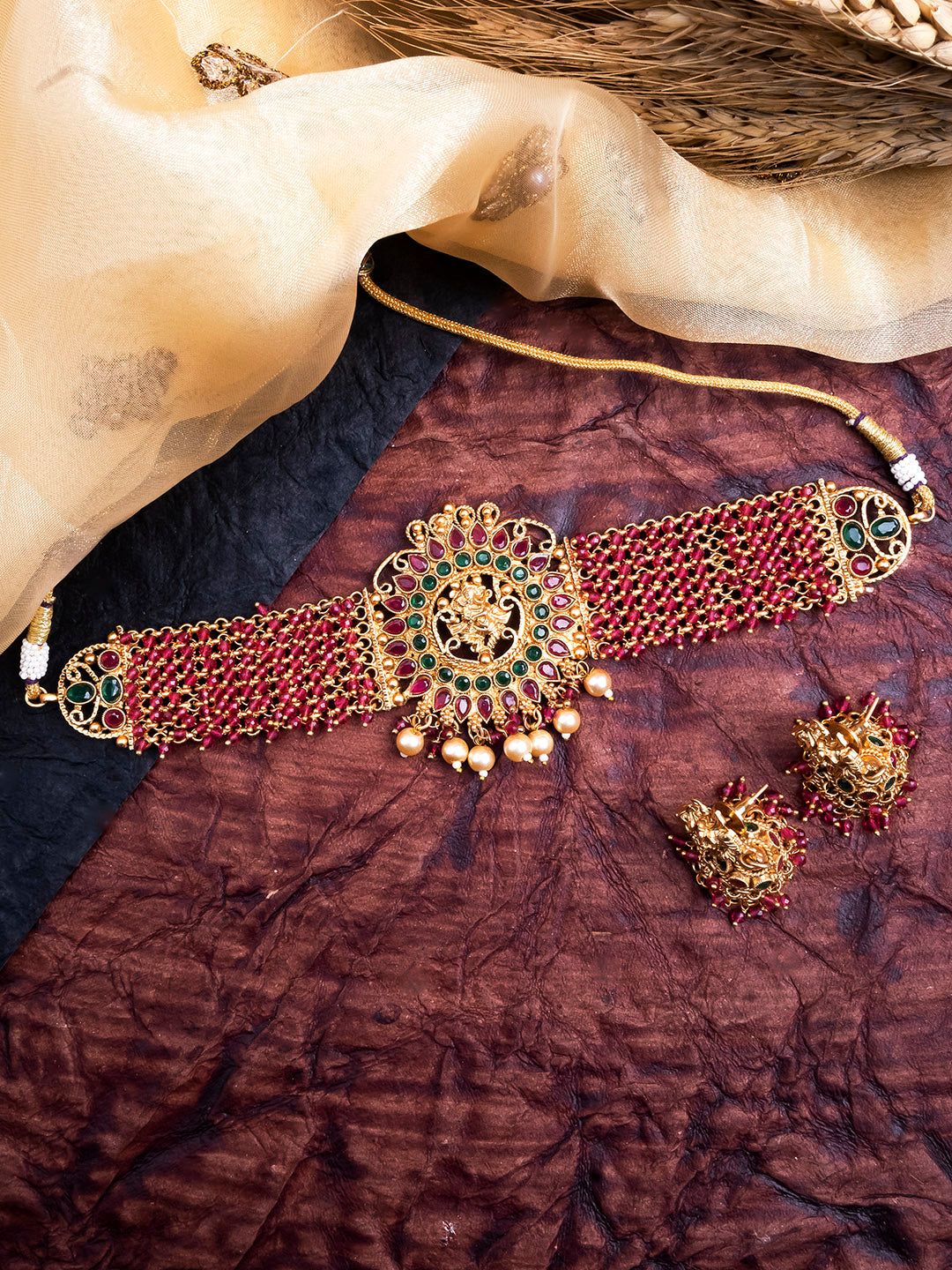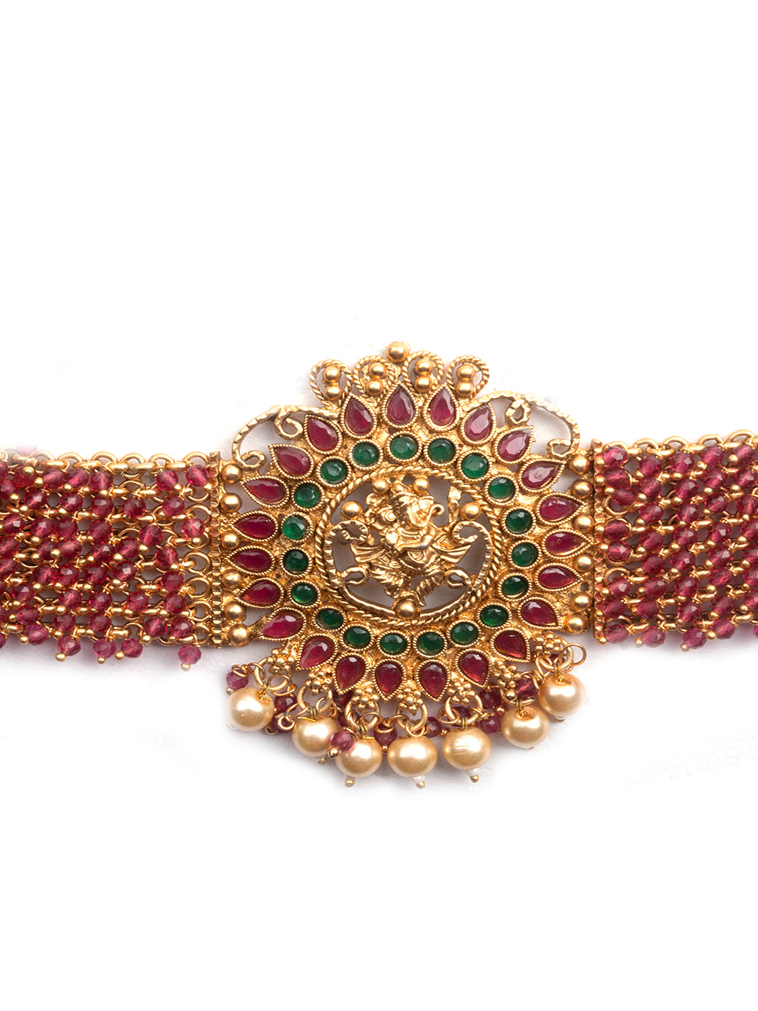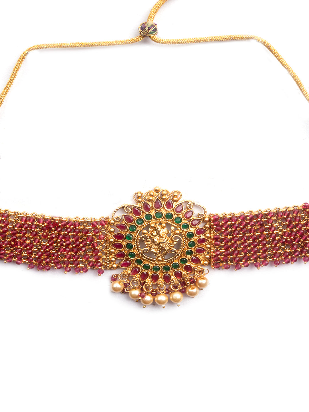 Precious Gold Plated Ganapati Red Hydra Beads Necklace Set