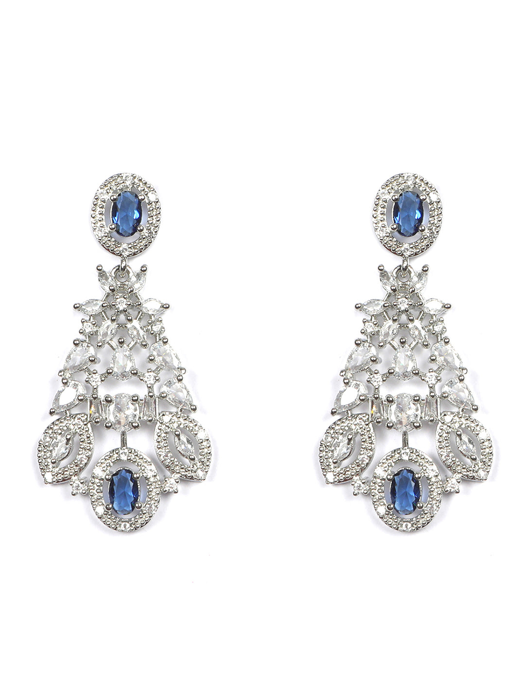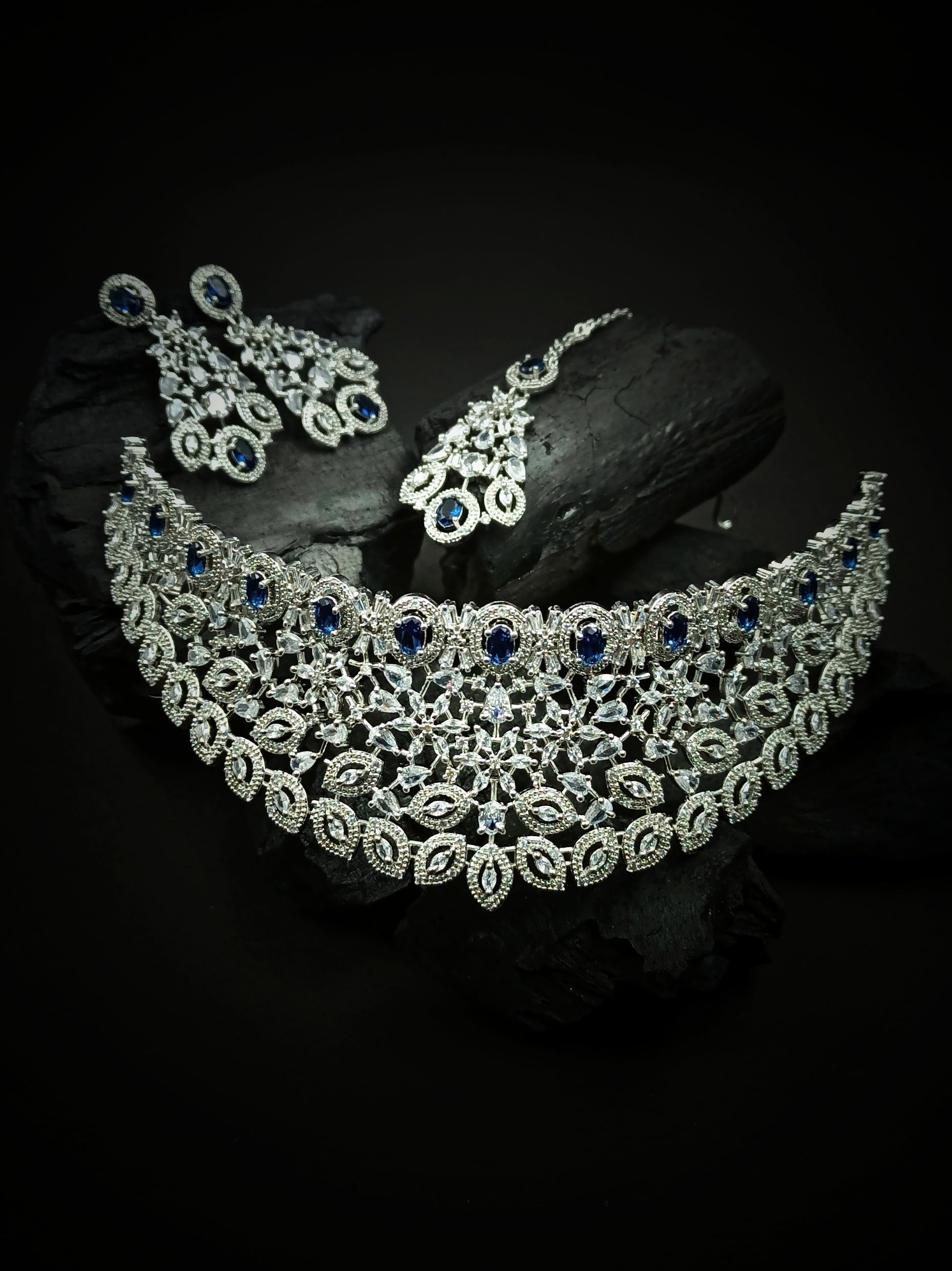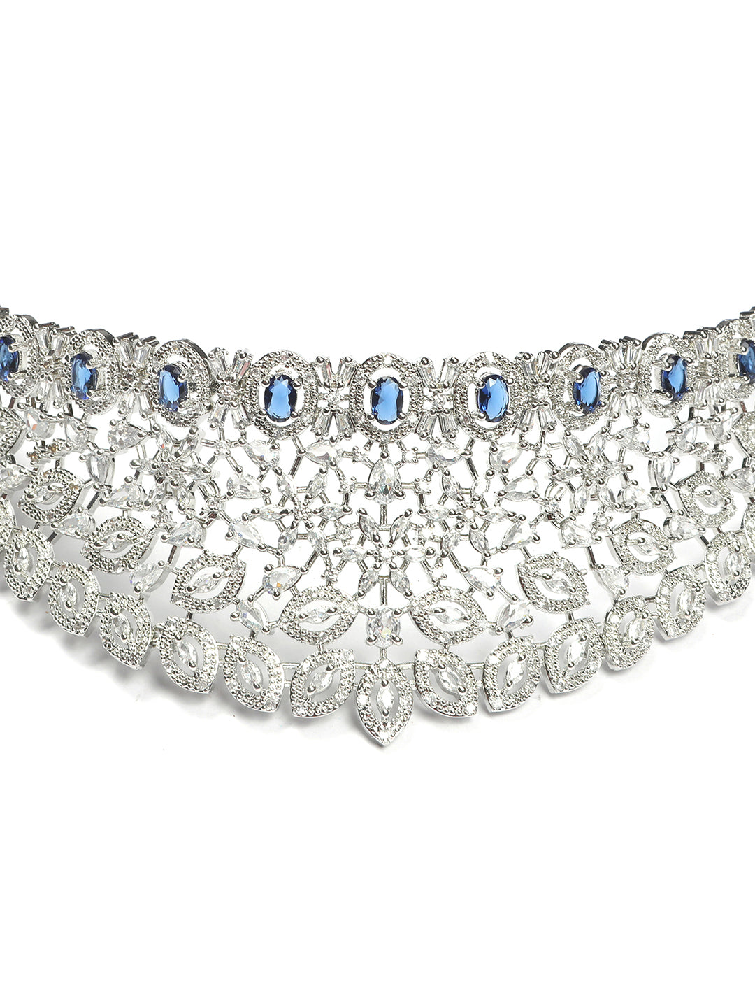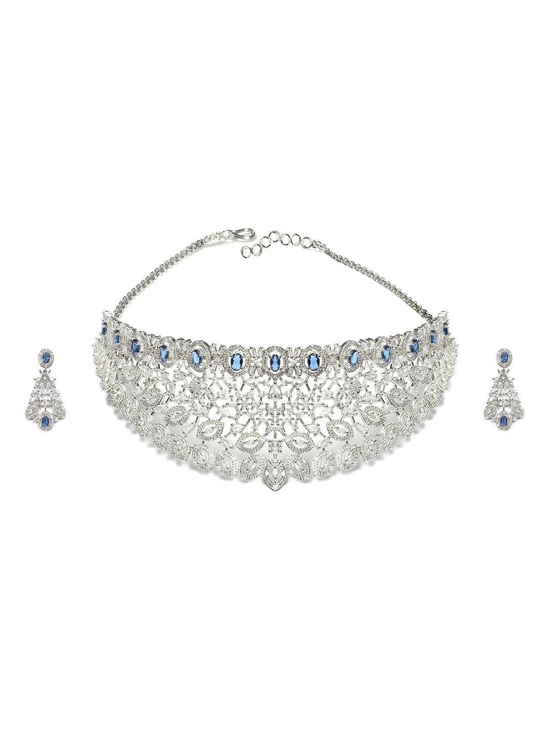 Silver Plated Blue Cubic Zirconia Bridal Necklace Set | Exquisite Wedding Jewellery Set