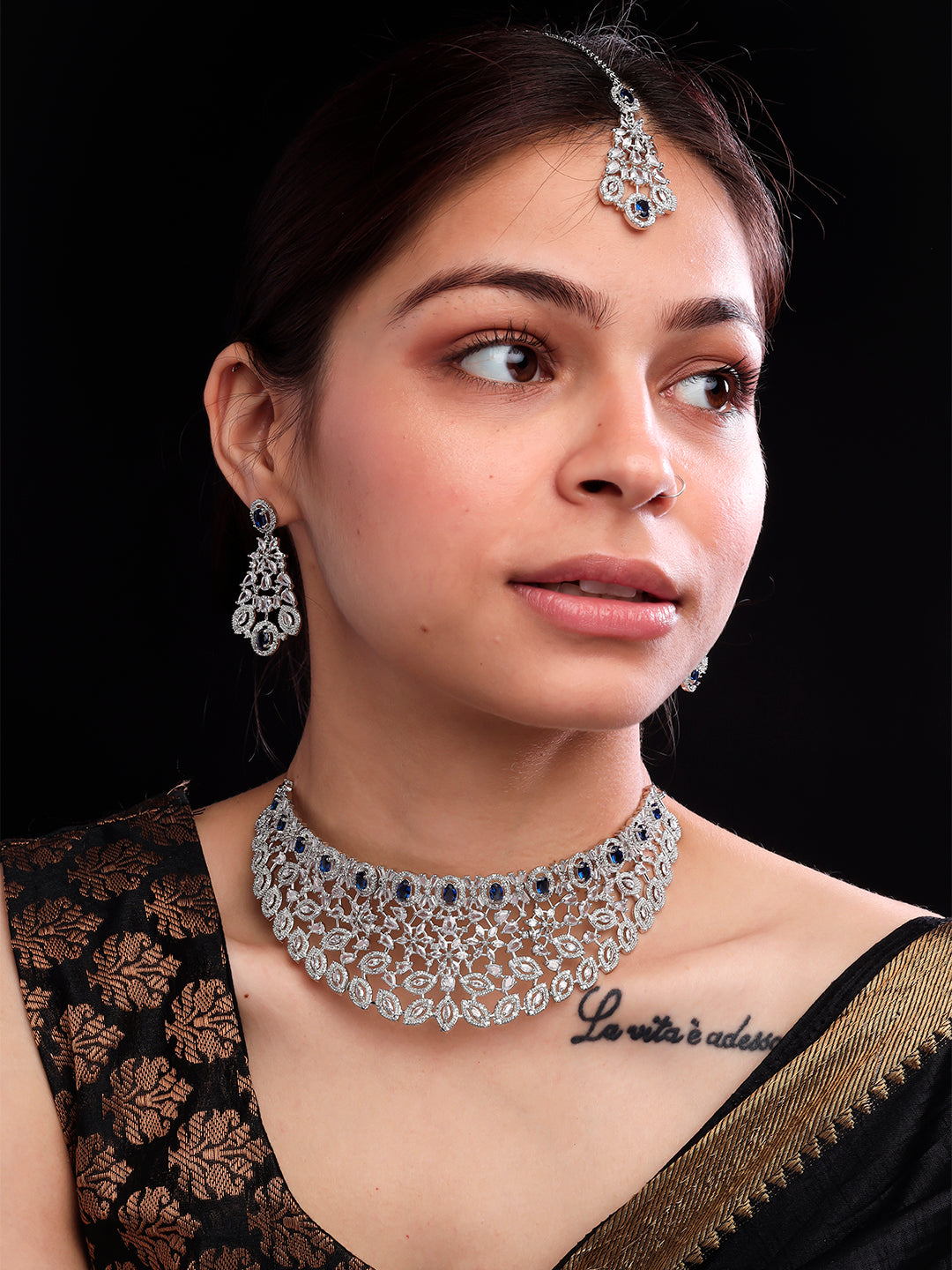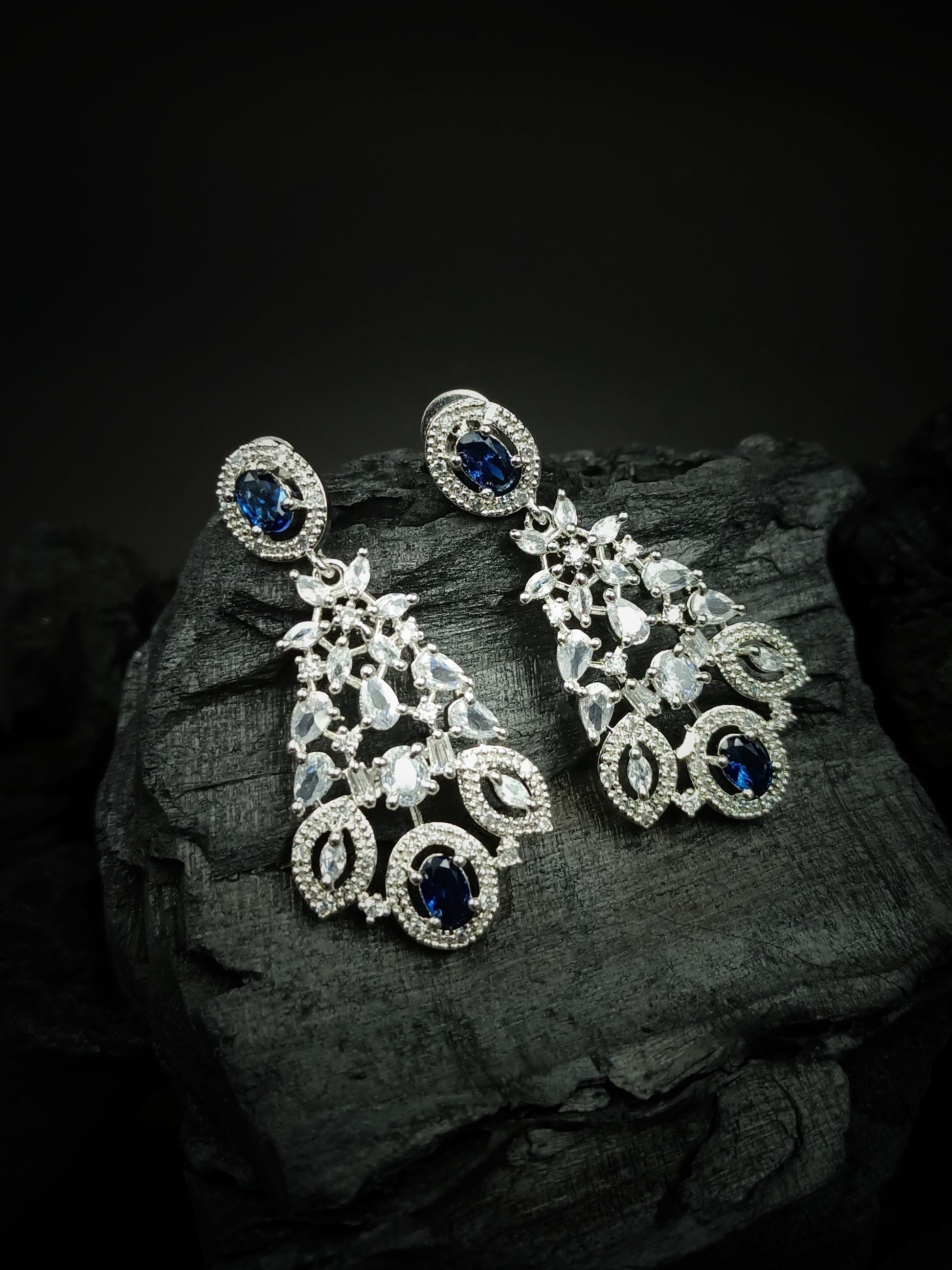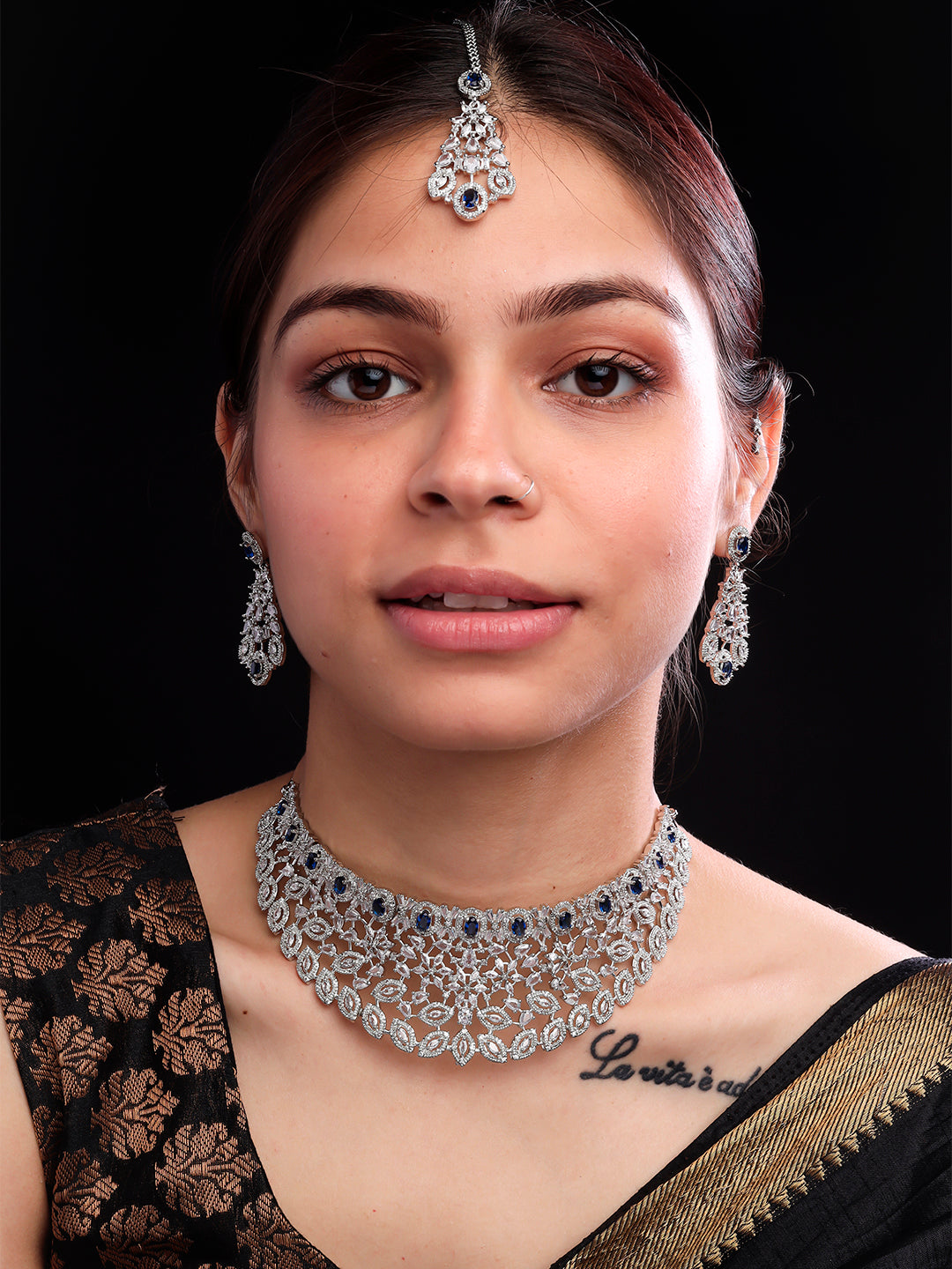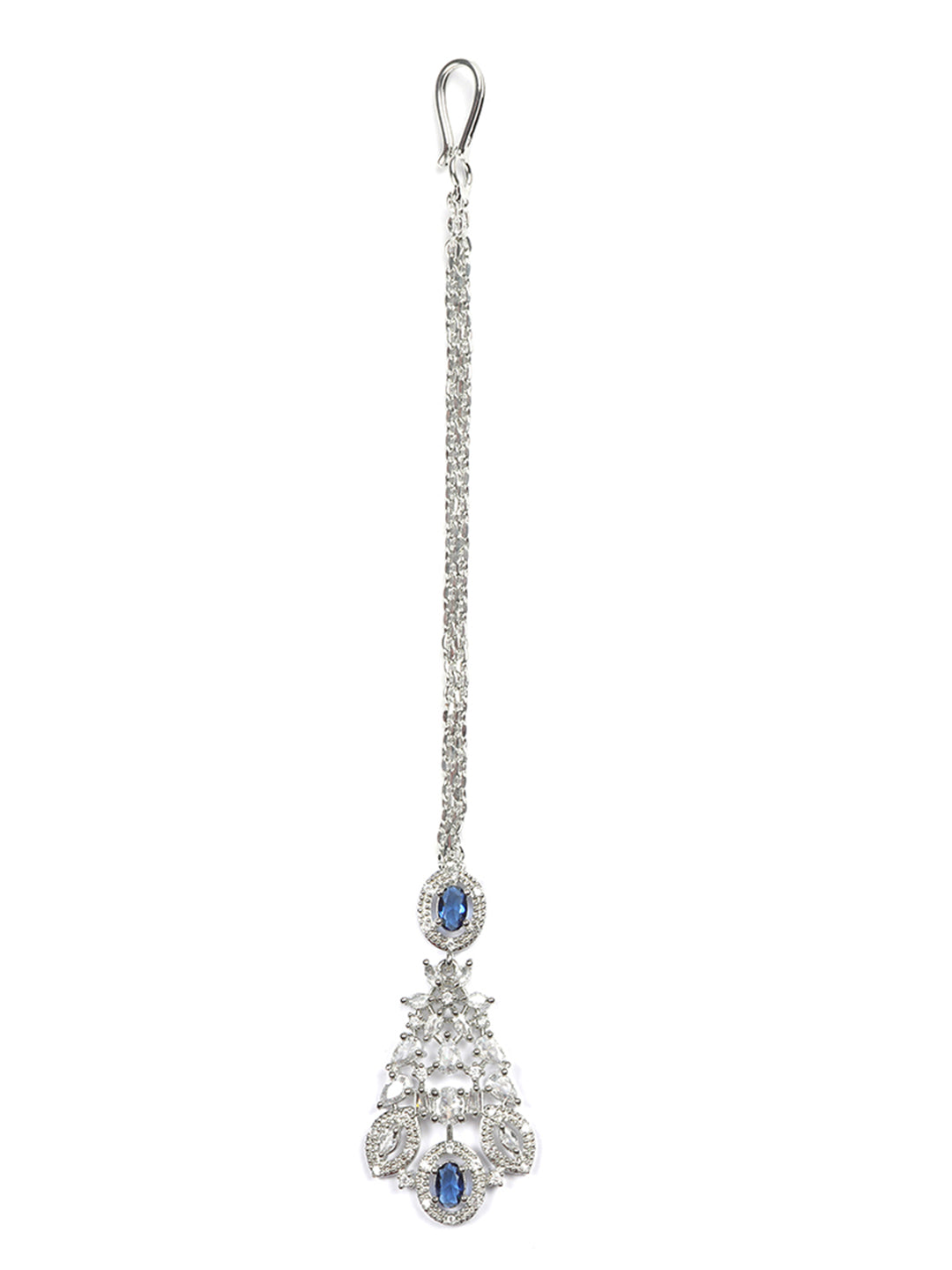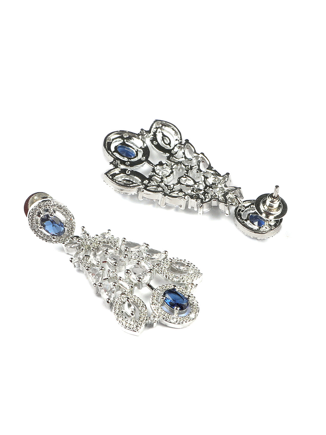 Silver Plated Blue Cubic Zirconia Bridal Necklace Set | Exquisite Wedding Jewellery Set