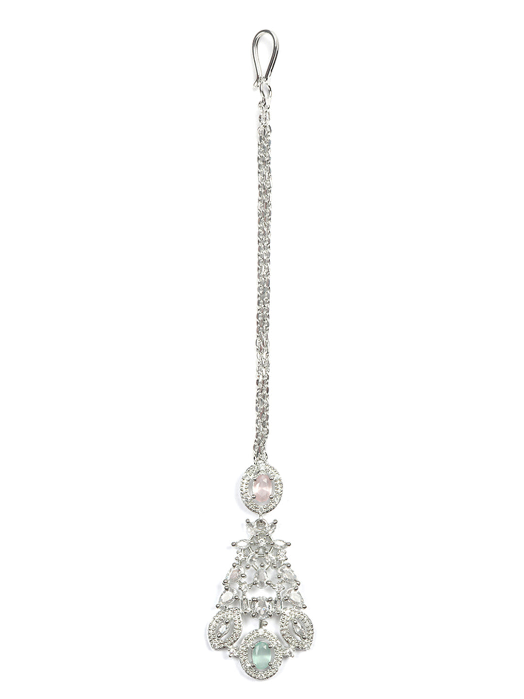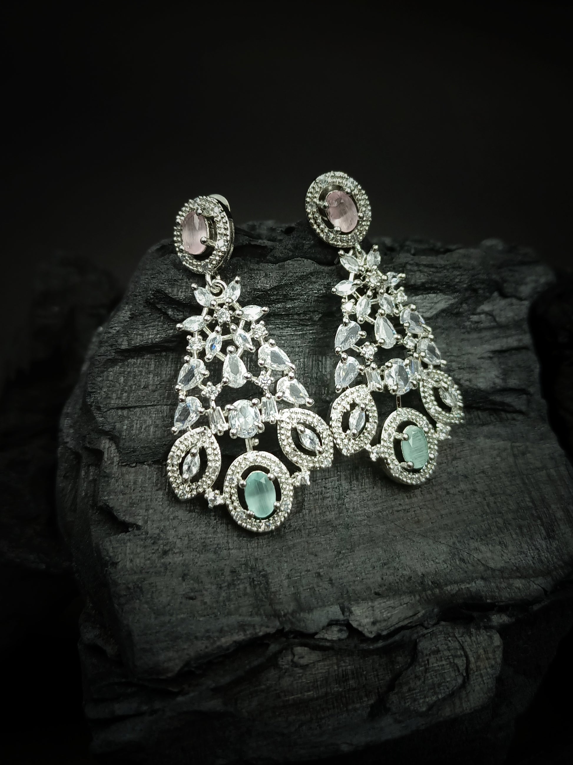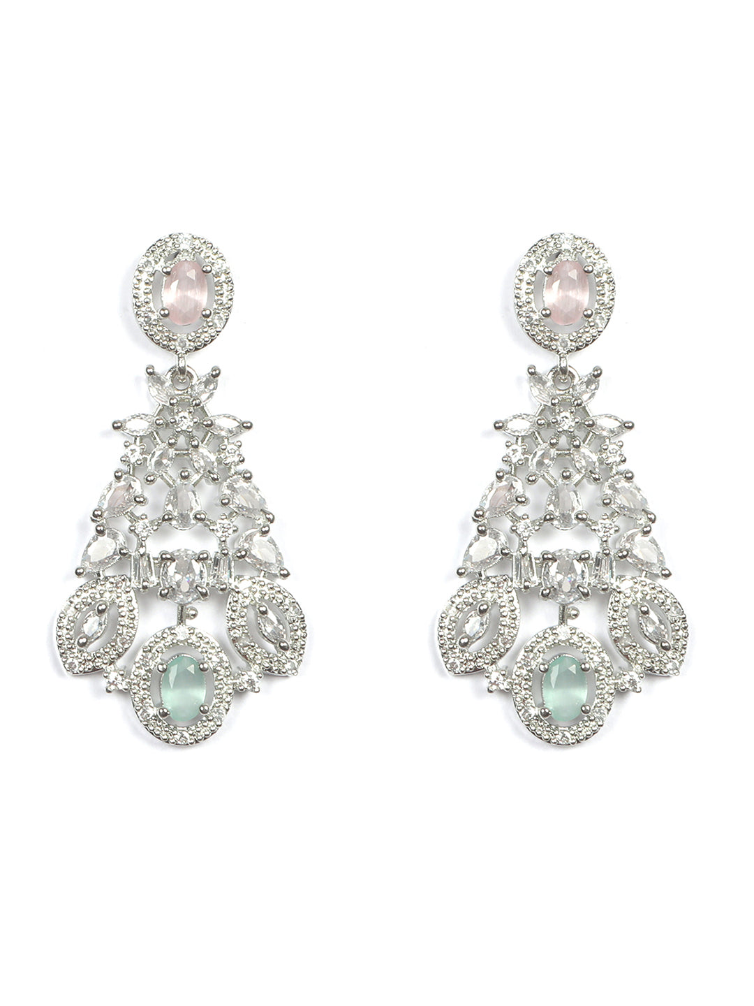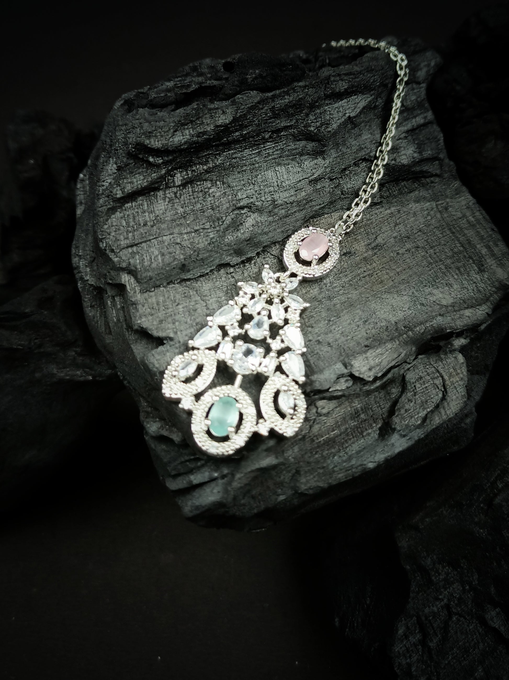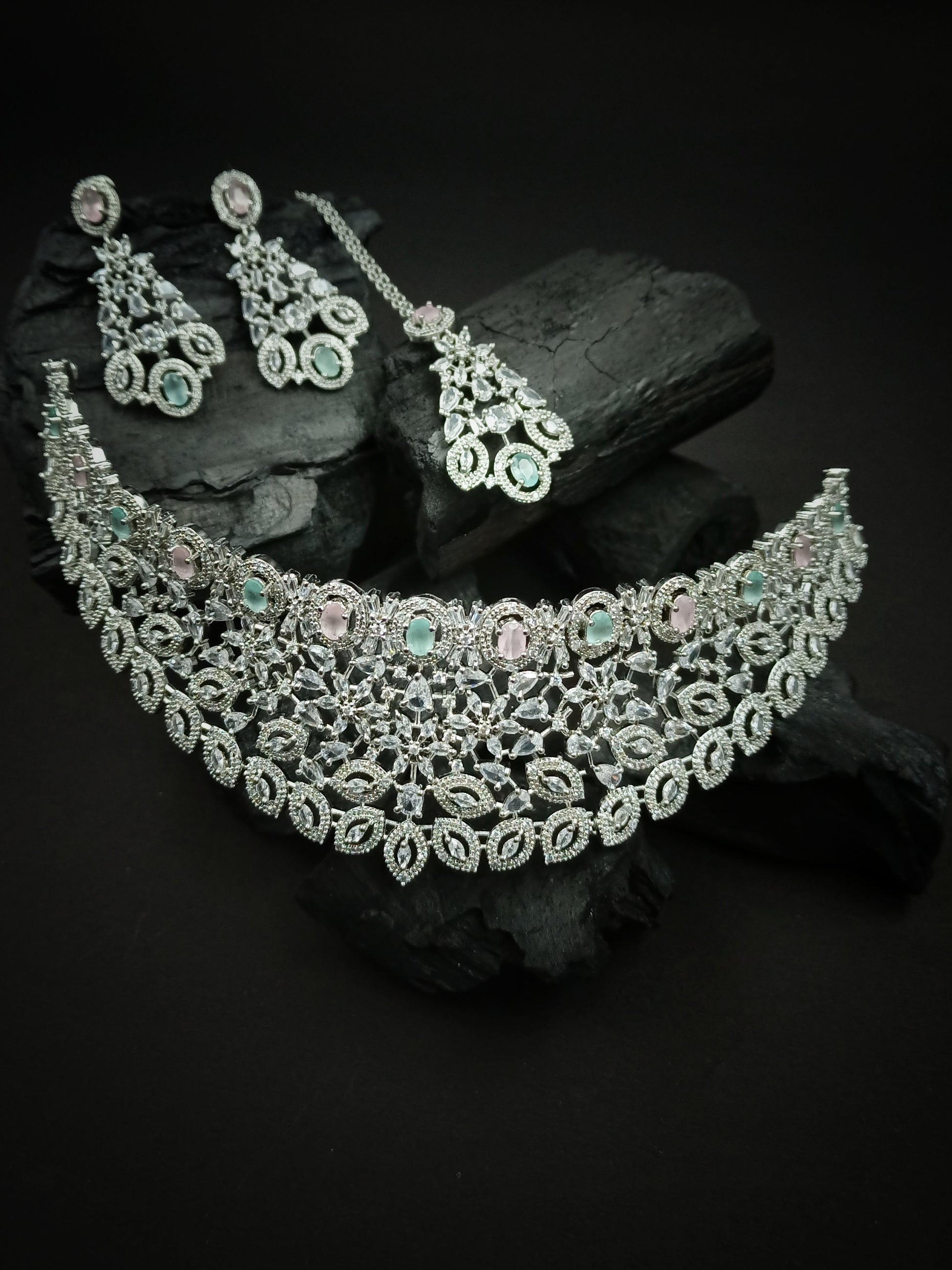 Silver Plated Multicolor Cubic Zirconia Bridal Necklace Set | Exquisite Wedding Jewellery Set