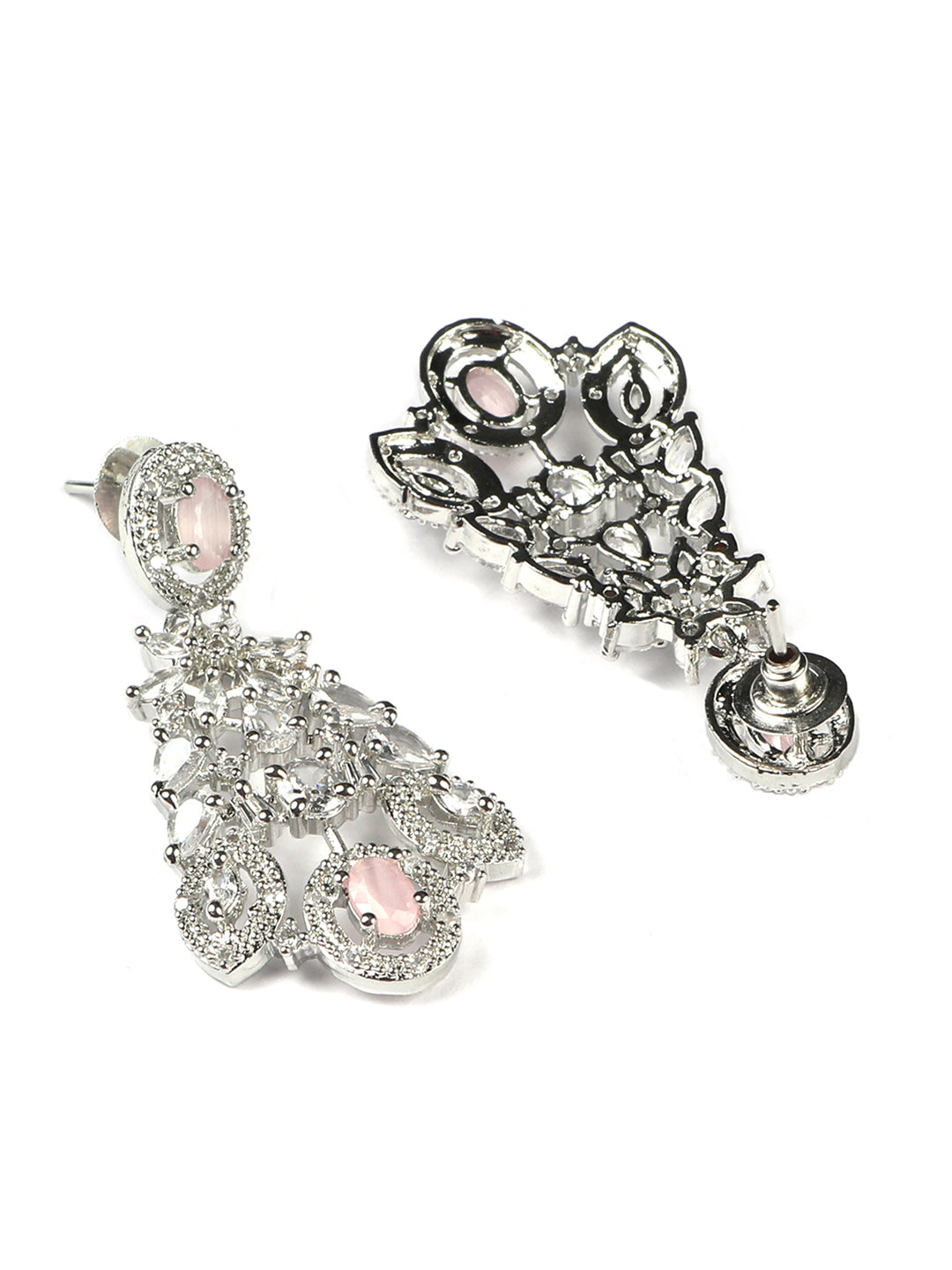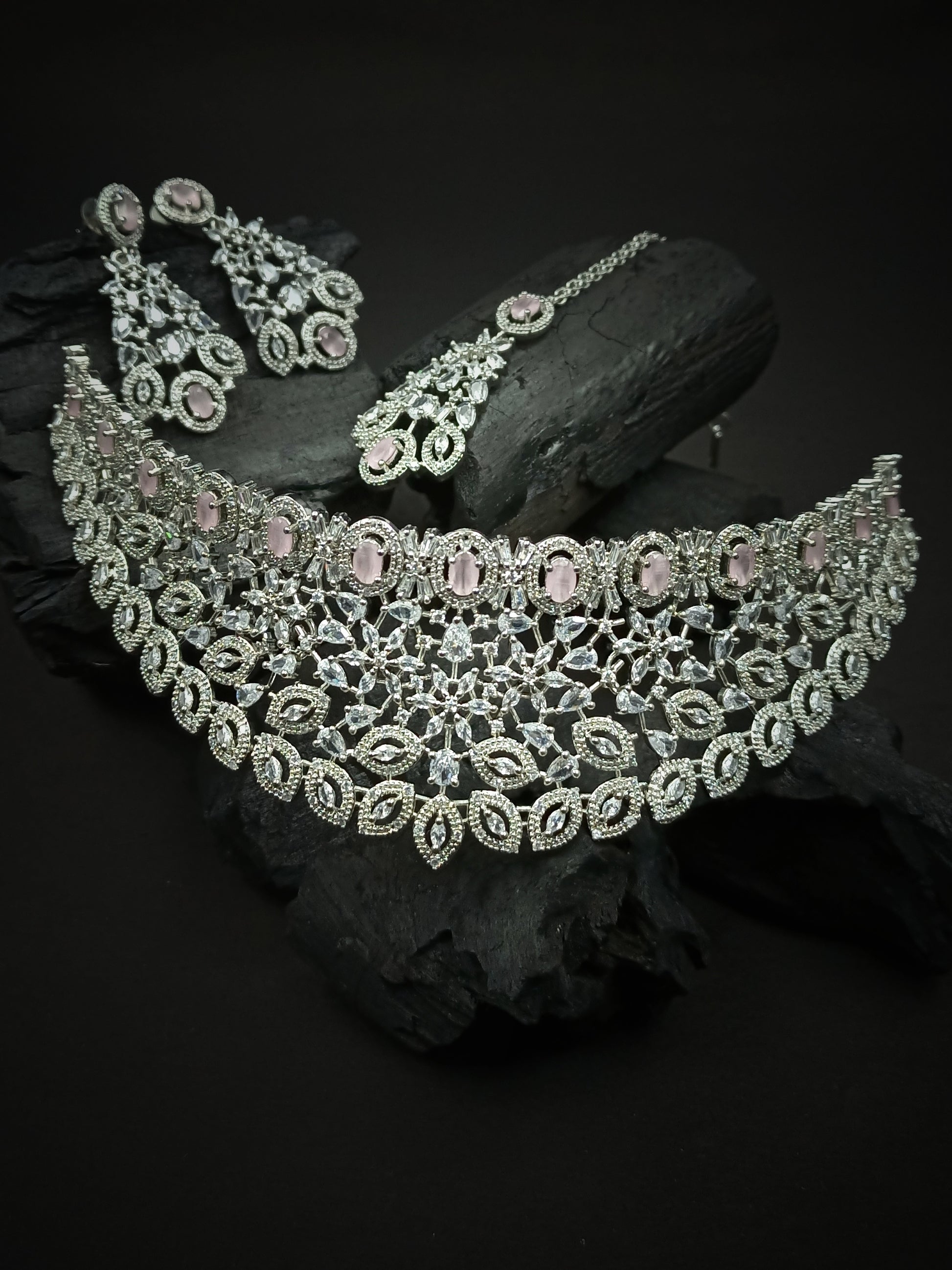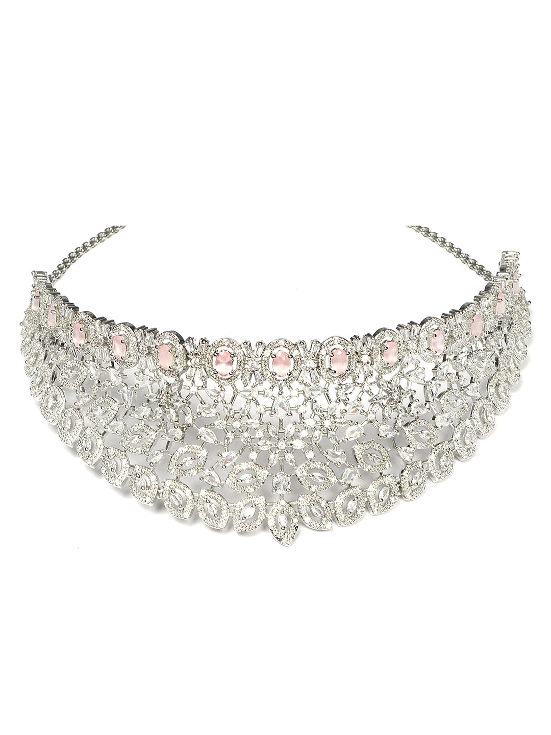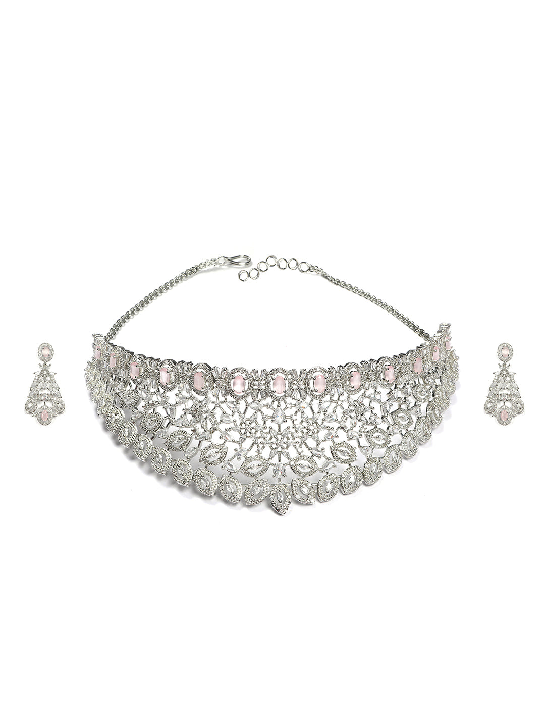 Silver Plated Pink Cubic Zirconia Bridal Necklace Set | Exquisite Wedding Jewellery Set