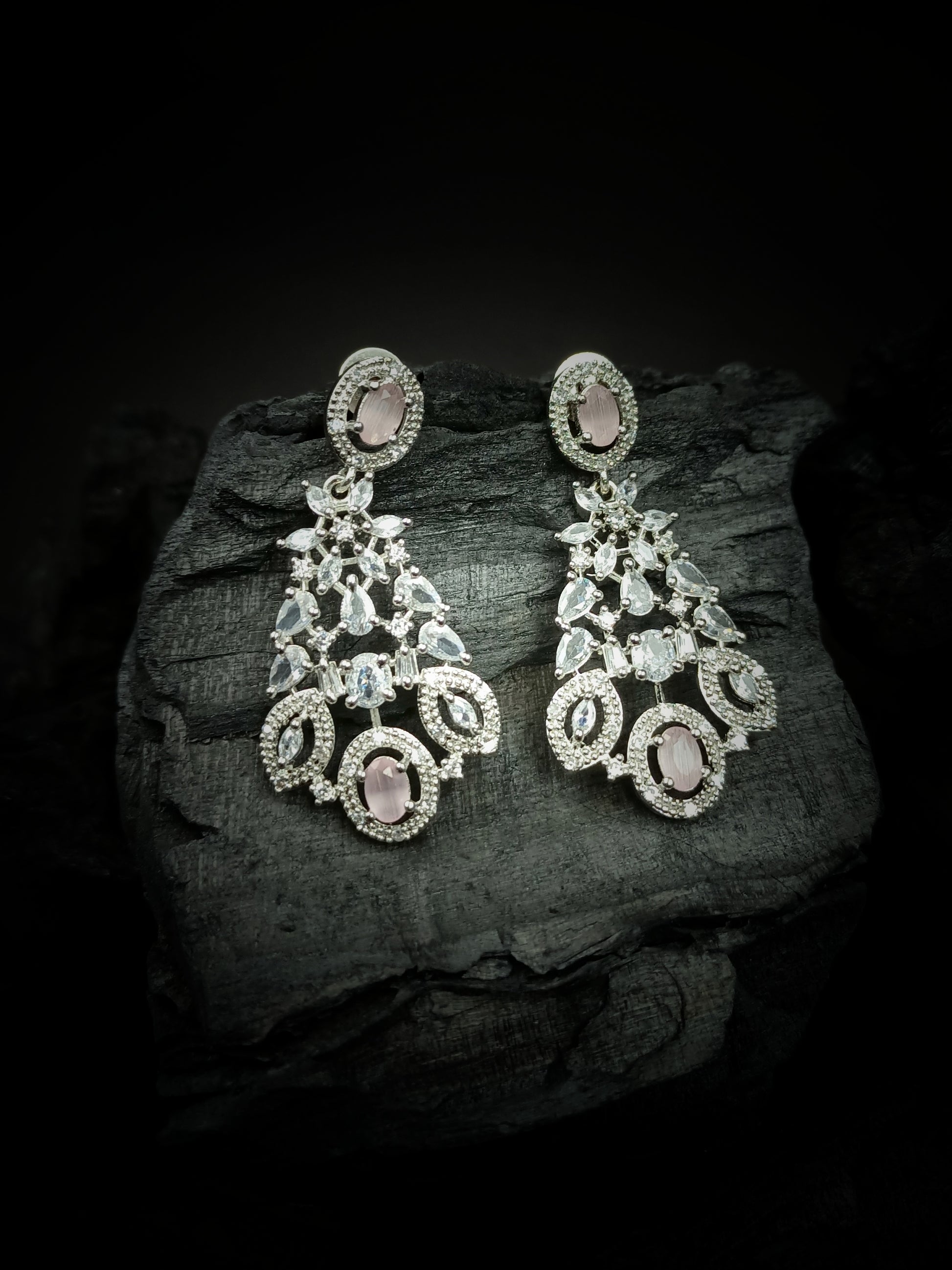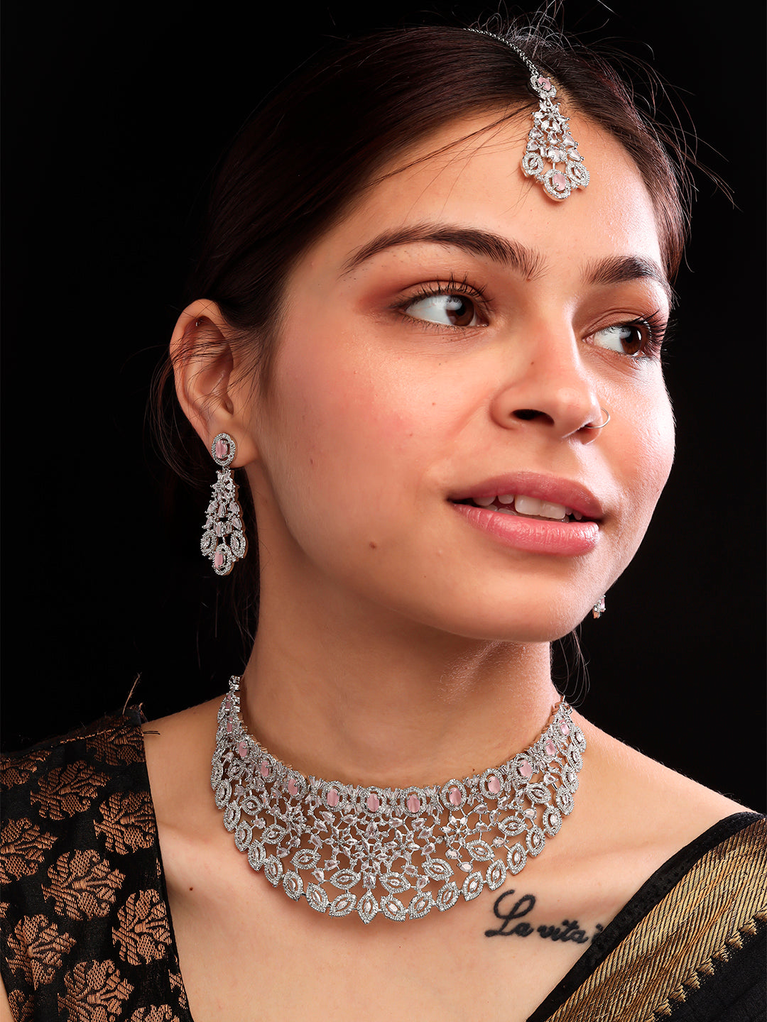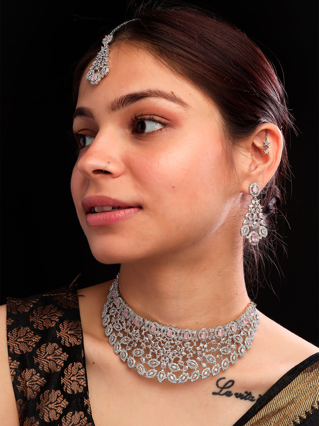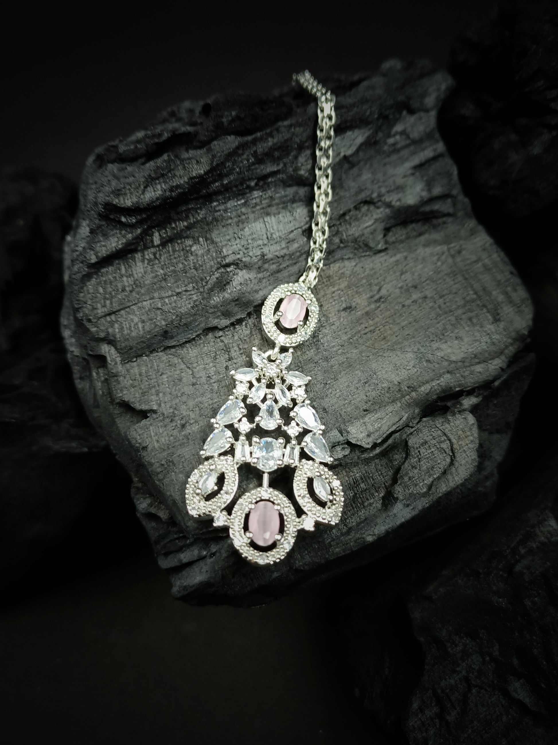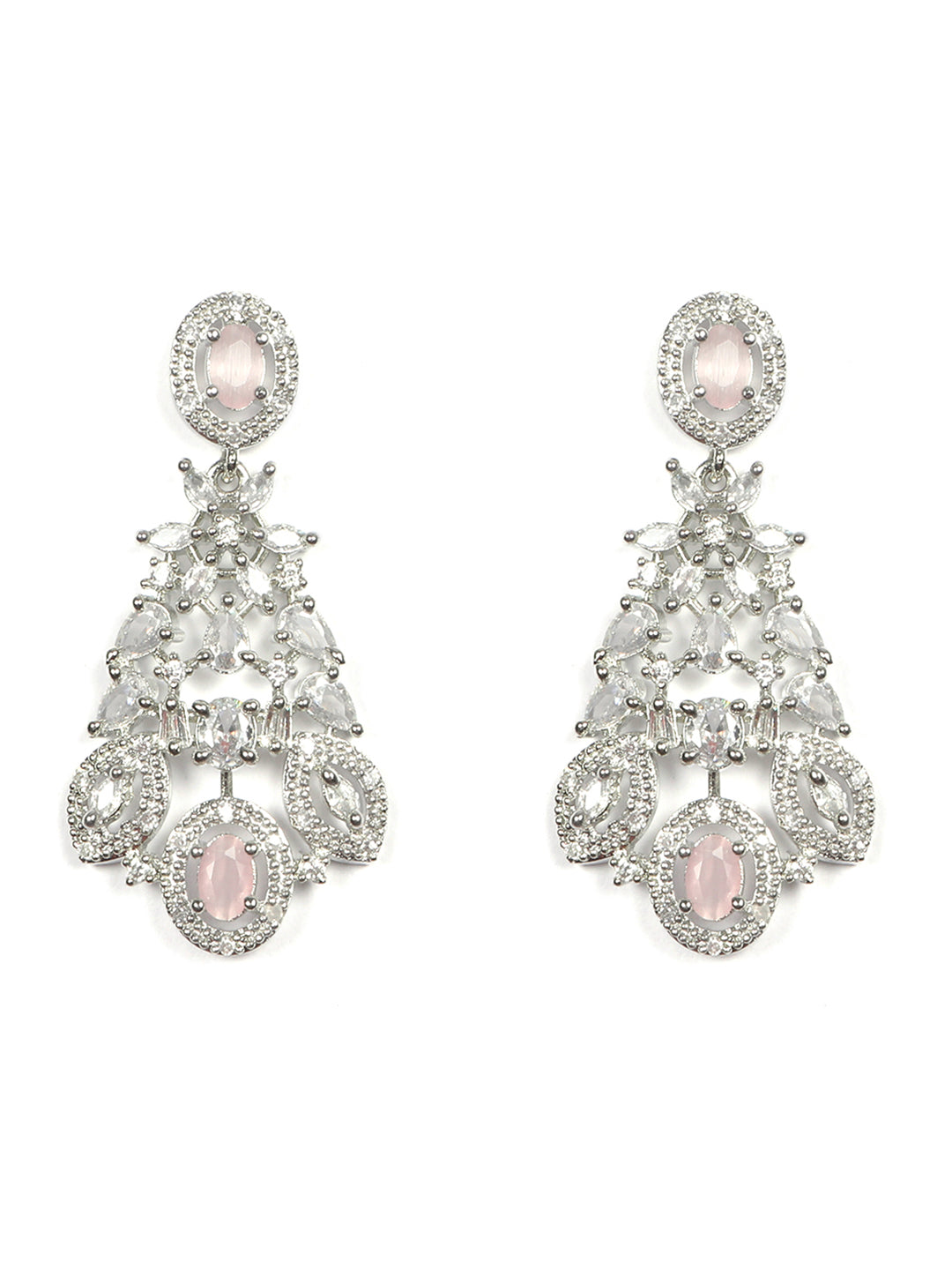 Silver Plated Pink Cubic Zirconia Bridal Necklace Set | Exquisite Wedding Jewellery Set