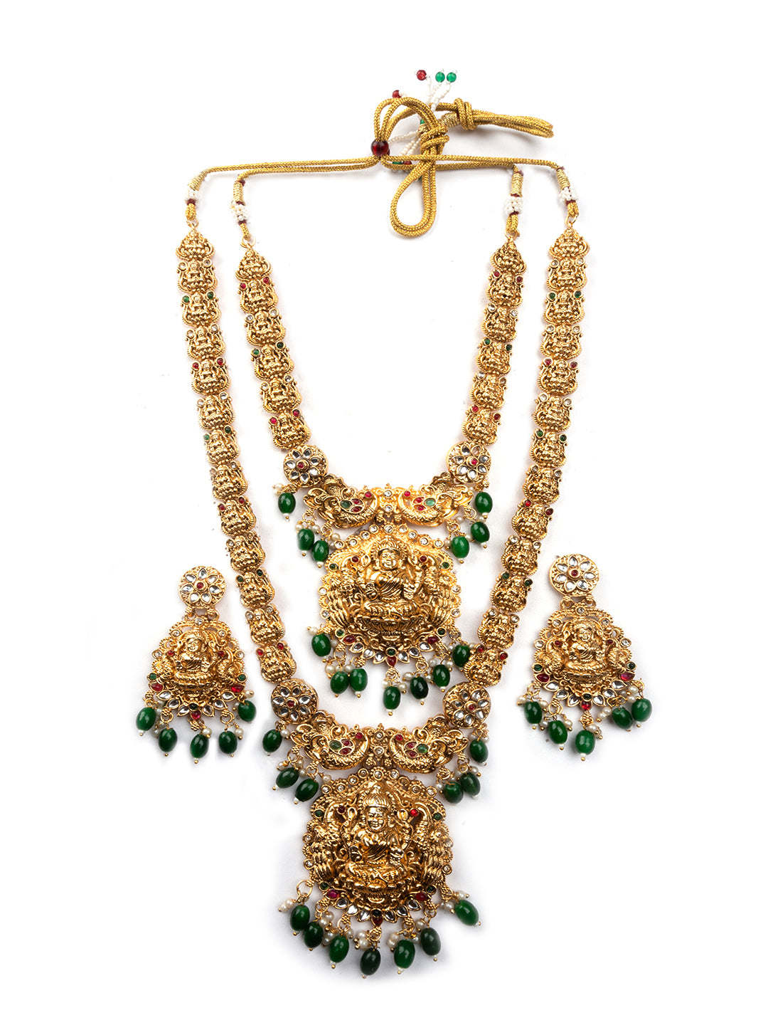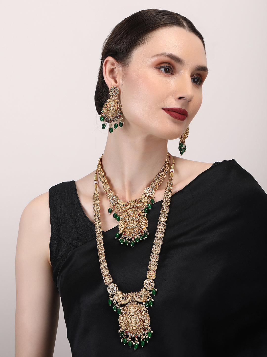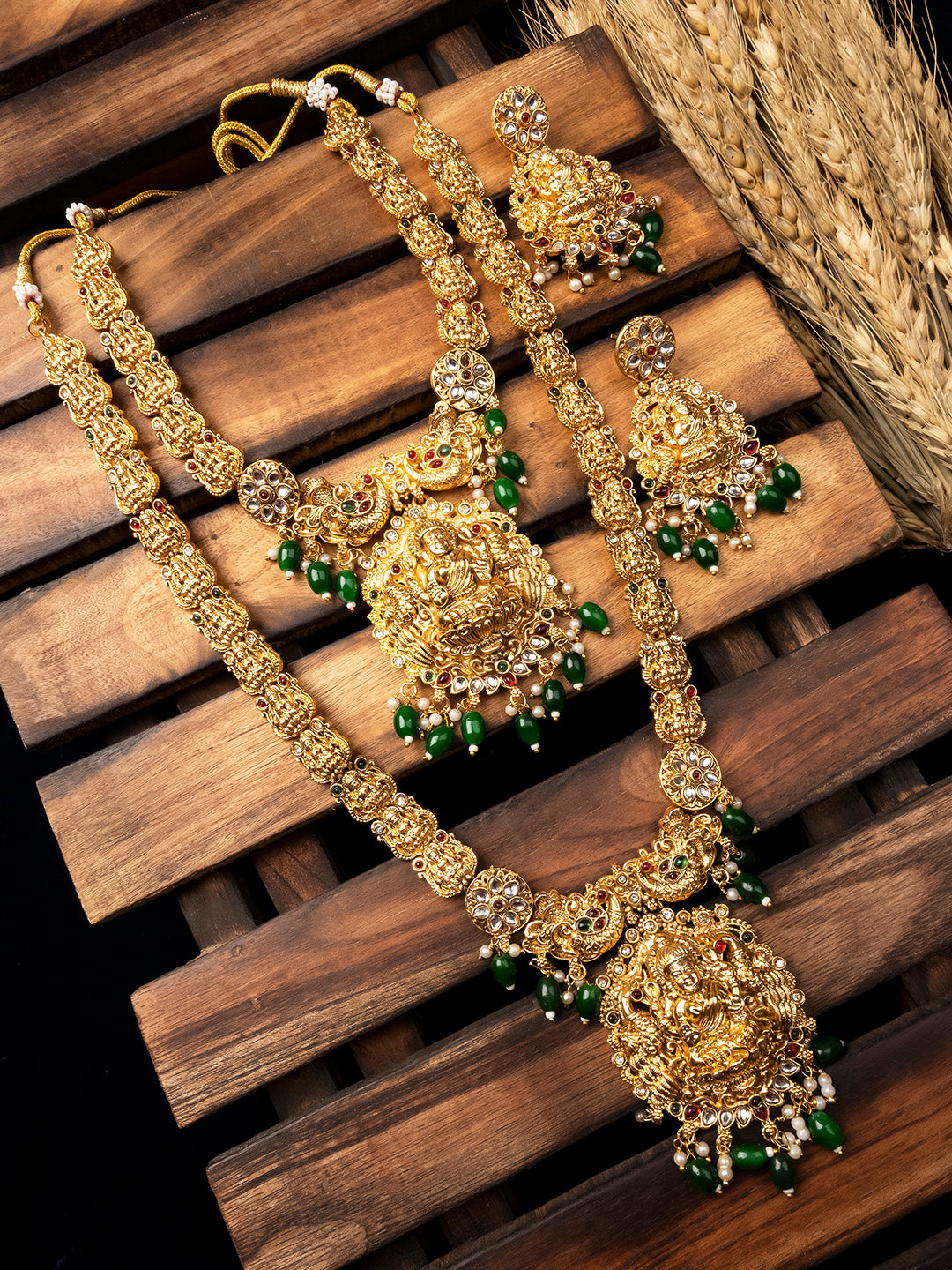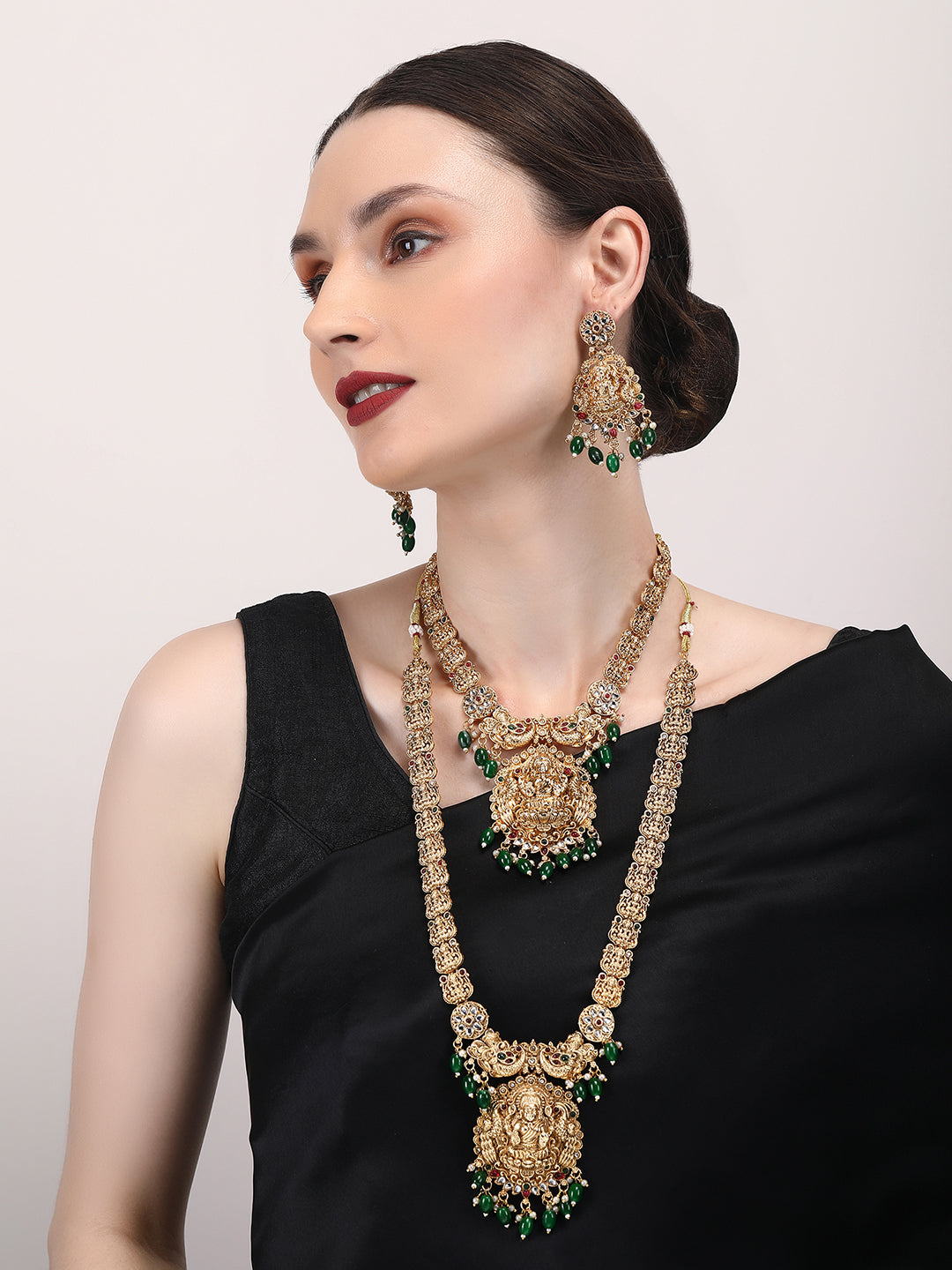 Unique Green Beads Lakshmi Patti Combo Jewellery Set