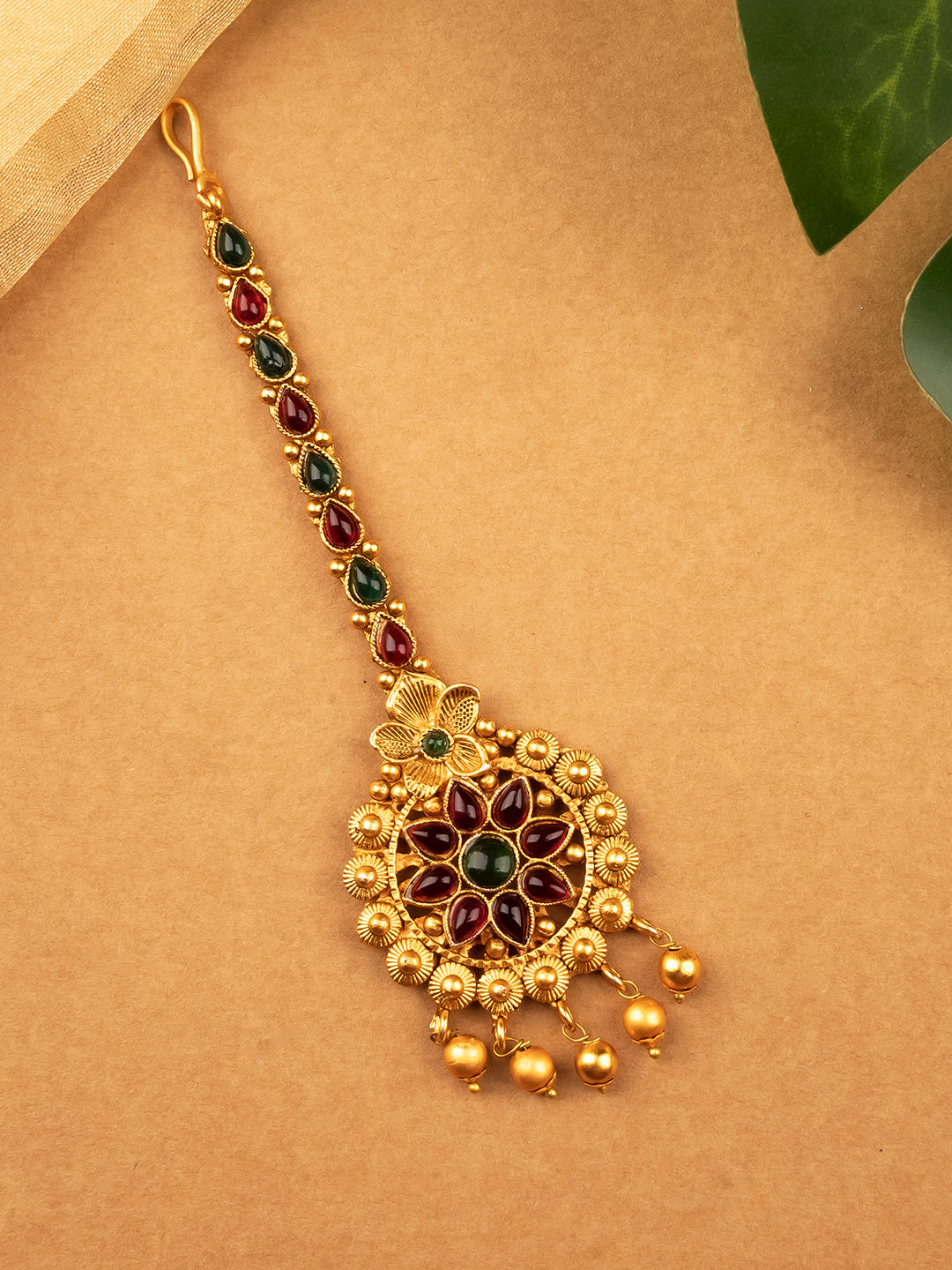 Gold Plated Kemp Maangtika: Timeless South Indian Beauty