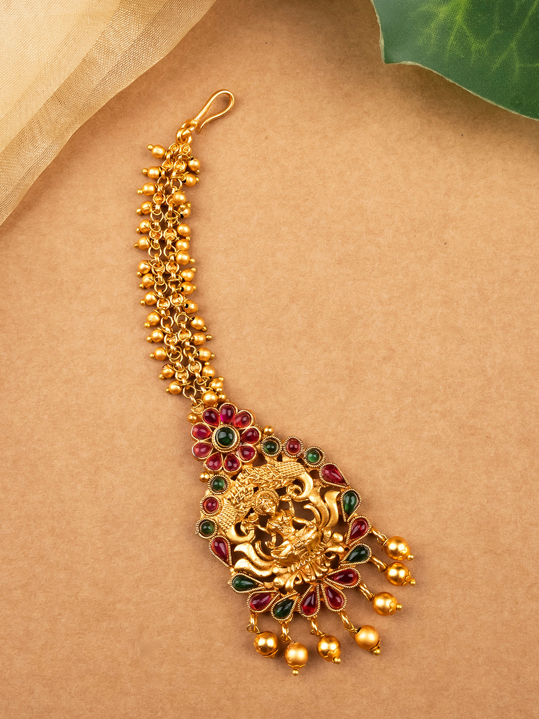 Elevate your bridal look with StileAdda's elegant gold plated kemp maangtika! This stunning piece adds a touch of traditional beauty to any wedding ensemble. Handcrafted with intricate details, it will surely make you feel like a beautiful bride on your special day. Don't miss out on this perfect finishing touch!