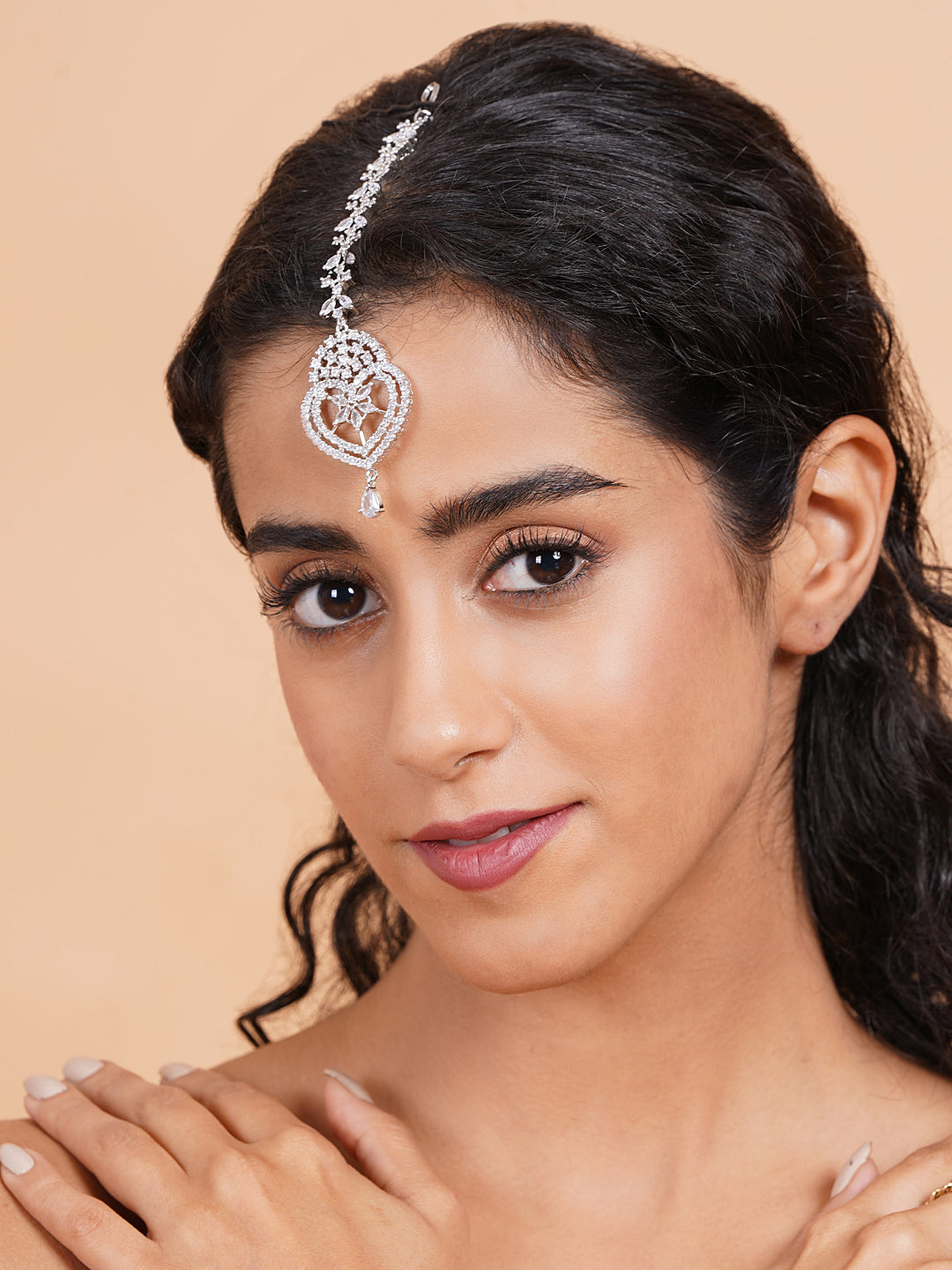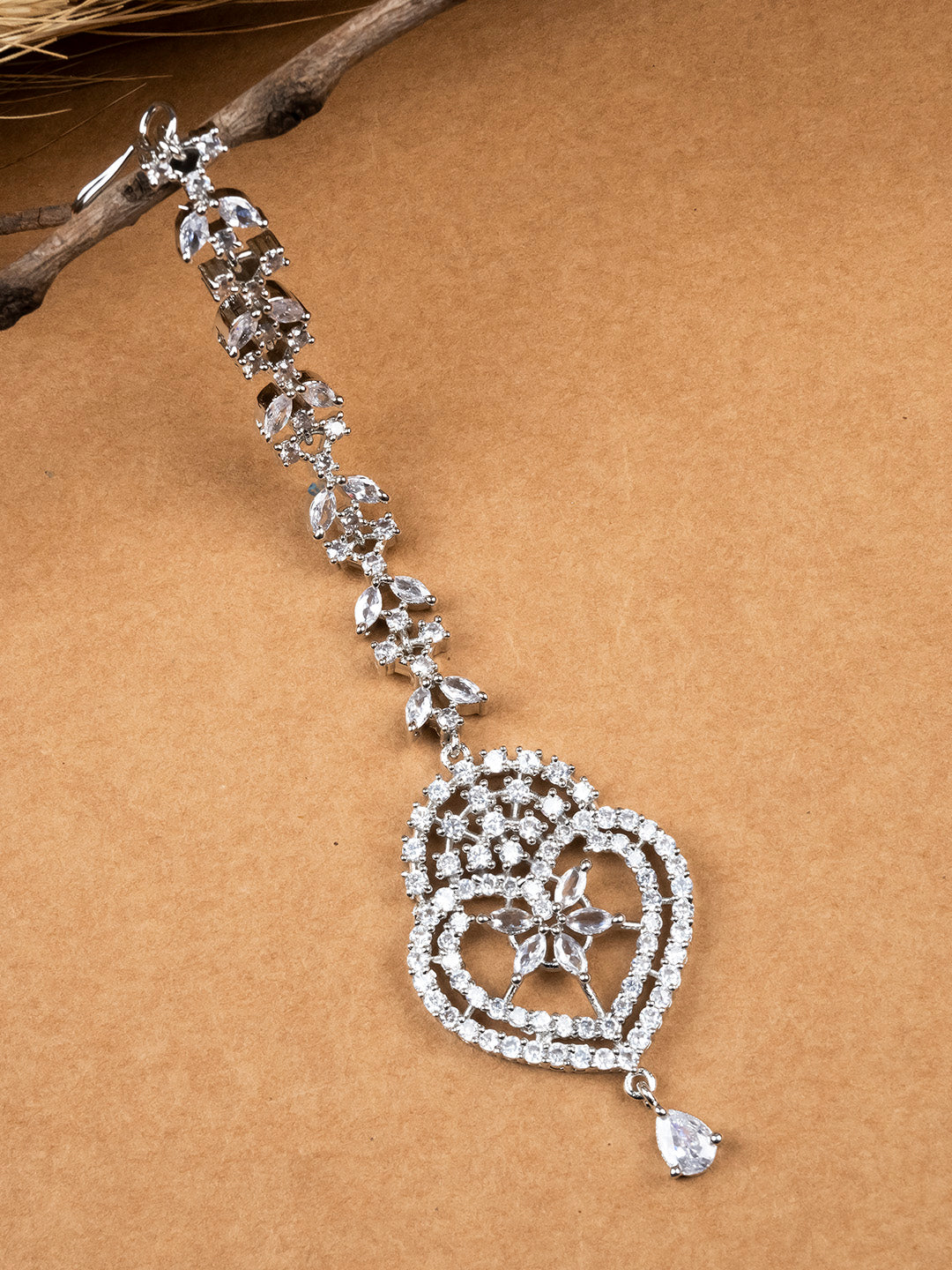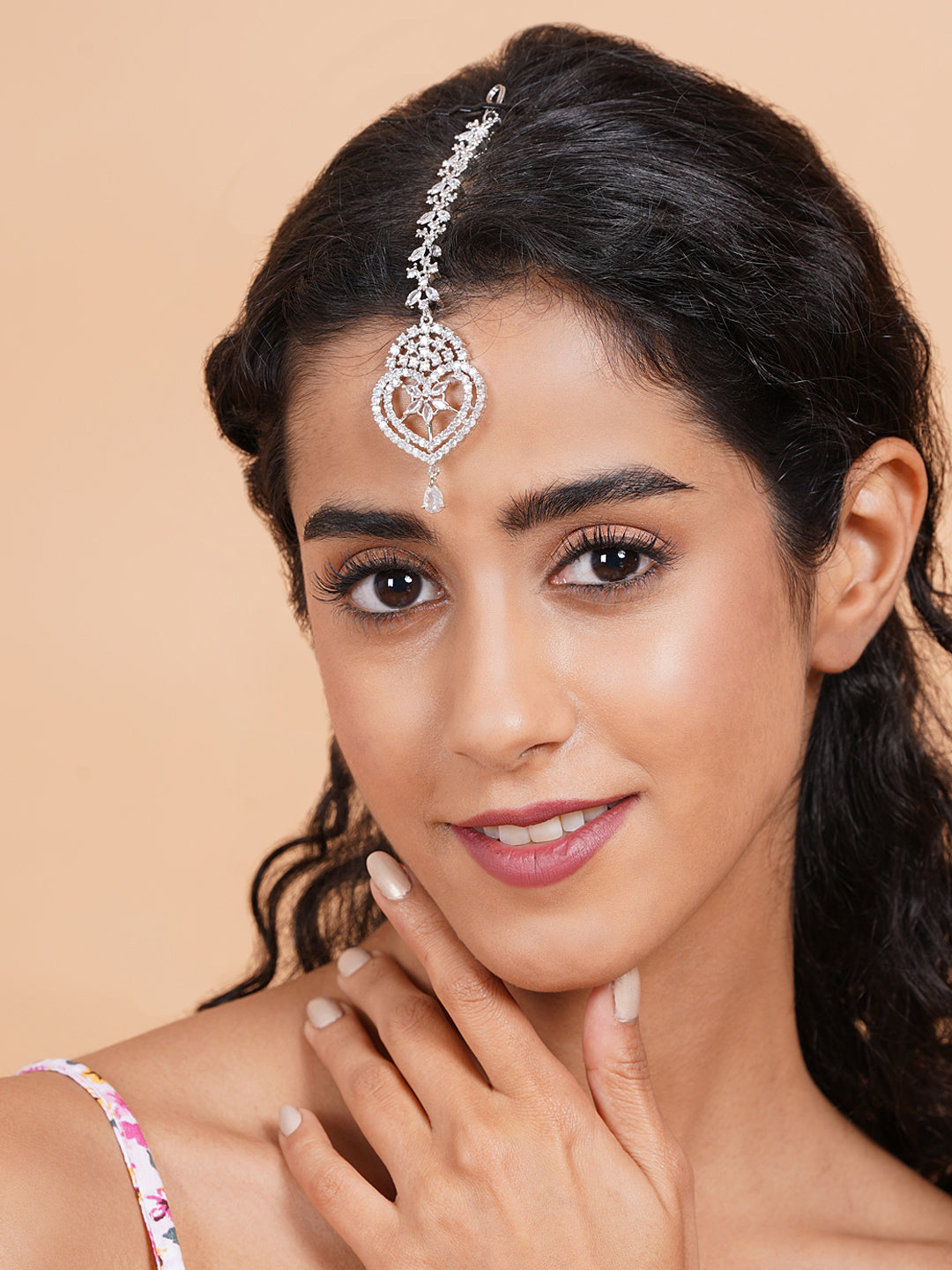 Elevate your ethnic look with StileAdda's exquisite CZ Mangtika in Silver Tone. Handcrafted to perfection, our English CZ Mangtika adds a touch of elegance to any attire. Shop now for the perfect accessory!