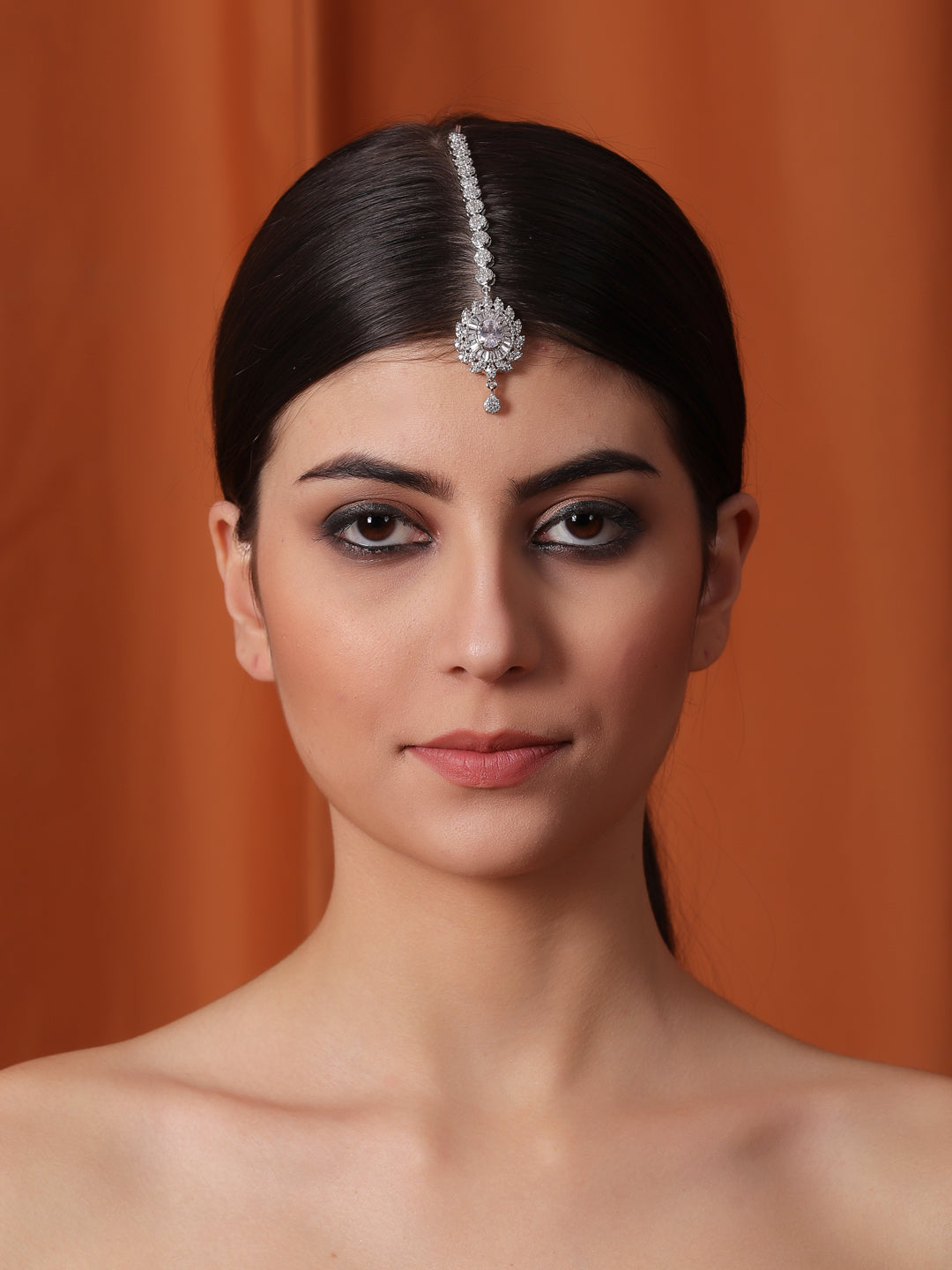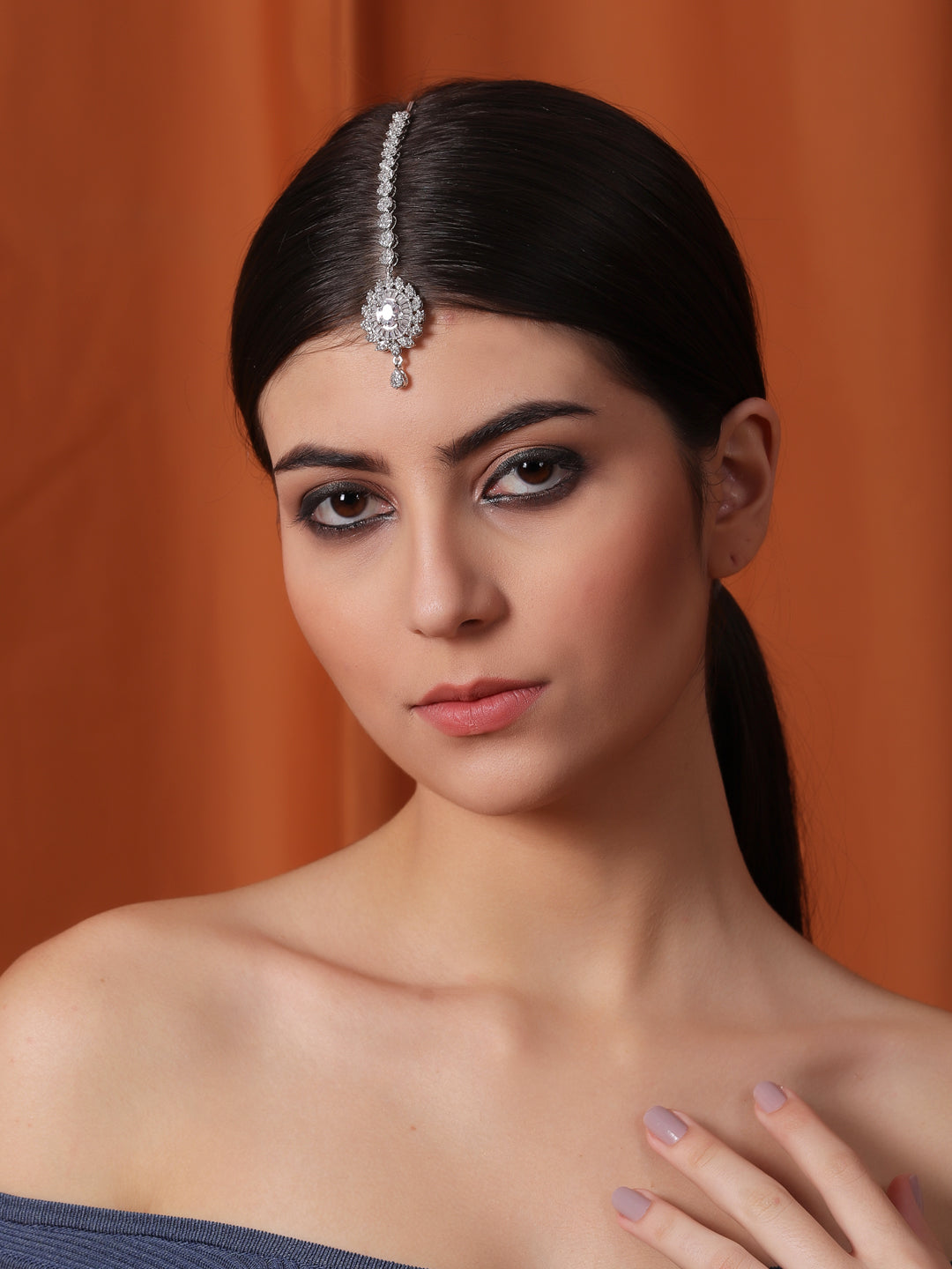 Elevate your ethnic look with StileAdda's exquisite CZ Maangtika in Silver Tone. Handcrafted to perfection, our English CZ Maangtika adds a touch of elegance to any attire. Shop now for the perfect accessory!