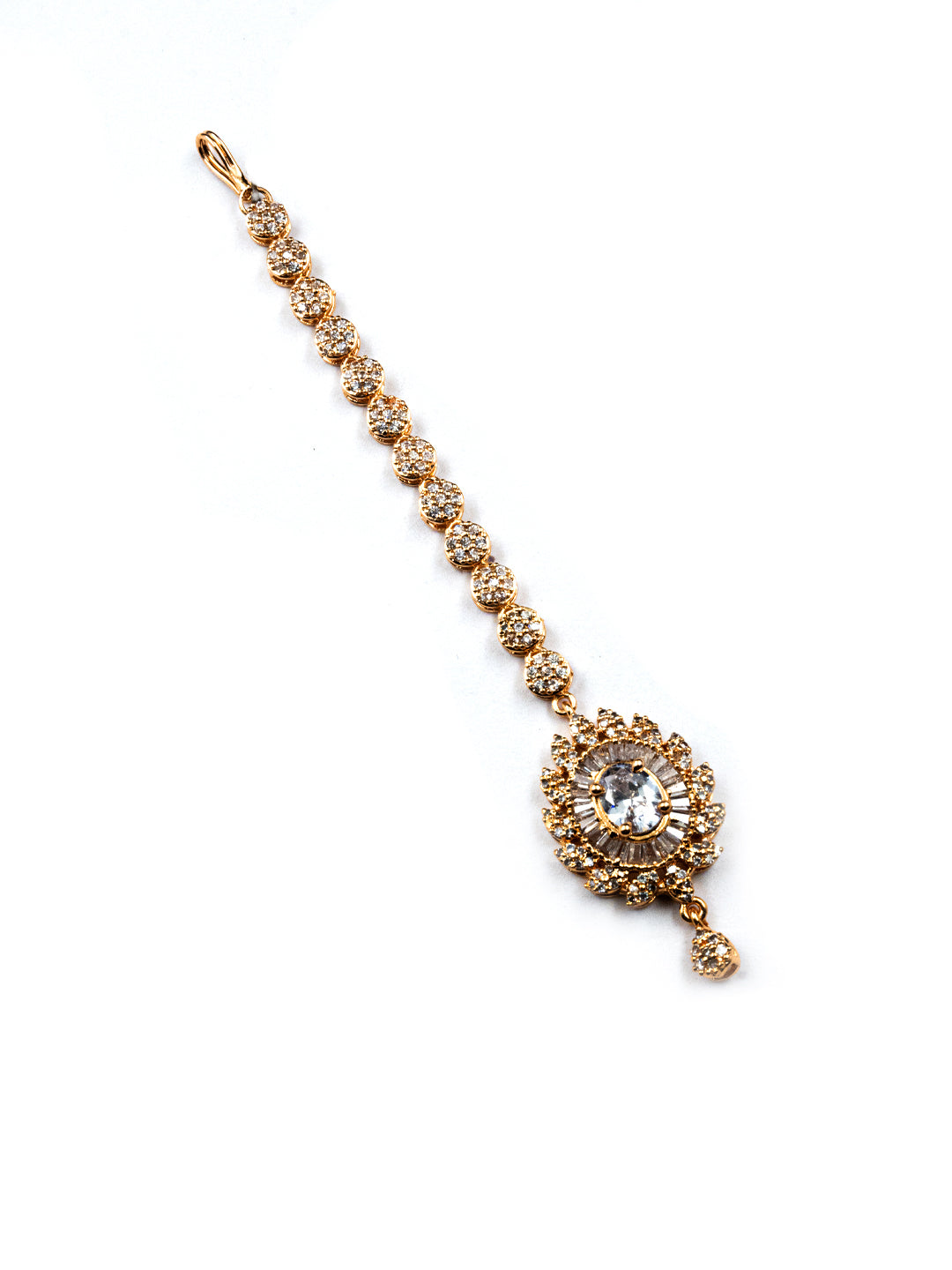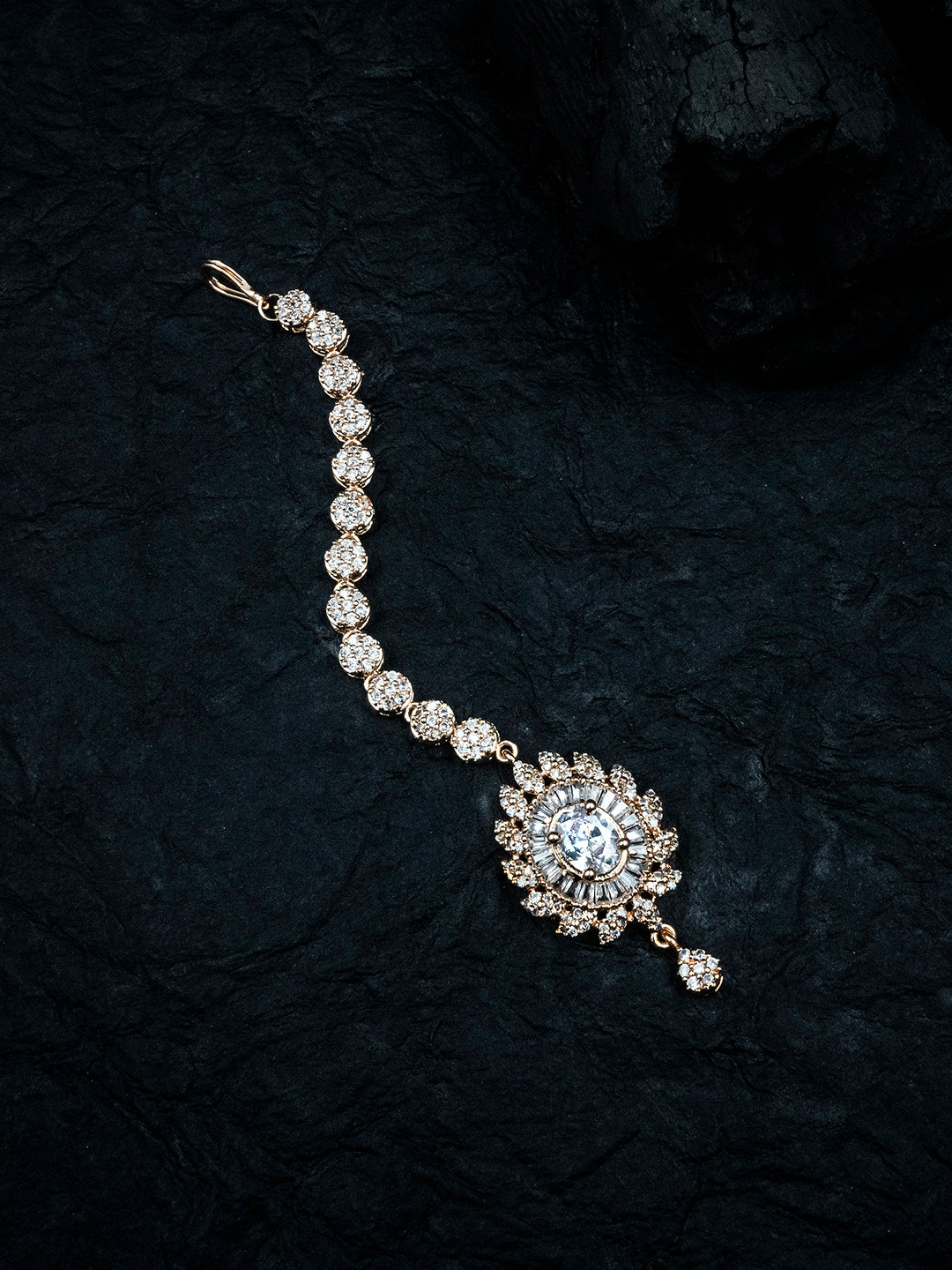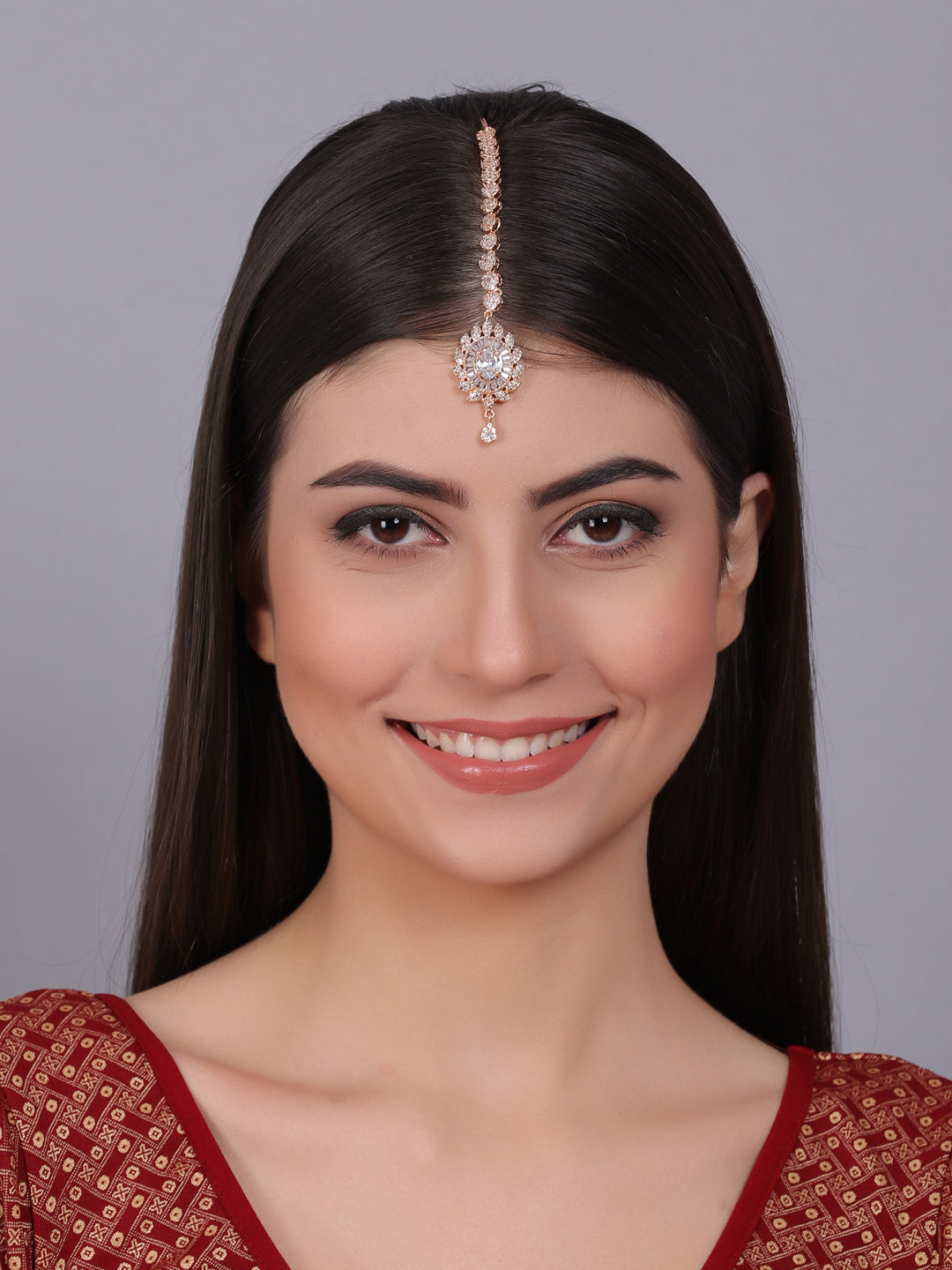 Elevate your ethnic look with StileAdda's exquisite CZ Maangtika in Rose Gold Tone. Handcrafted to perfection, our English CZ Maangtika adds a touch of elegance to any attire. Shop now for the perfect accessory!