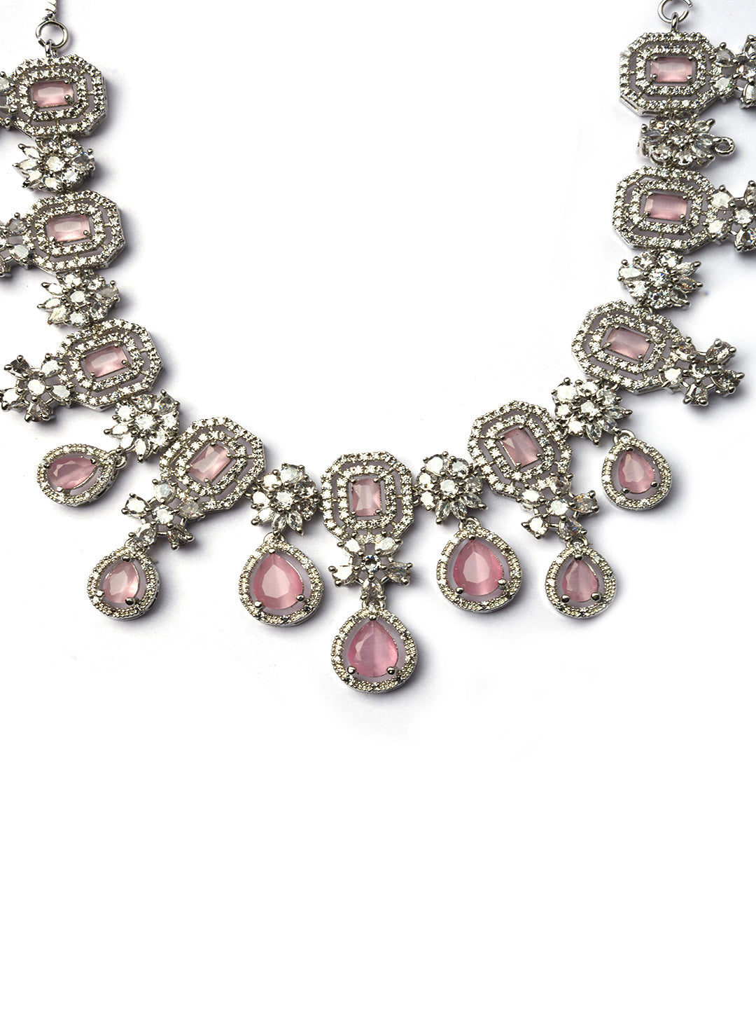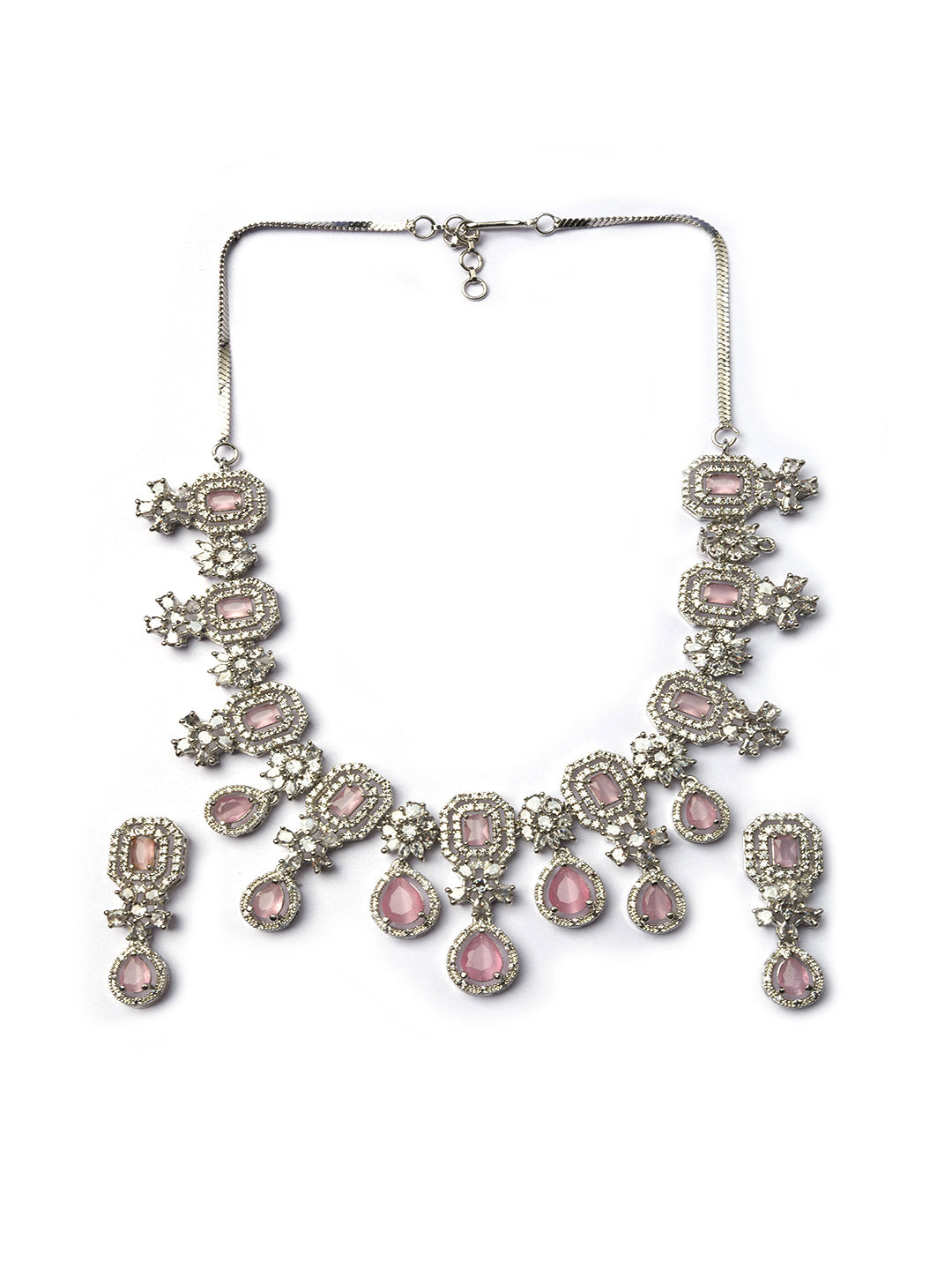 Elevate your style with our stunning Silver Plated CZ Studded Flower Necklace Set. Crafted with precision and adorned with sparkling cubic zirconia, this exquisite jewelry piece adds a touch of elegance to any outfit. Shop now and dazzle on every occasion!