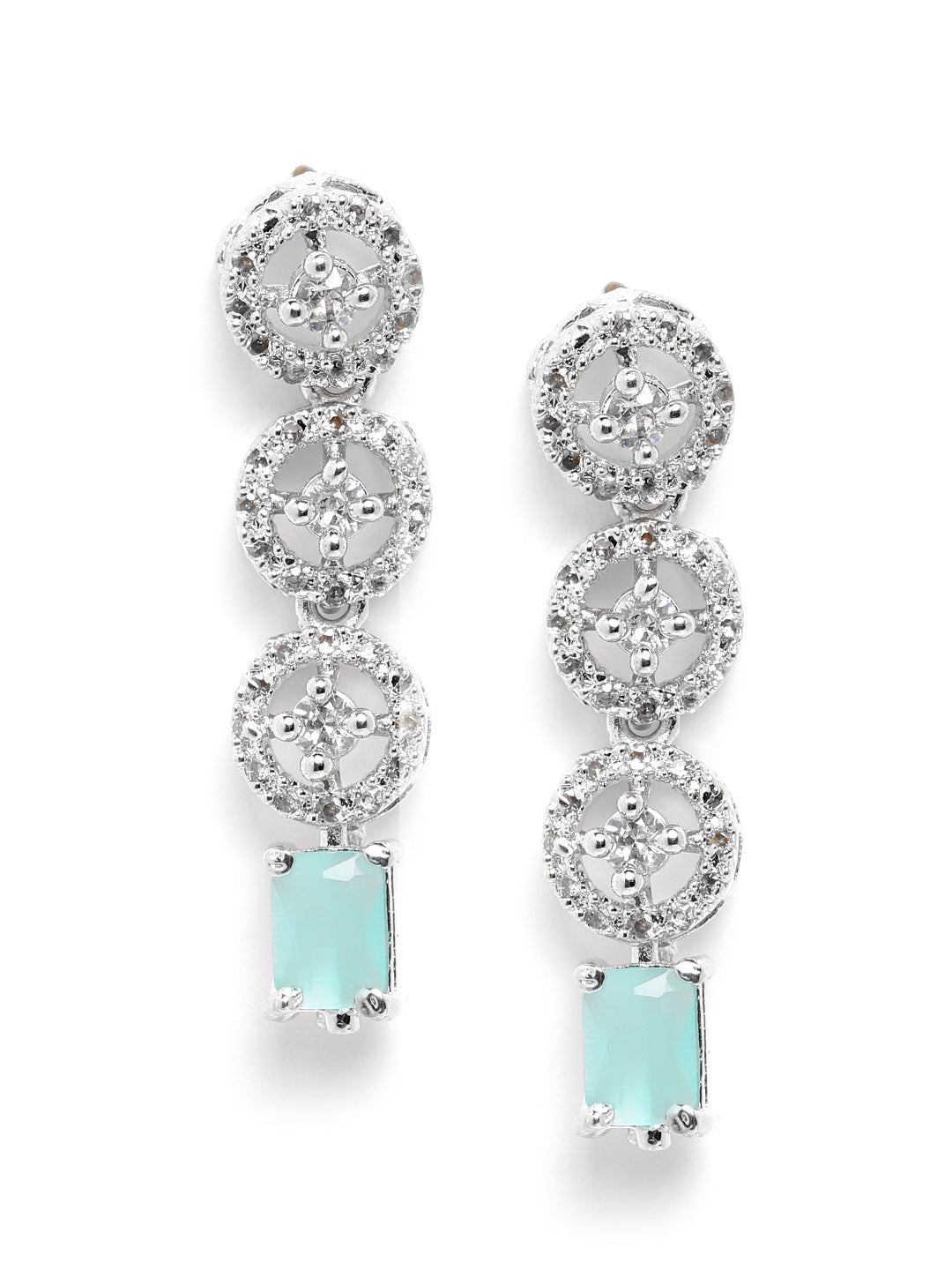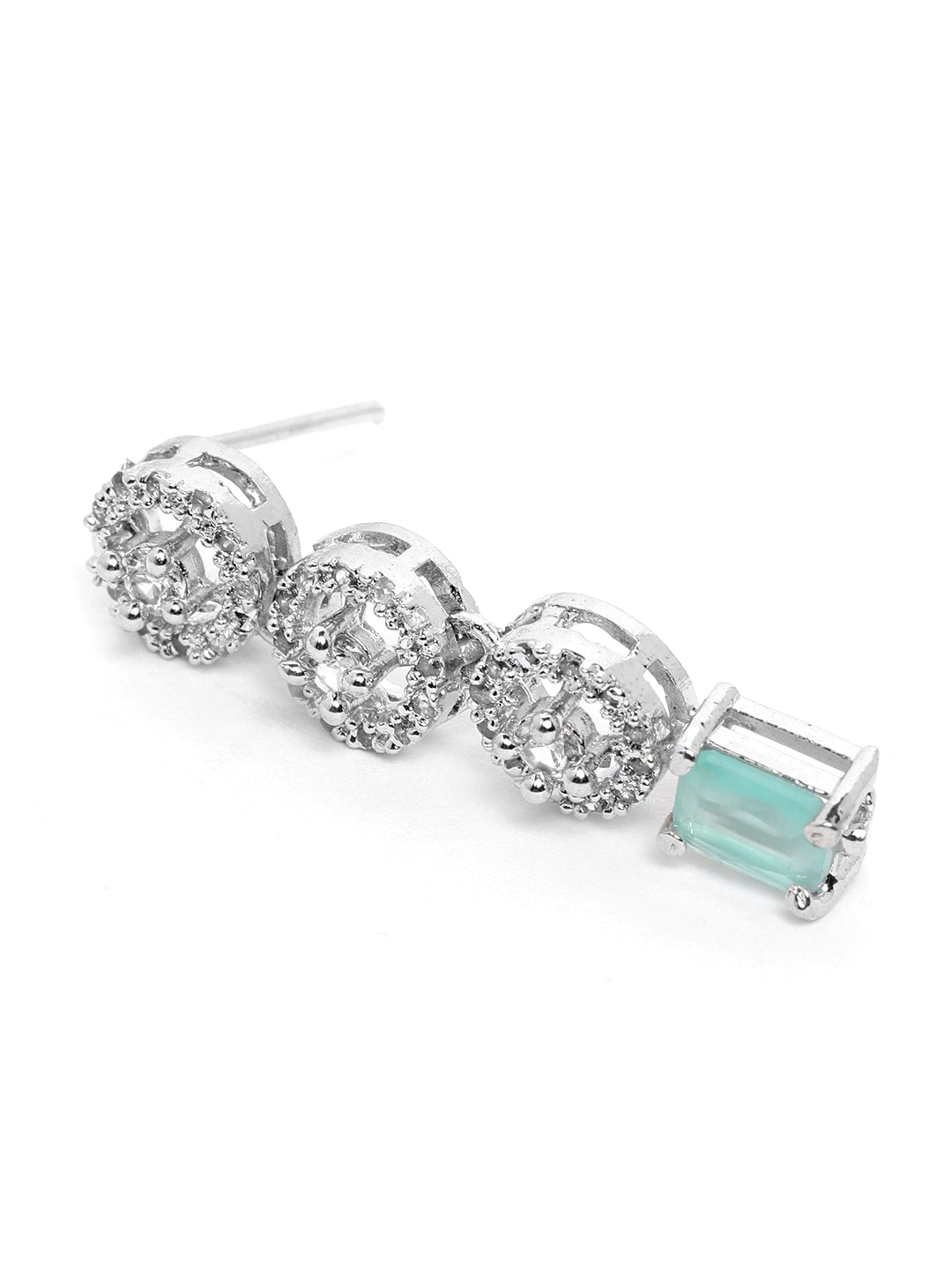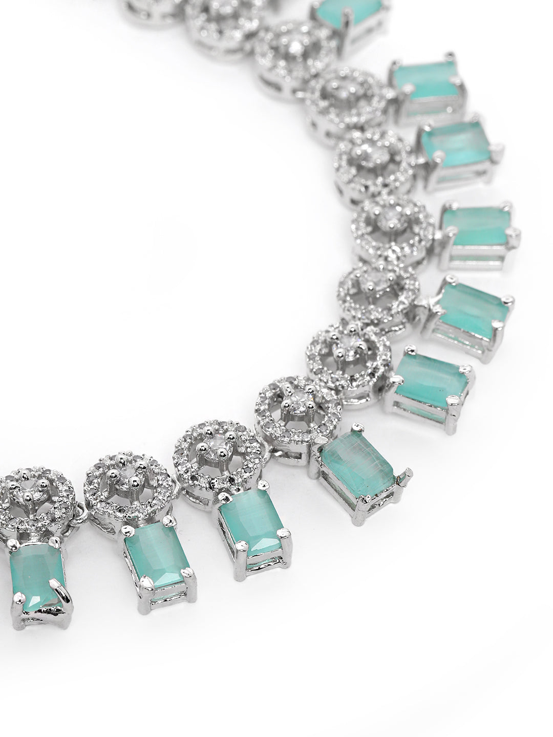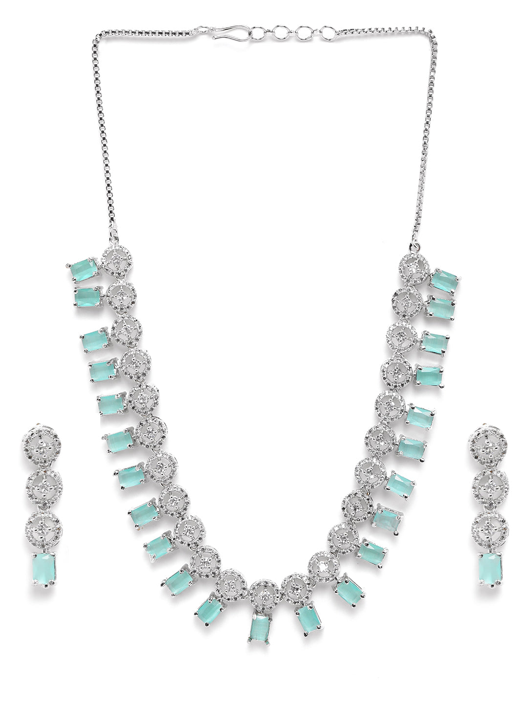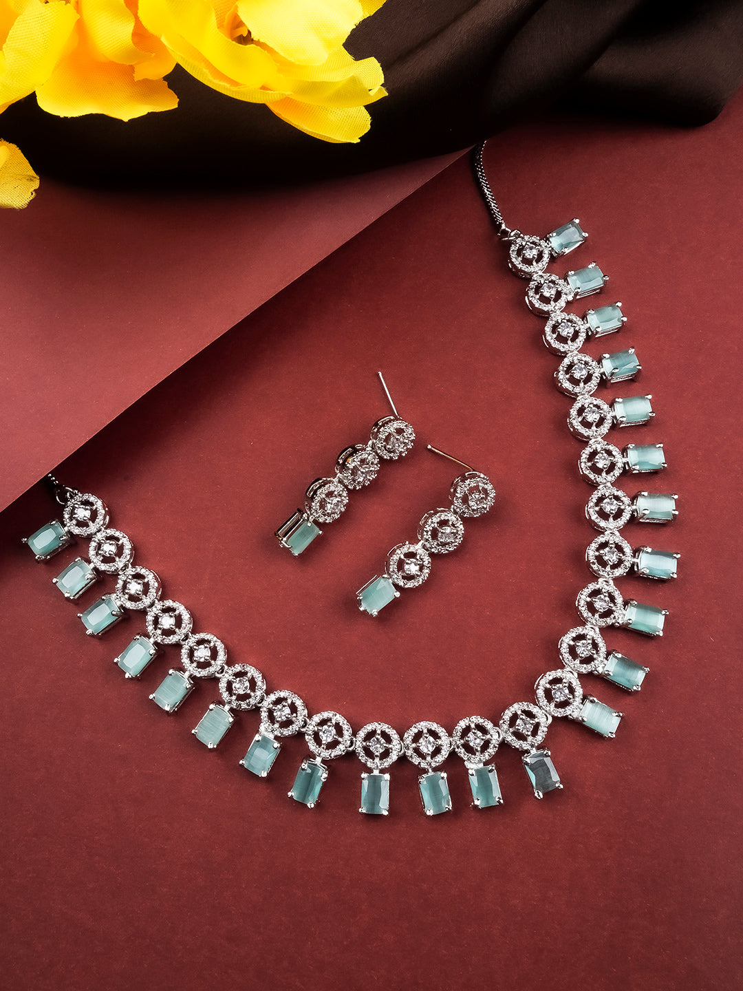 This Silver Plated Turquoise Square AD Necklace Set by StileAdda is a stunning accessory that adds a touch of glamour to any outfit. The unique design features red square AD stones, adding a pop of color to the classic silver plating. Perfect for any formal occasion, this necklace set will make you stand out in style.