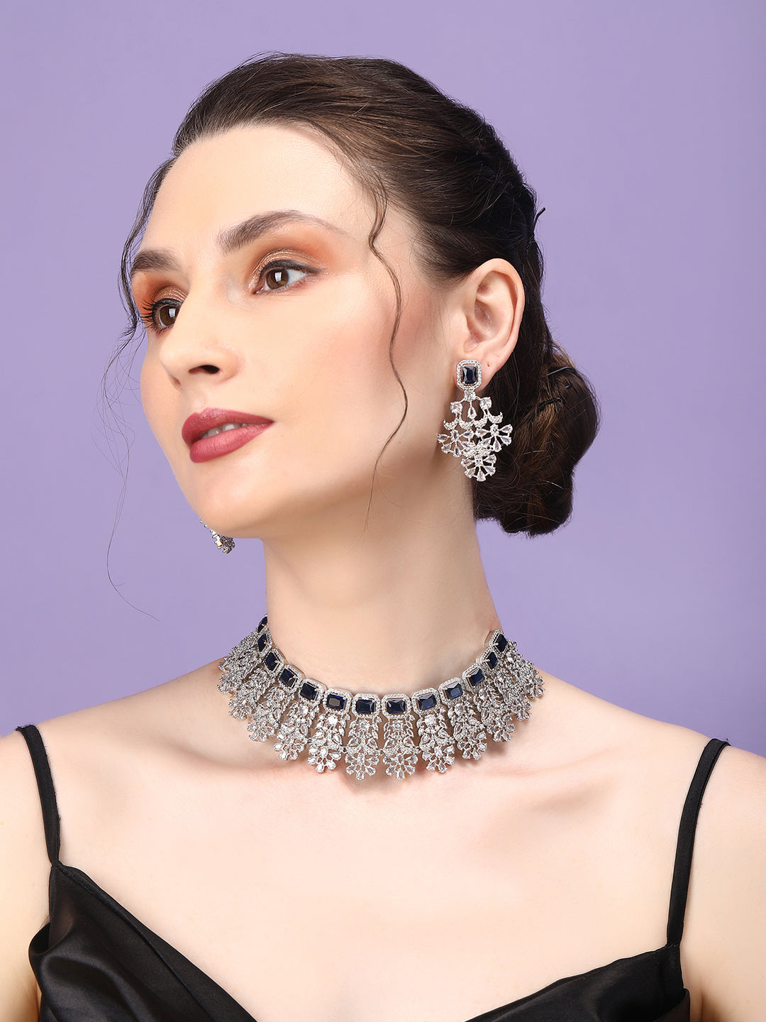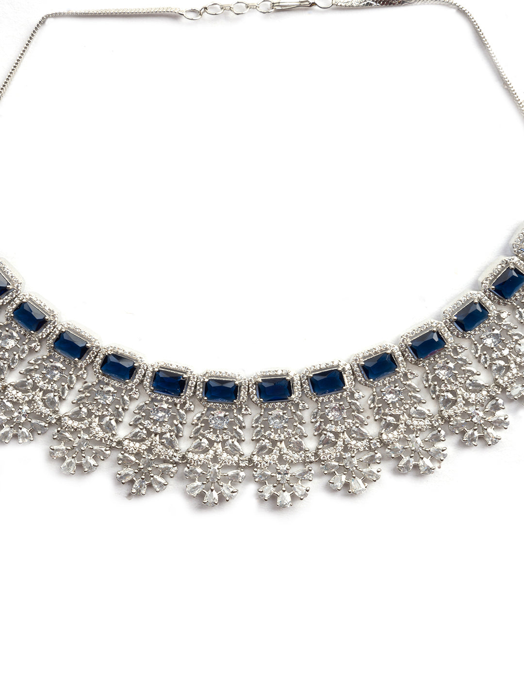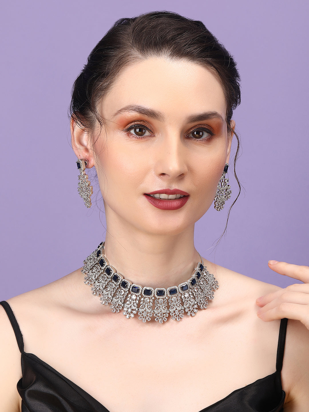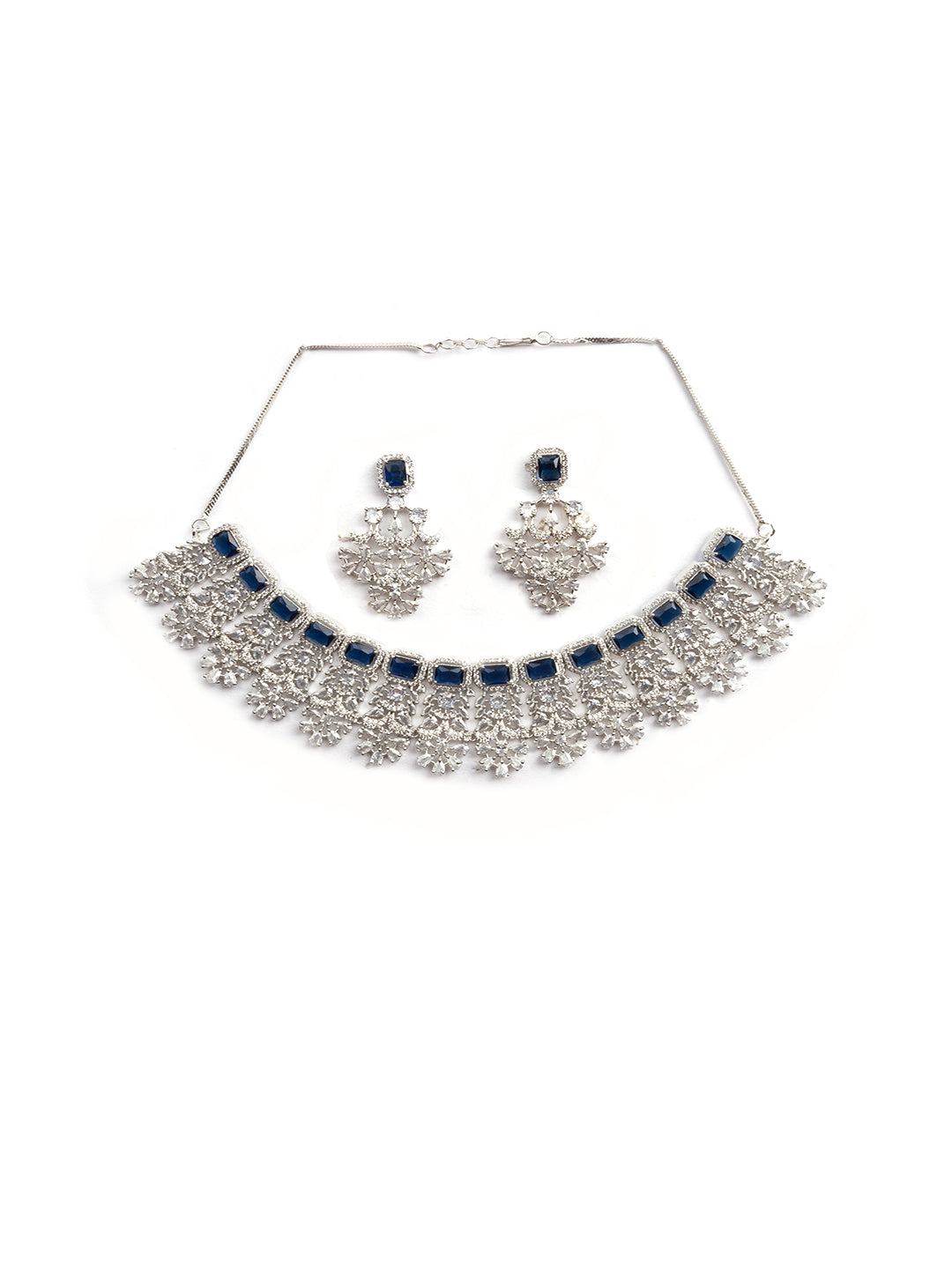 Elevate your party look to a whole new level of glamour with StileAdda's exquisite Designer Sparkling AD Necklace Set. This showstopper ensemble features magnificent tear-shaped AD stones paired with sparkling round CZ stones that are sure to steal the spotlight wherever you go.