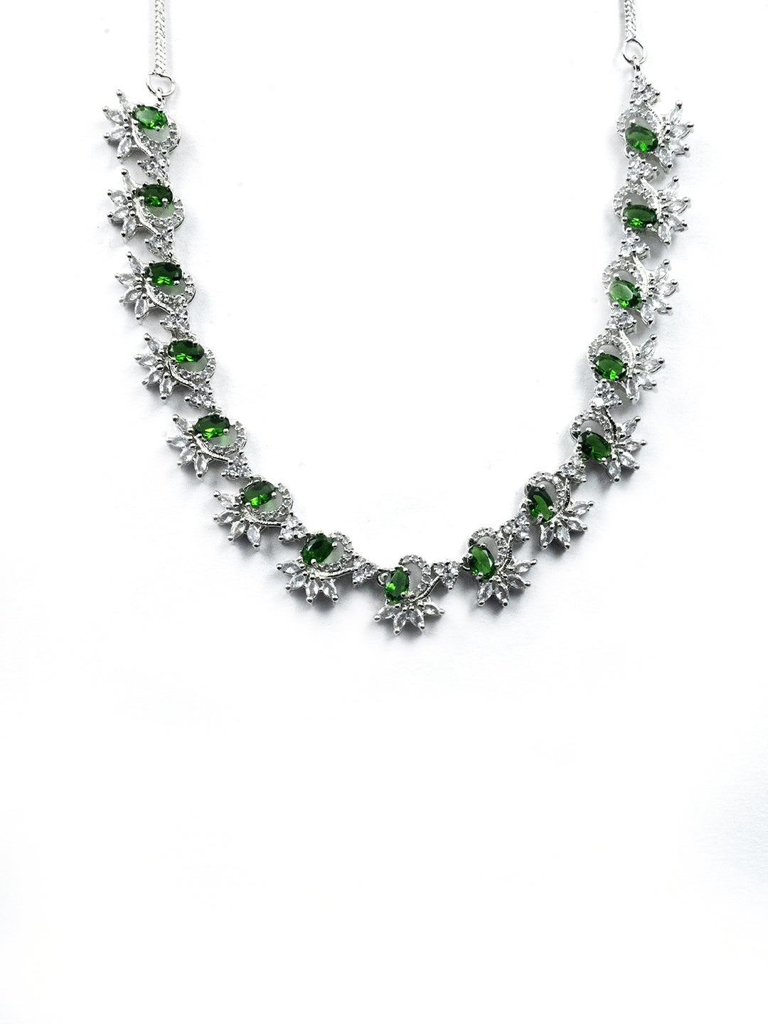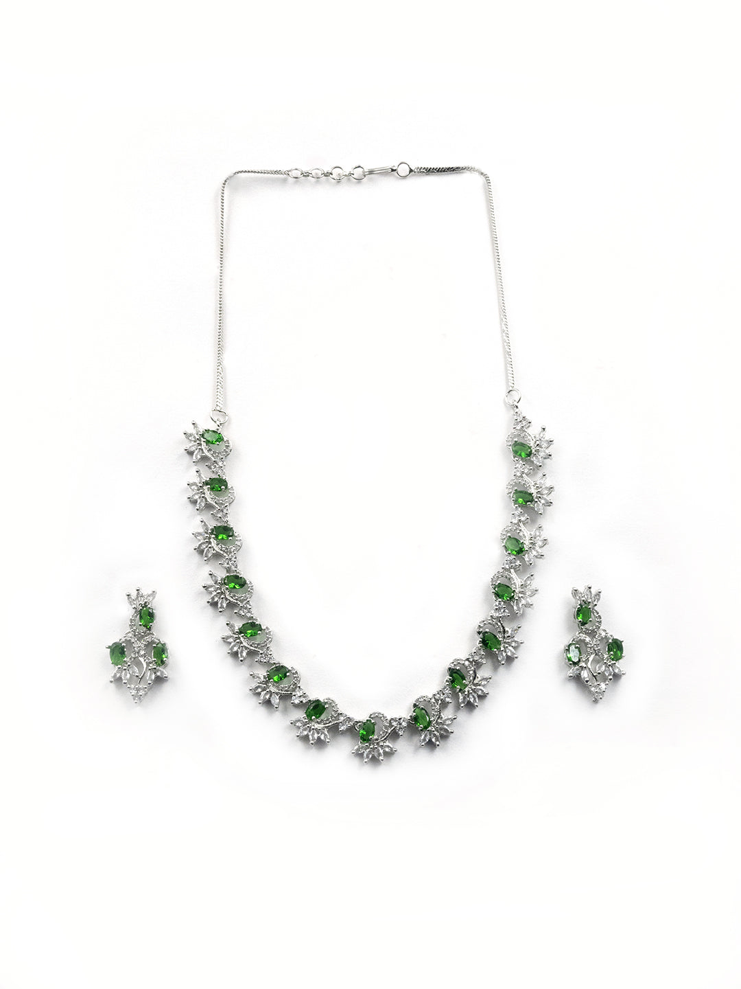 Elegant Green American Diamond Sleek Necklace Set