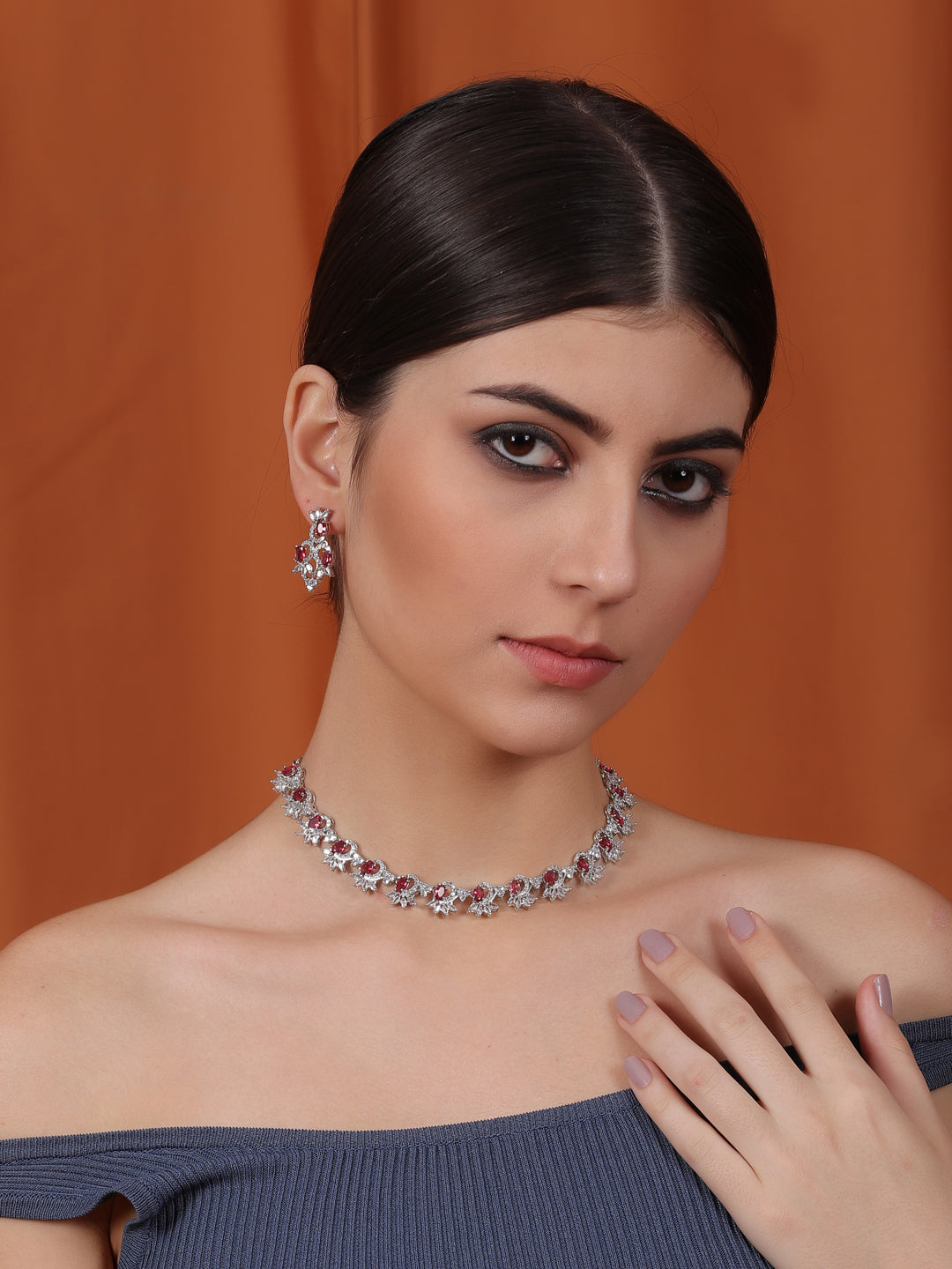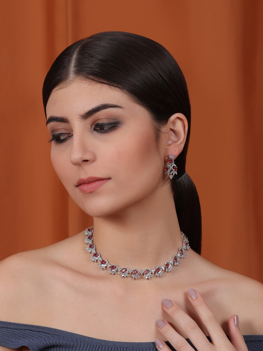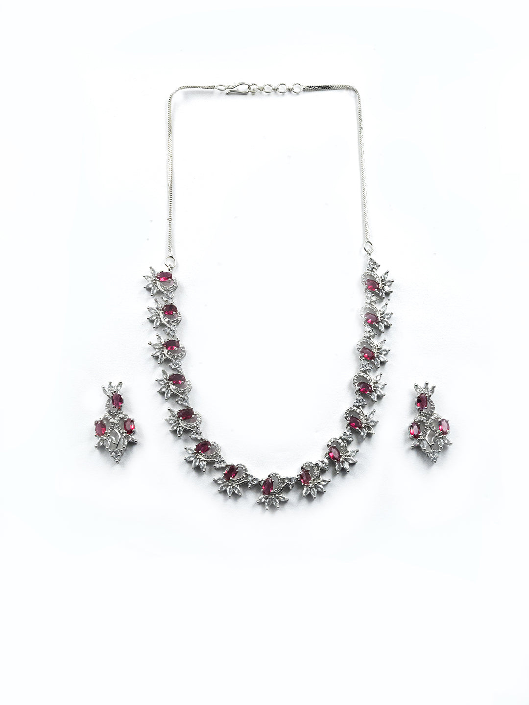 Enhance your elegance with StileAdda's exquisite Elegant Leaf Motif American Diamond Sleek Necklace Set. Crafted with intricate leaf motifs and adorned with sparkling American diamonds, this sophisticated jewelry piece exudes timeless charm. Elevate your style effortlessly. Shop now!