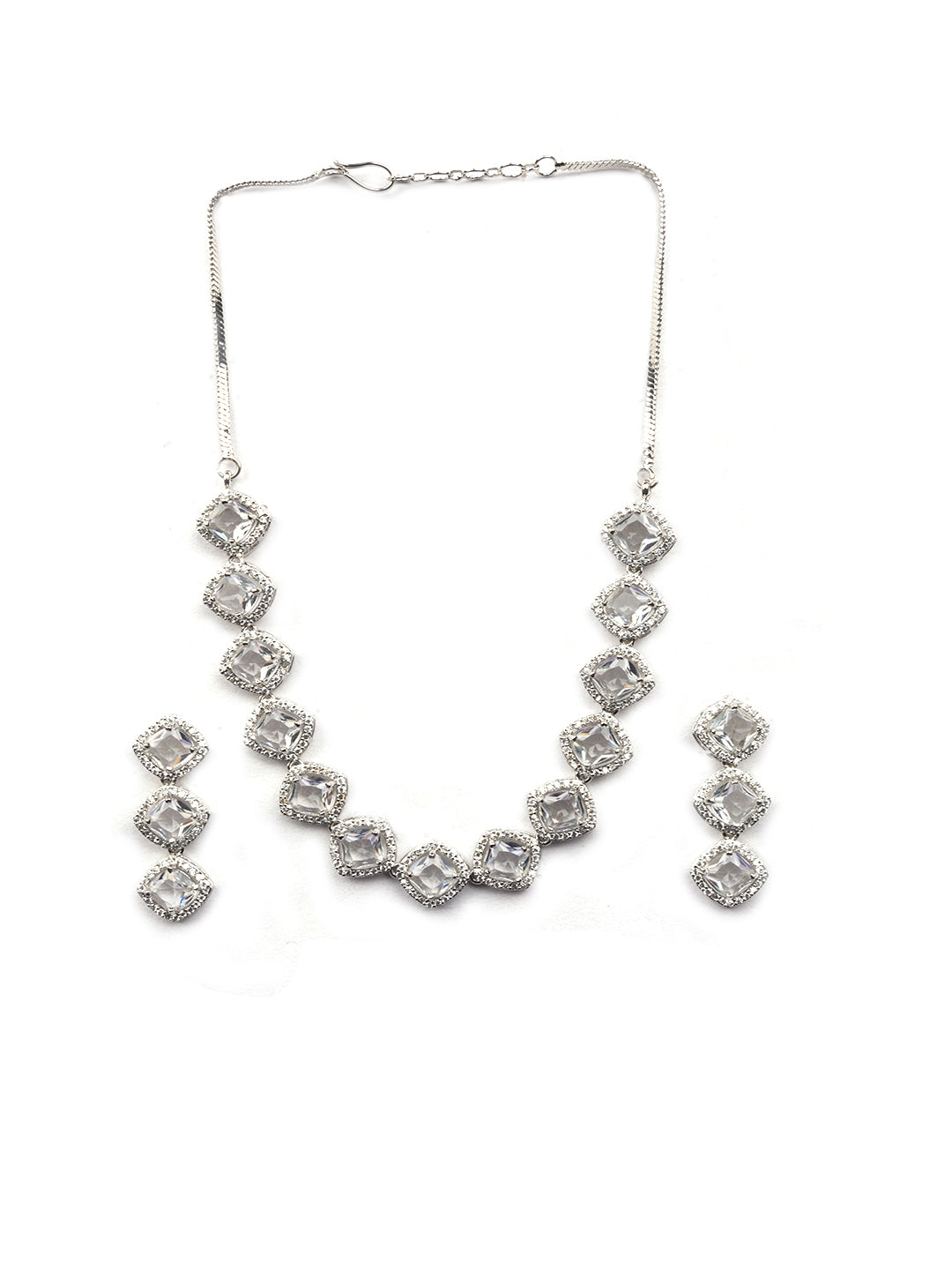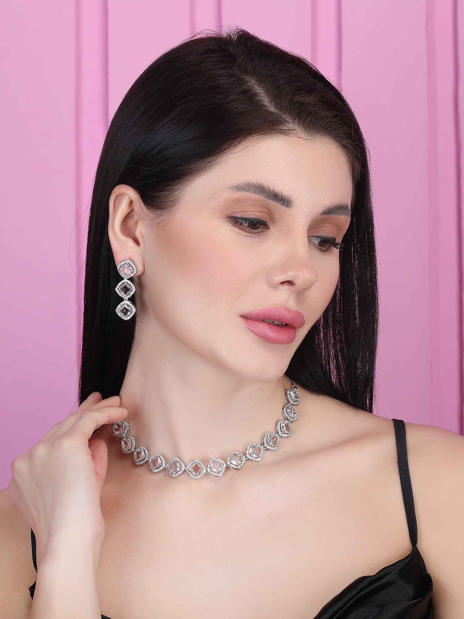 Embrace the allure of the StileAdda's Eternal Sparkle AD Sleek Necklace. Crafted with precision, the shimmering American diamonds add a luxurious touch to your look. This set is perfect for enhancing your elegance at any event, making you the center of attention.