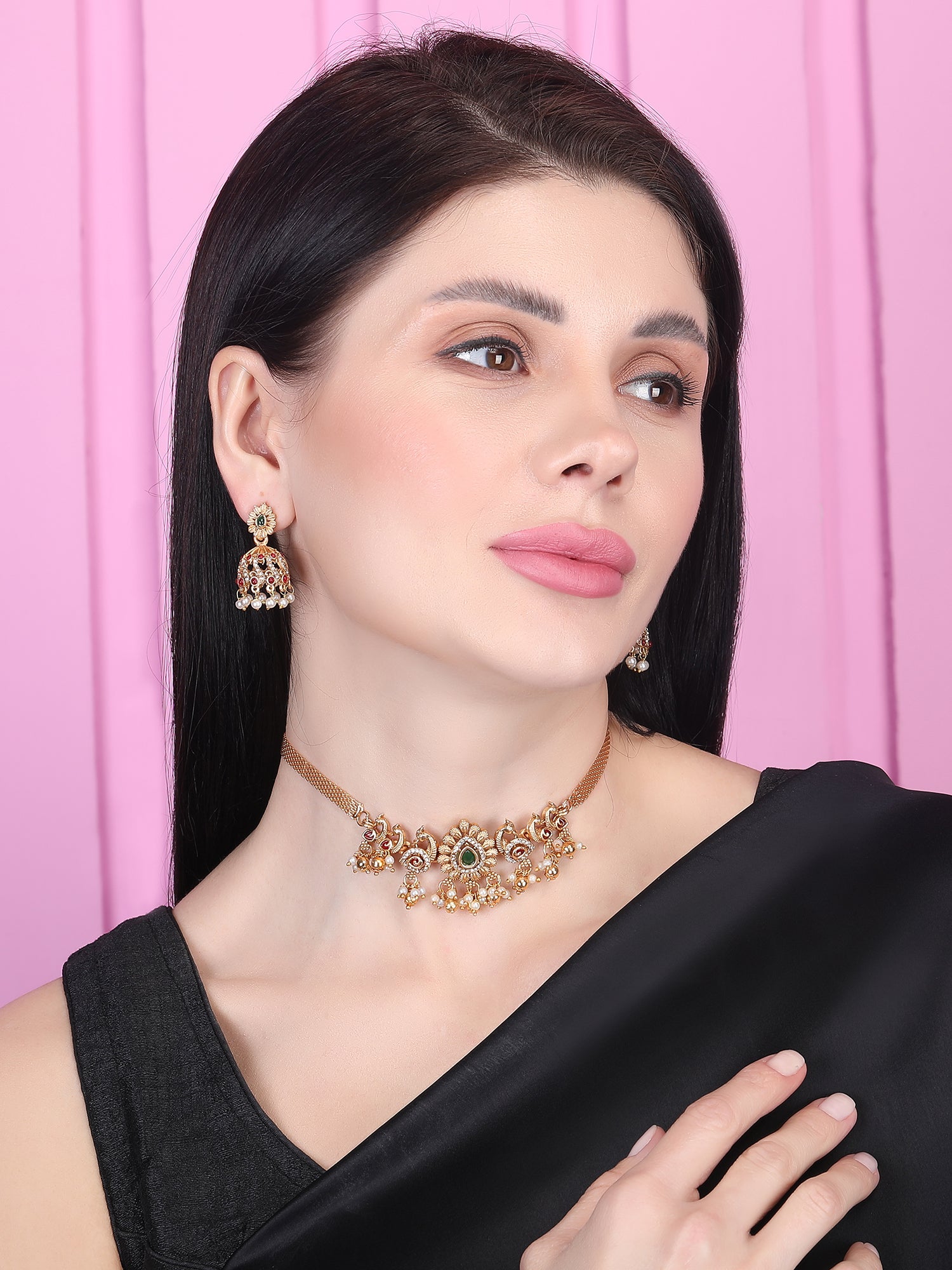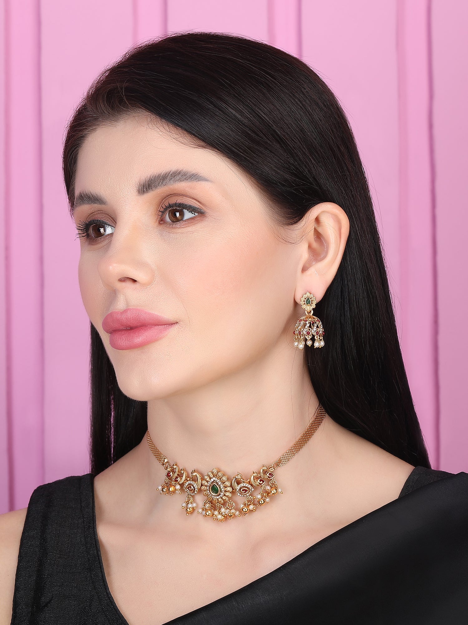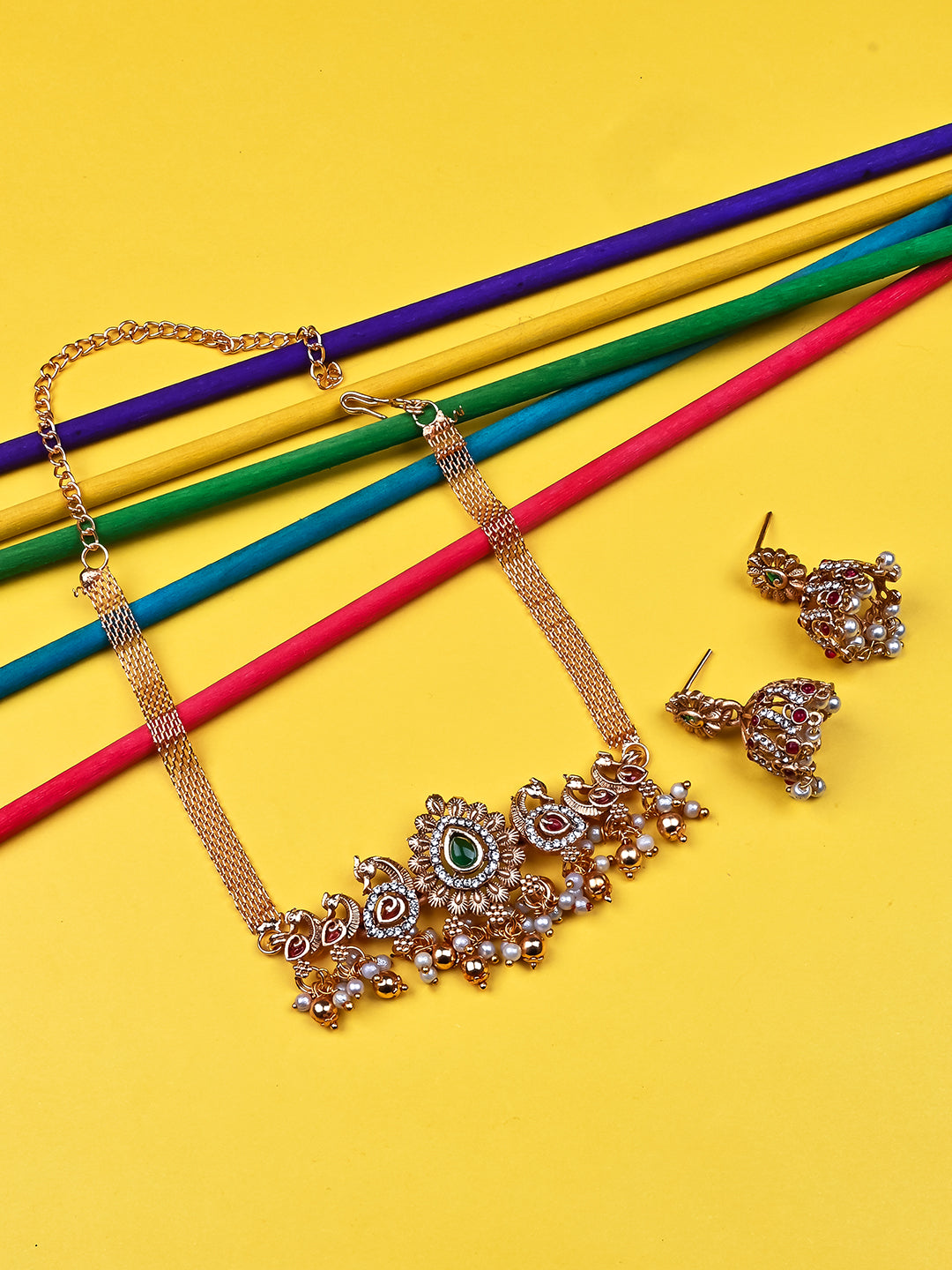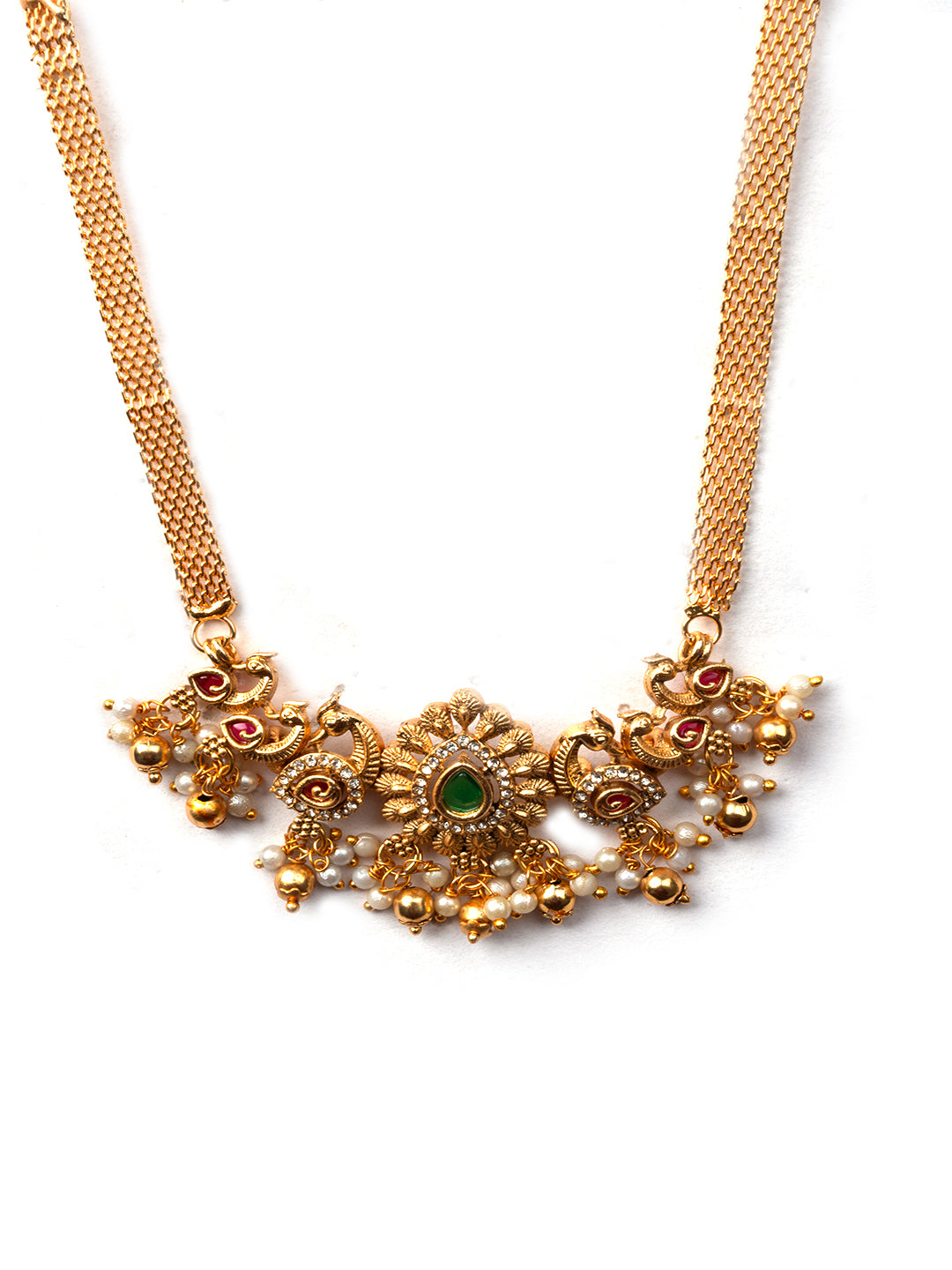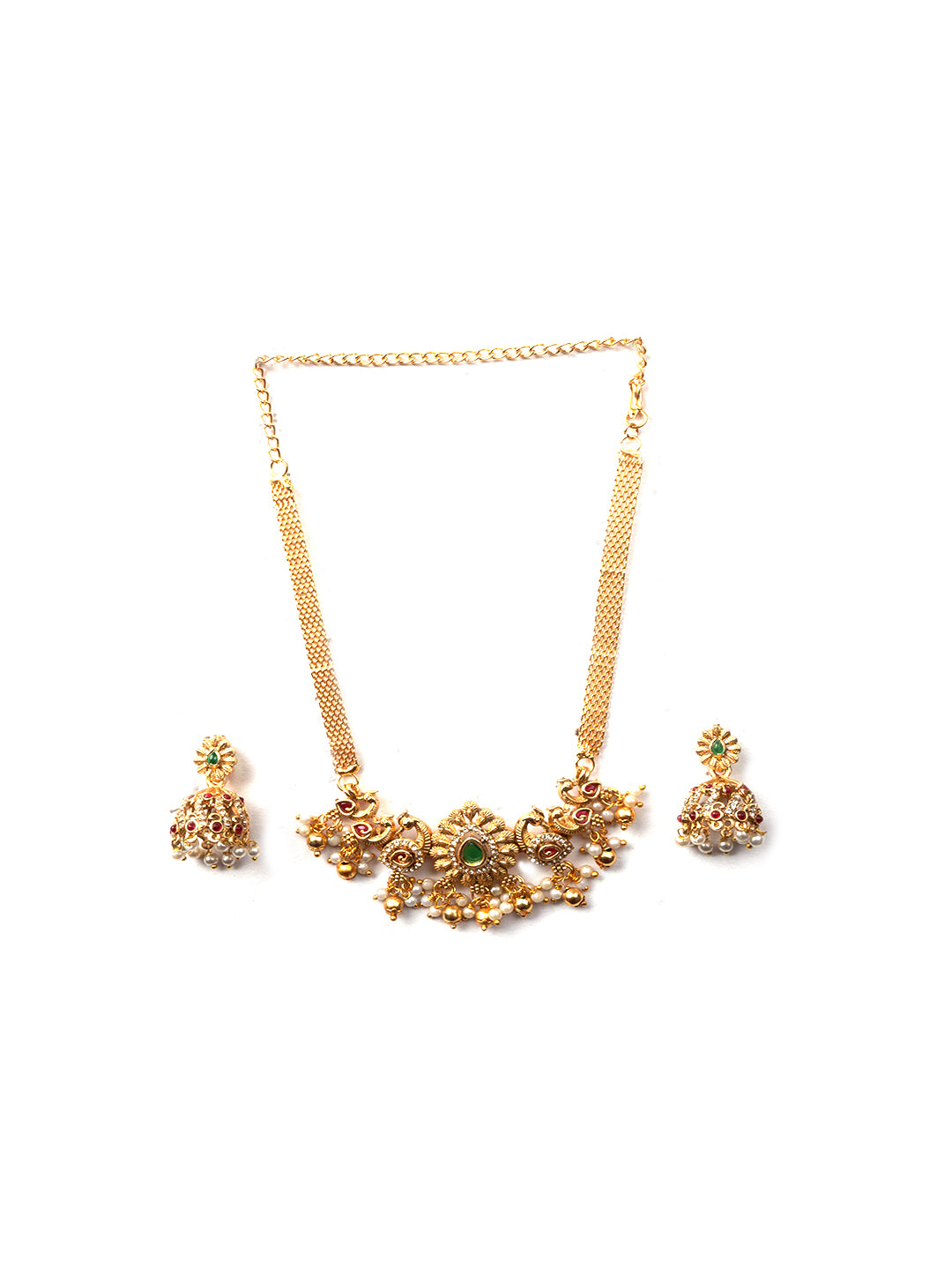 Elevate your style with StileAdda's stunning gold plated temple necklace set. Crafted with precision and adorned with intricate designs, this exquisite jewelry piece adds a touch of timeless elegance to any ensemble. Shop now for the perfect blend of tradition and sophistication.