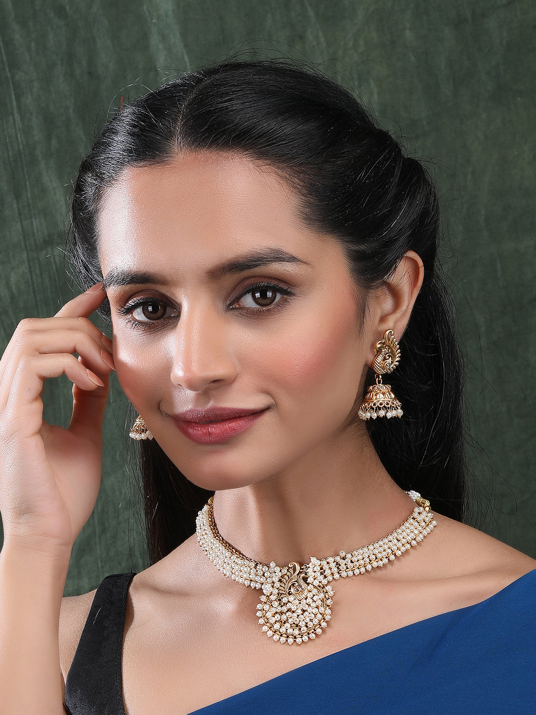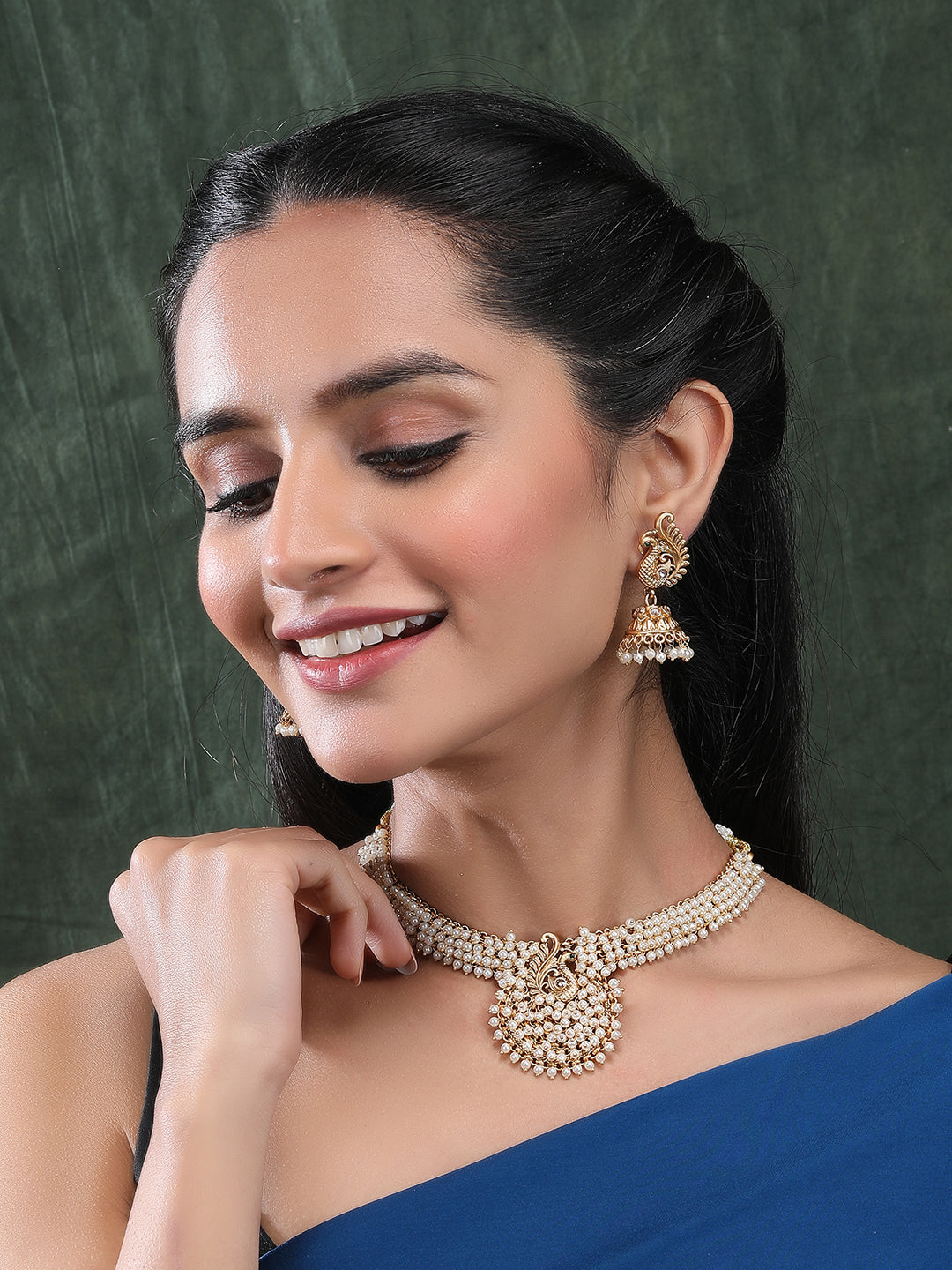 Crafted from high-quality materials, the StileAdda's necklace and earrings  feature a lavish gold plating and hydra beads that exudes opulence and sophistication, perfect for special occasions.