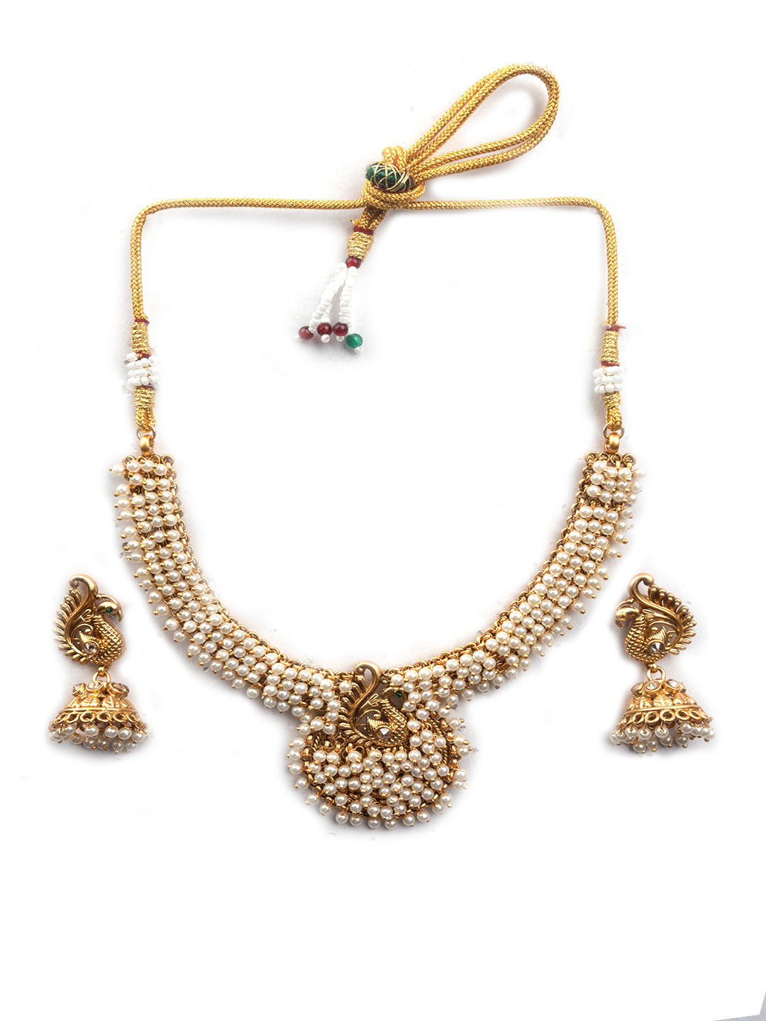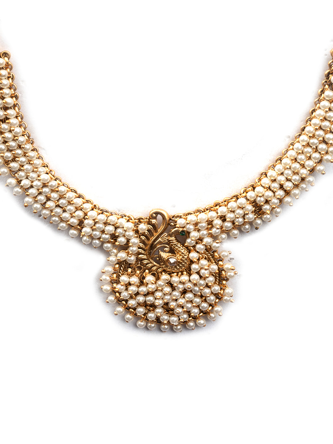 Exquisite Gold-Plated Temple Hydra Beads Necklace Set - A divine blend of tradition and elegance. Elevate your style with this stunning piece from SileAdda.