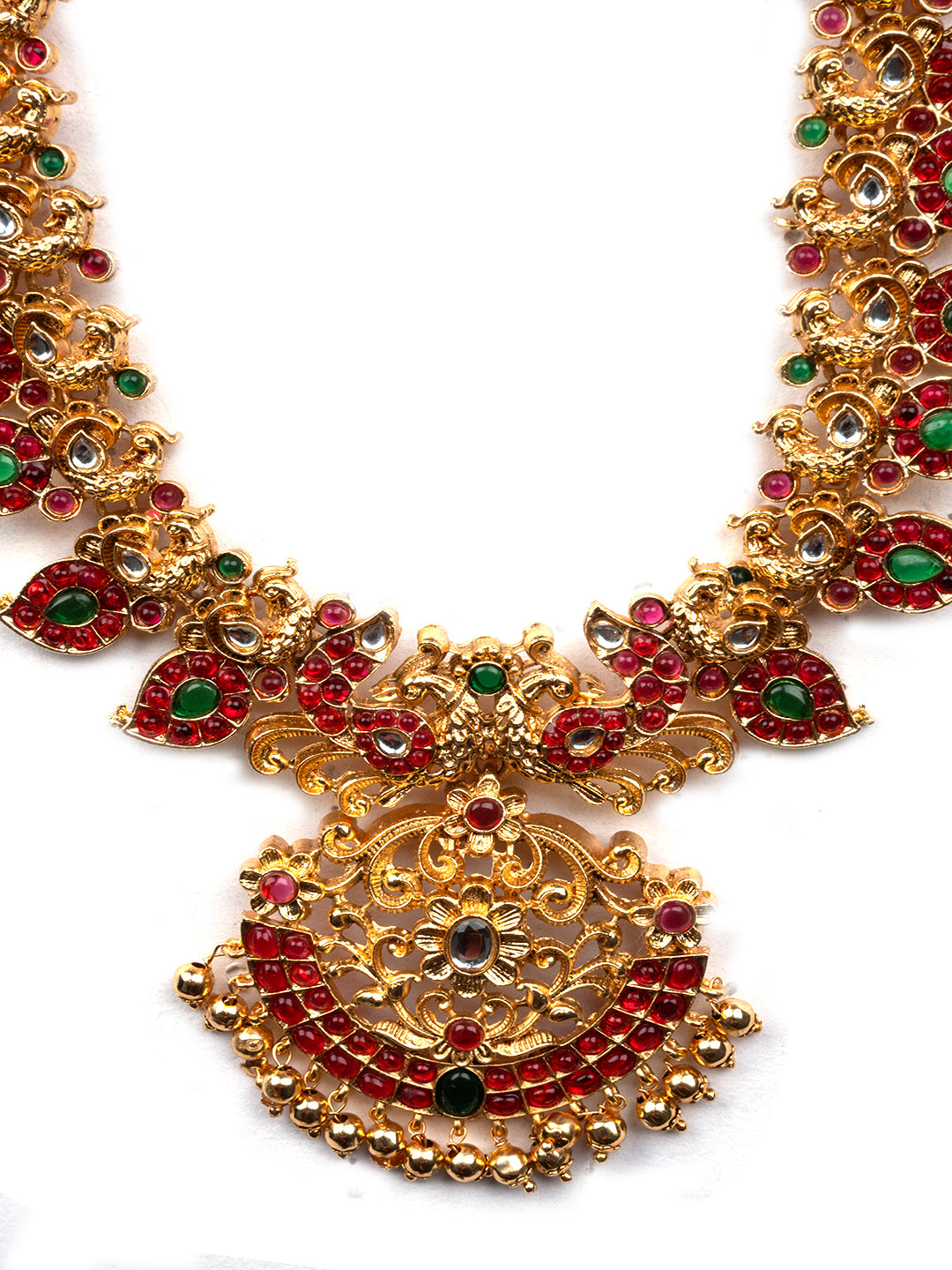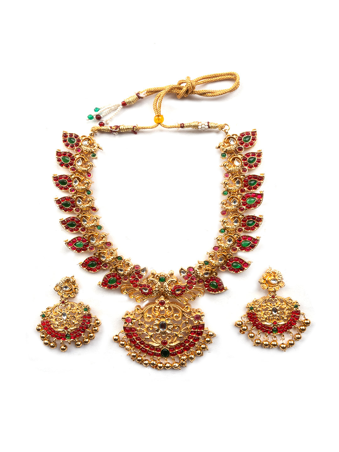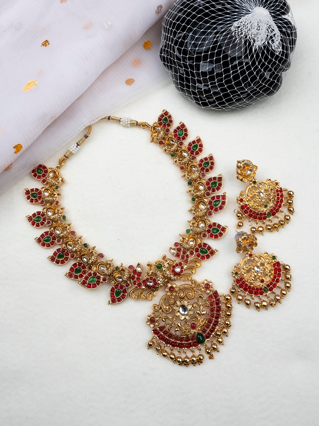 Gold Plated Ruby Green Mango Patti Necklace Set