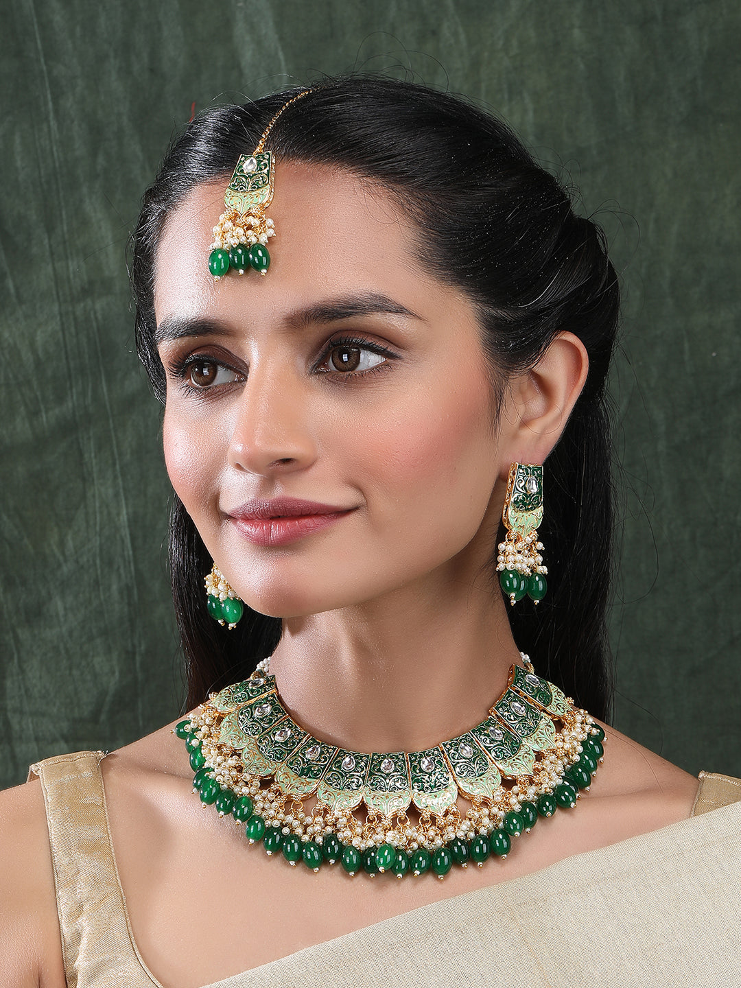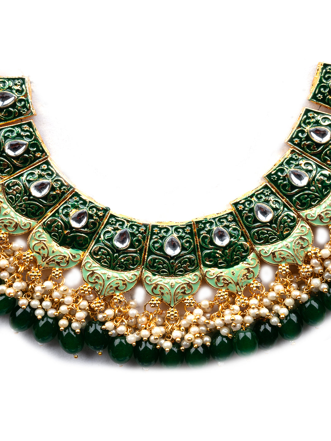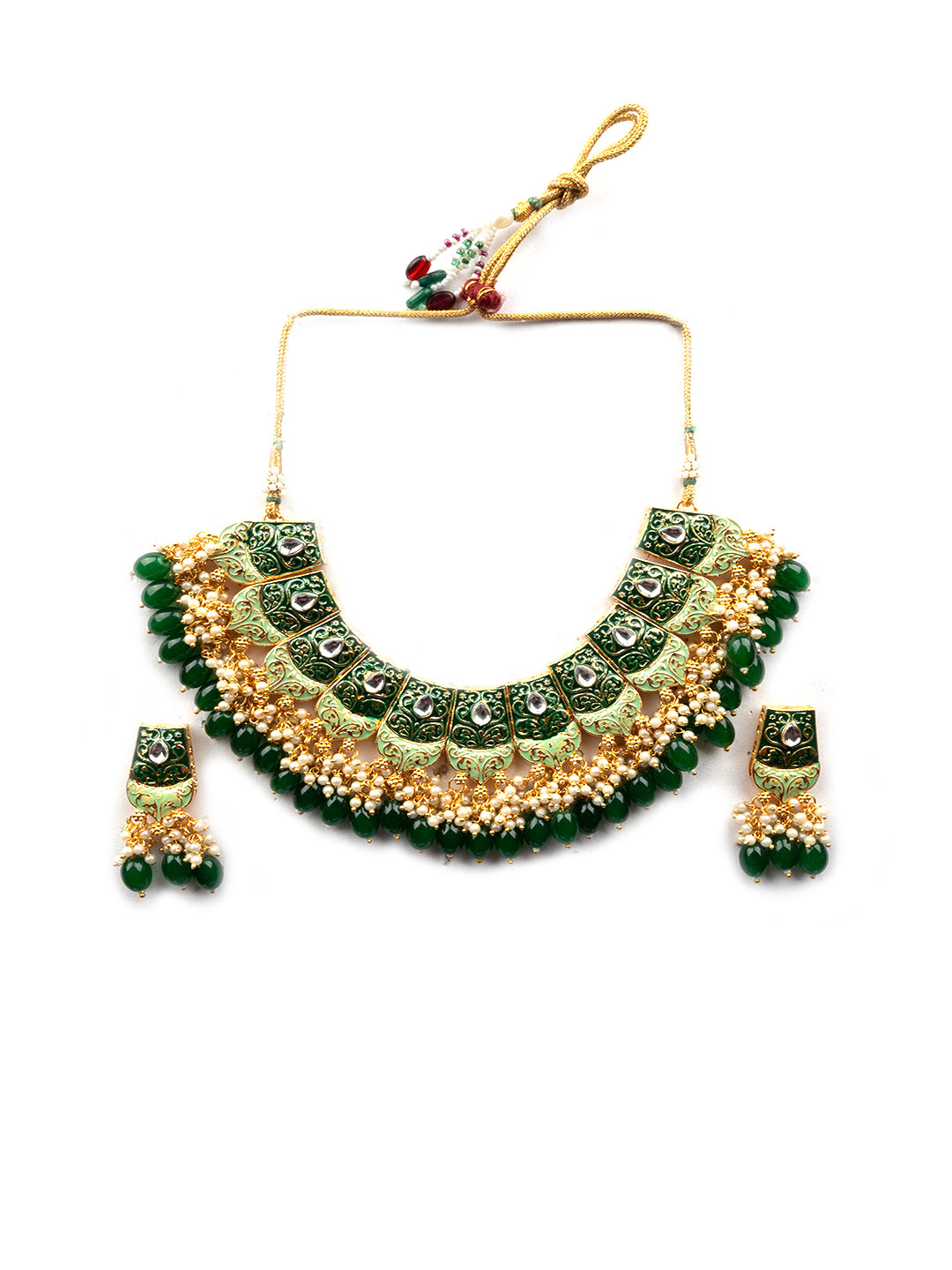 Gracious Green Kundan Meenakari Droplet Necklace Set