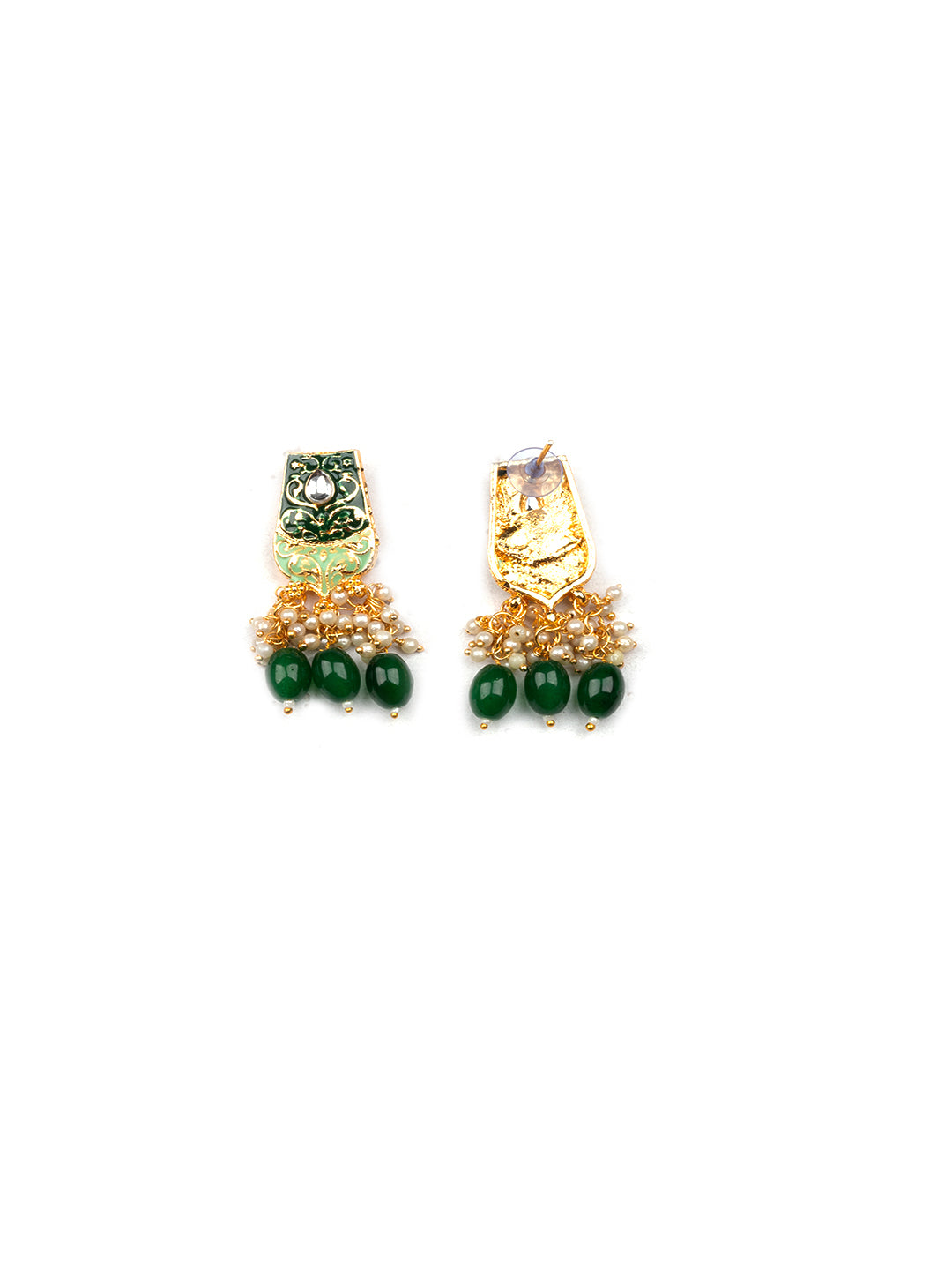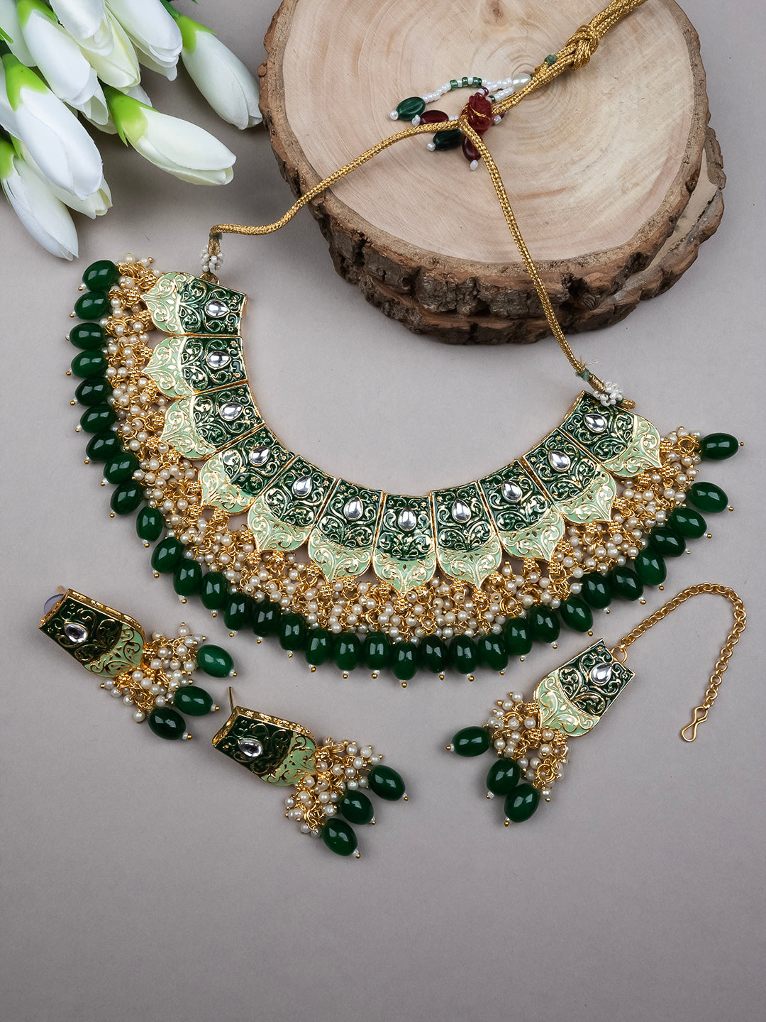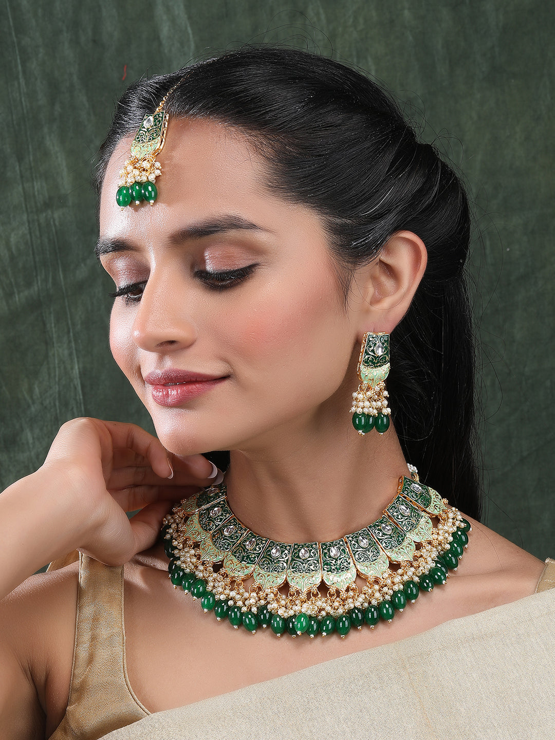 Gracious Green Kundan Meenakari Droplet Necklace Set