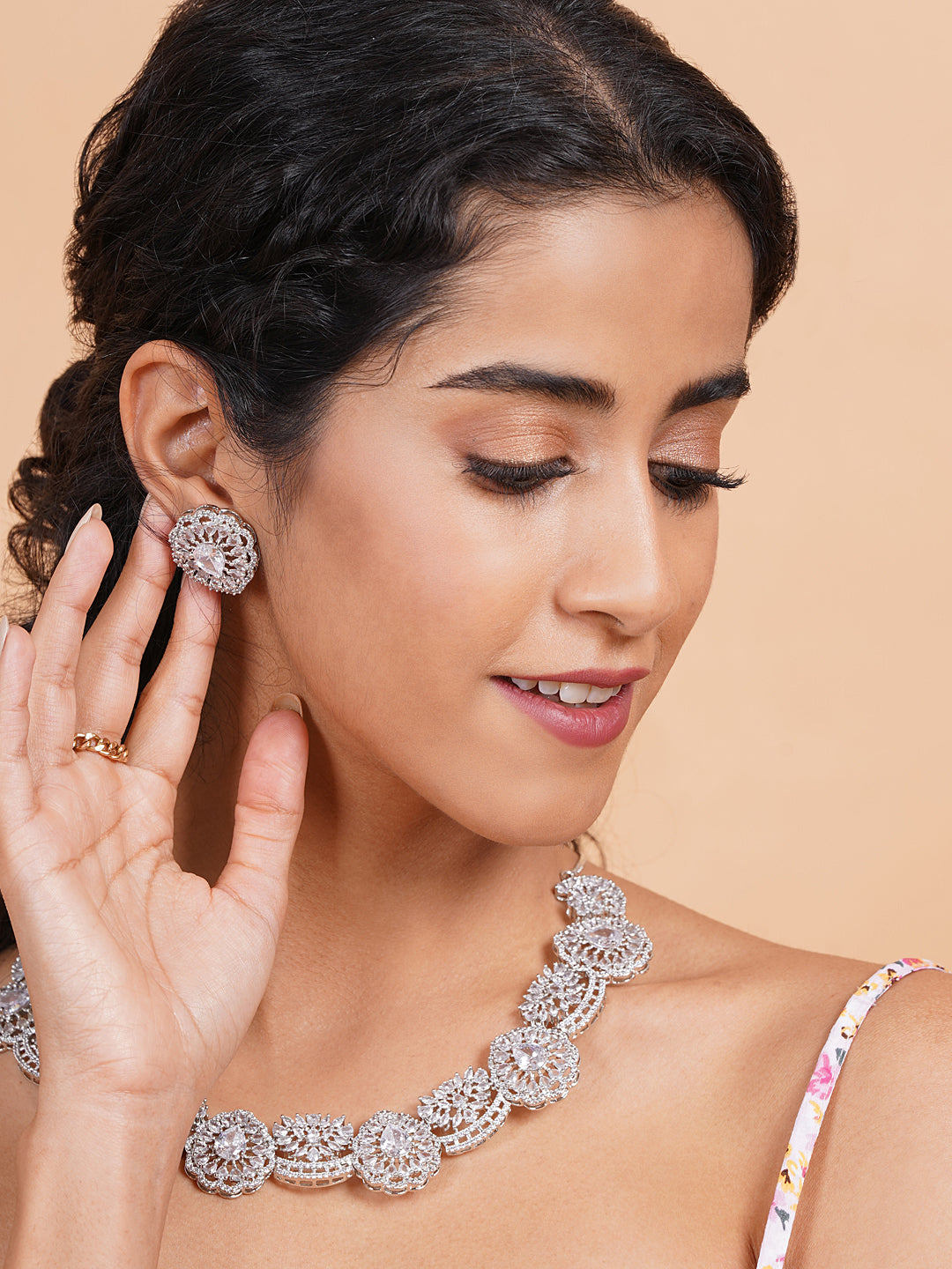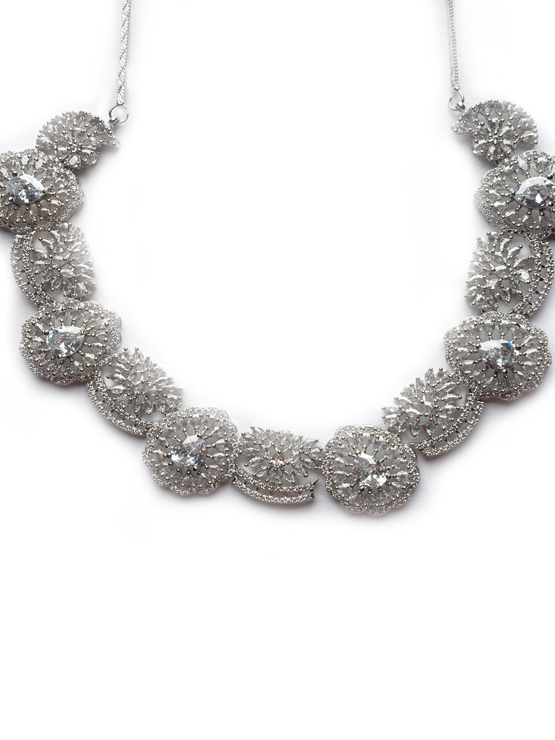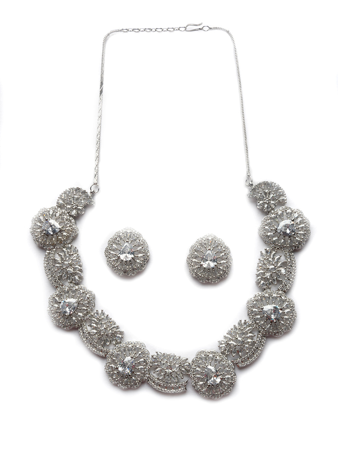 Intricate Cut Work White CZ Necklace Set"